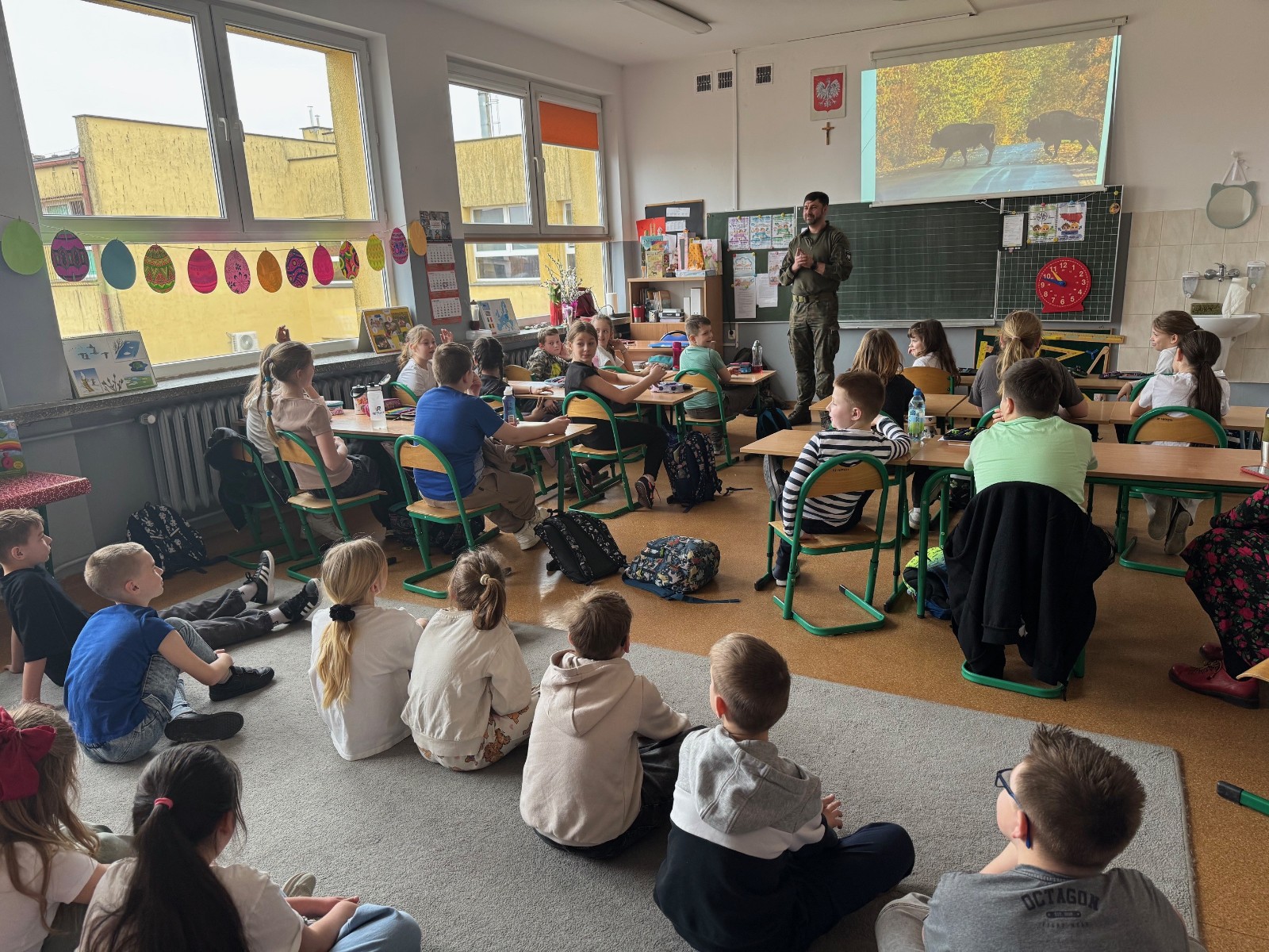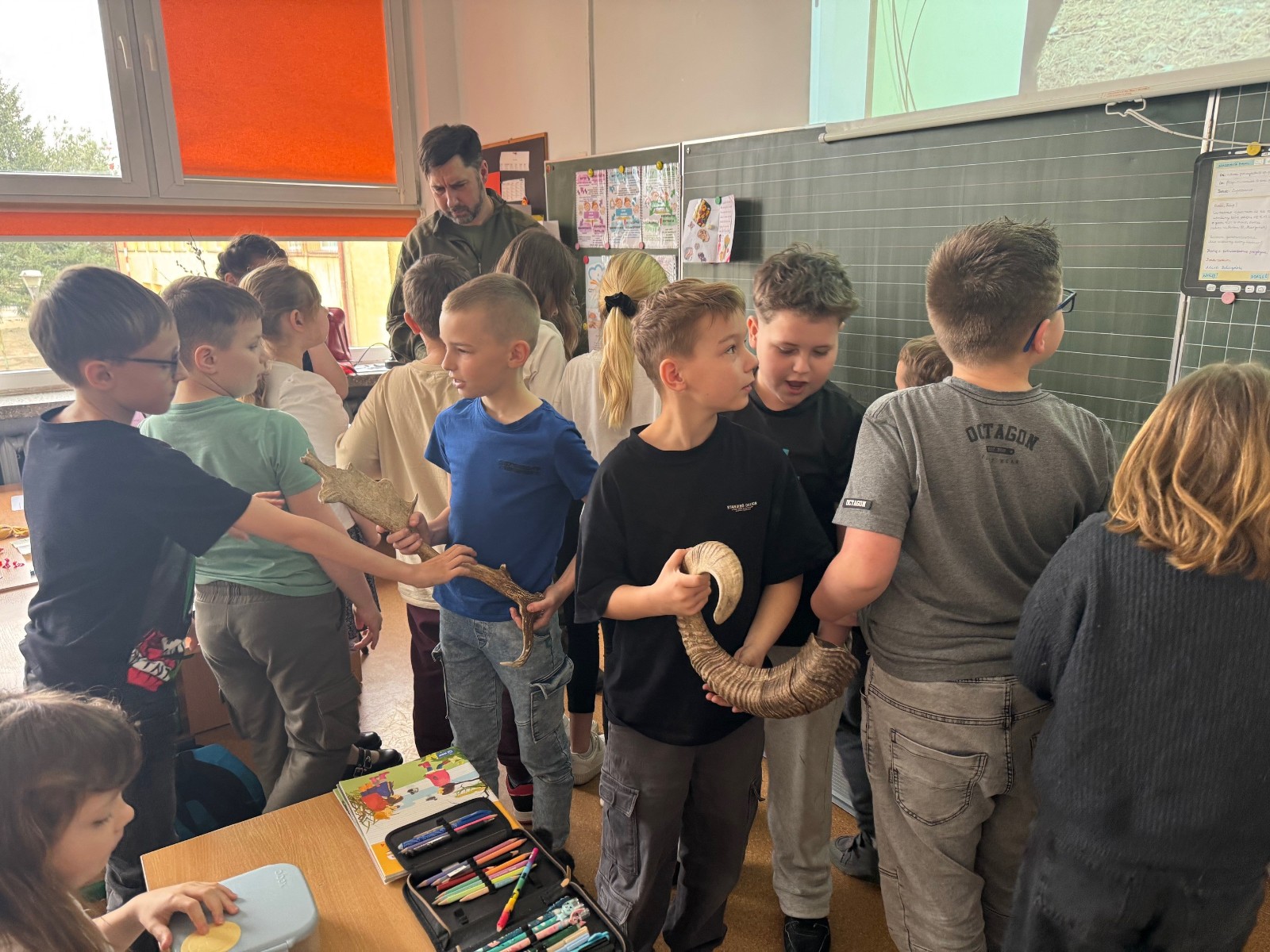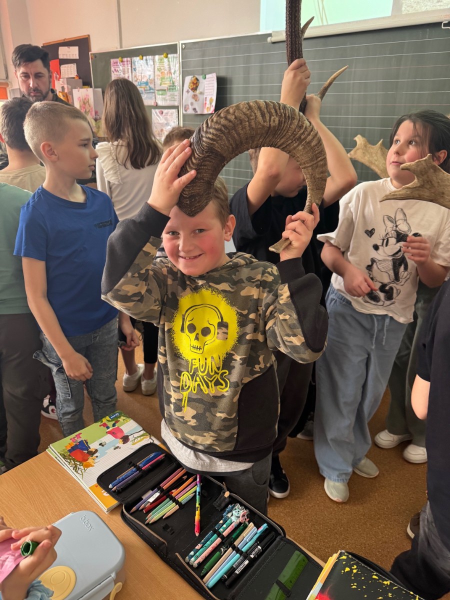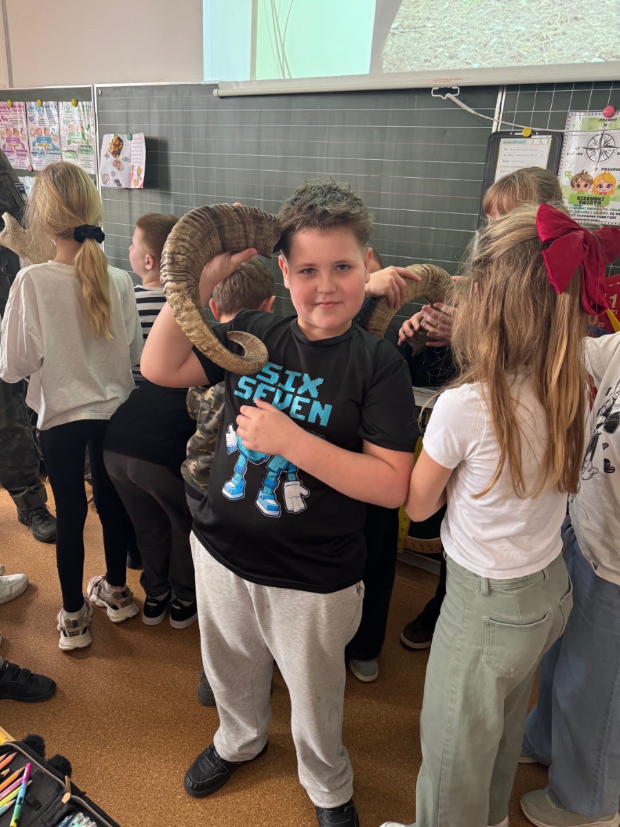 Spotkanie było interesującą lekcją przyrody, podczas której uczniowie mieli okazję poszerzyć swoją wiedzę na temat zwierząt żyjących w polskich lasach. Gość opowiadał o różnych gatunkach zwierząt, ich zwyczajach oraz środowisku naturalnym. Uczniowie z zaciekawieniem oglądali prezentowane zdjęcia, dodatkowo mogli usłyszeć odgłosy charakterystyczne dla poszczególnych zwierząt. Największym zainteresowaniem cieszyła się część praktyczna czyli oglądanie, dotykanie rogów i poroży zwierząt żyjących w polskich lasach. Możliwość zobaczenia ich z bliska była dla wielu osób wyjątkowym doświadczeniem.