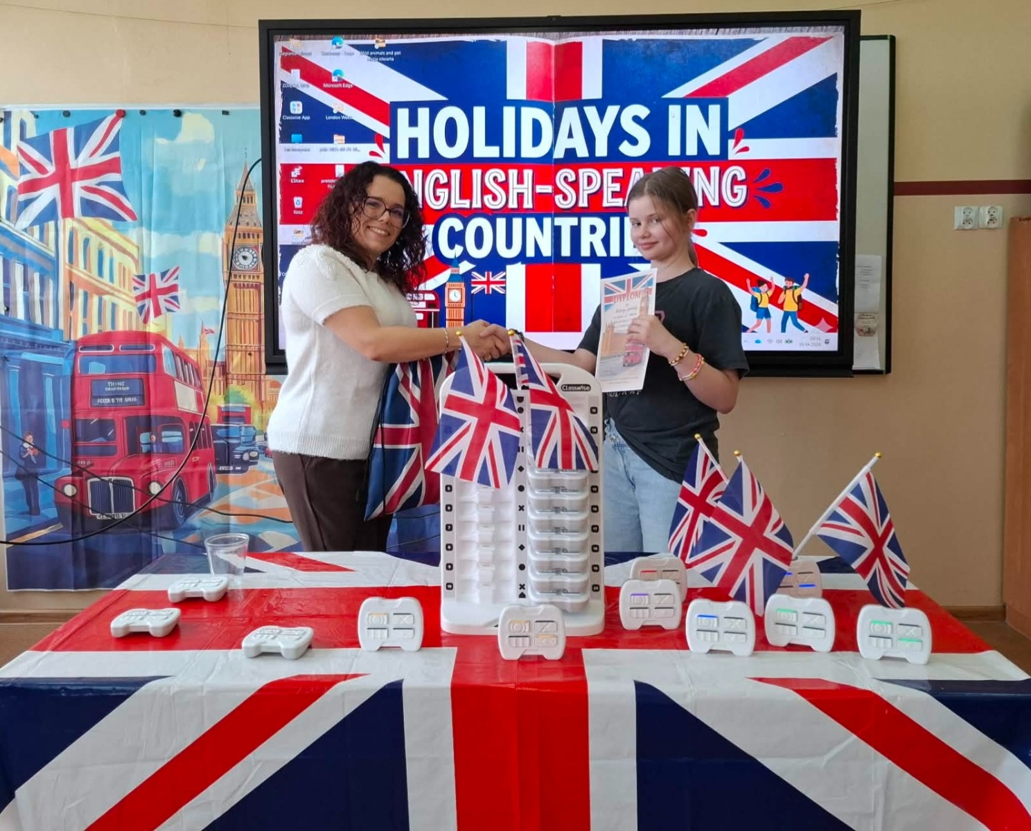 W konkursie wzięło udział 11 wyjątkowo dobrze przygotowanych uczniów. Każdy z nich wykazał się ogromną wiedzą i zaangażowaniem, co było widoczne w ich odpowiedziach. Rywalizacja była zacięta, a poziom bardzo wyrównany, co dodatkowo podkreśliło umiejętności naszych młodych językowców. Konkurs odbył się za pomocą nowoczesnego sprzętu Classpadów oraz aplikacji Classwise.