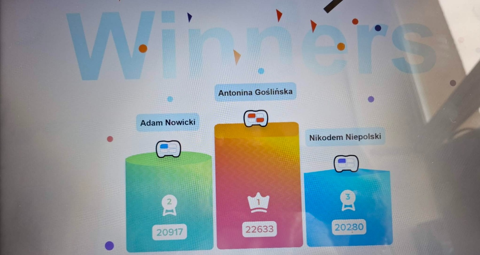 Po zakończeniu grywalizacji, aplikacja wyłoniła zwycięzców, którzy zdobyli najwięcej punktów: