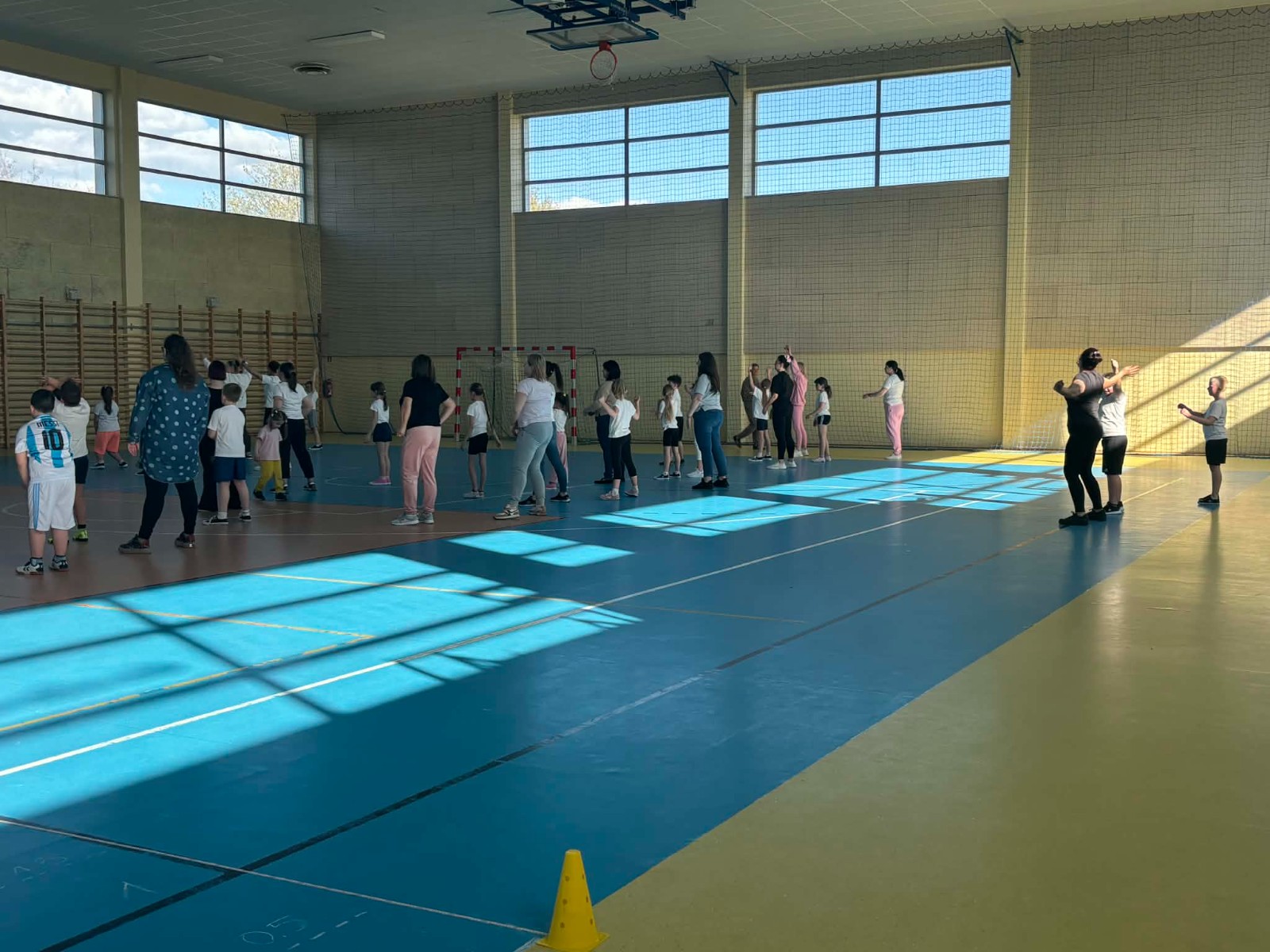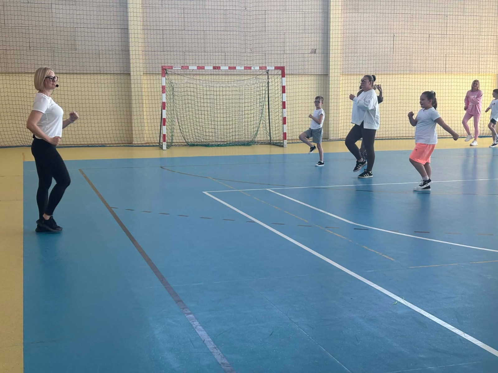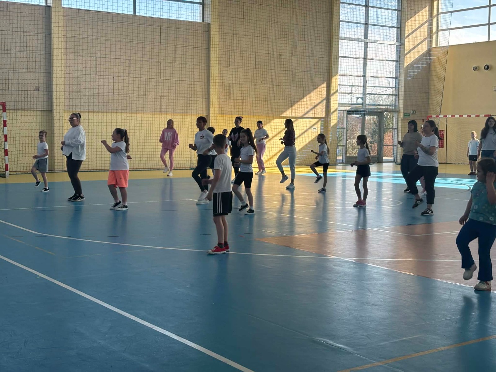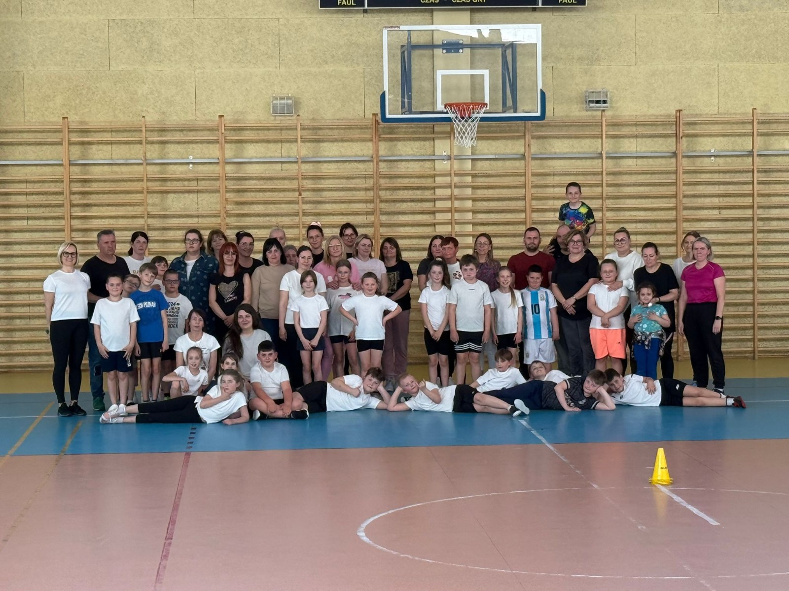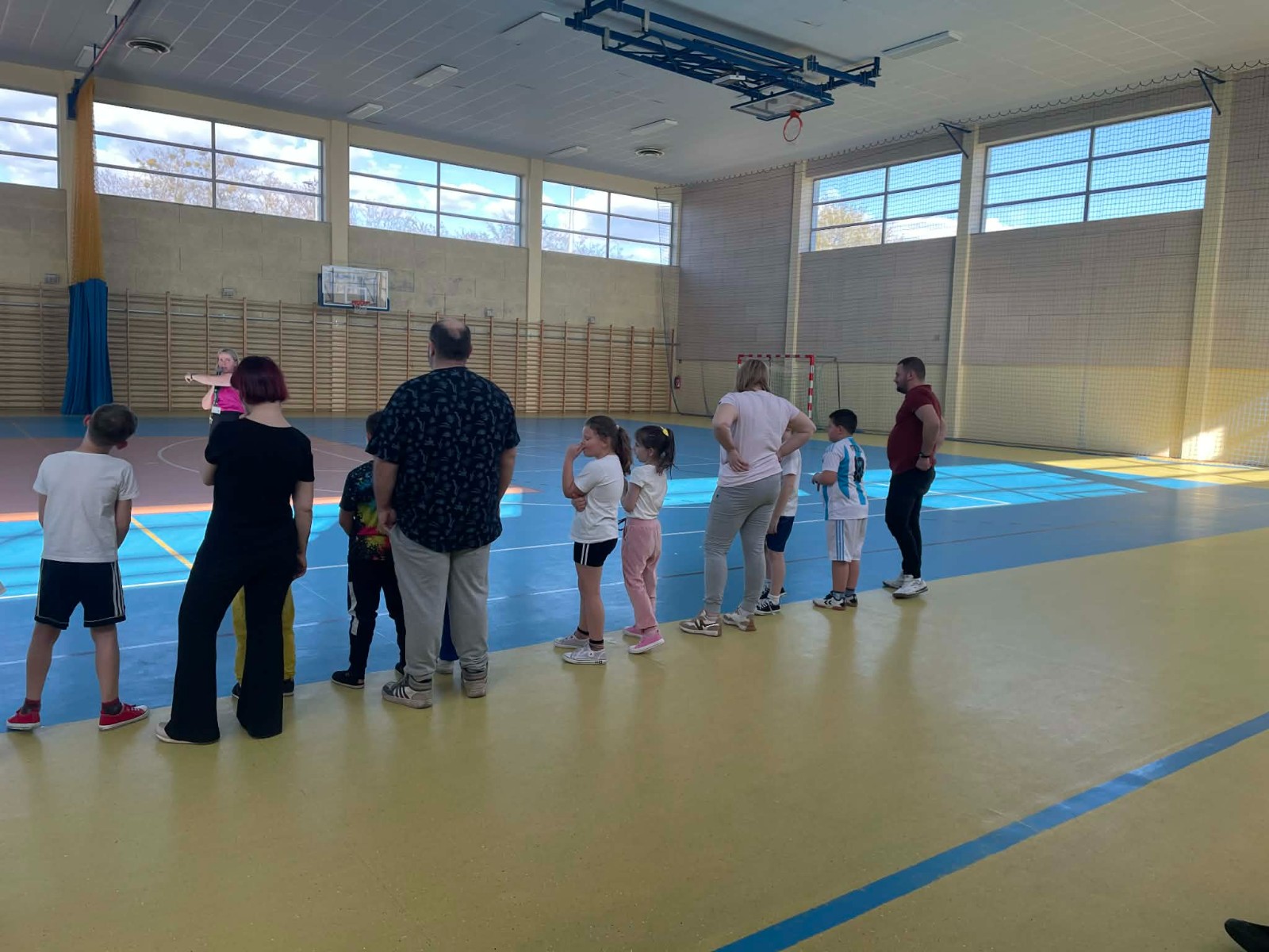 Druga część wywiadówki odbyła się w hali sportowej szkoły i miała charakter praktyczny. Po wspólnej rozgrzewce oraz zabawach ruchowych zaprezentowano rodzicom testy sprawnościowe omawiane wcześniej w części teoretycznej. Rodzice wraz z dziećmi aktywnie uczestniczyli w wykonywaniu ćwiczeń wchodzących w skład testów. Towarzyszyła temu radosna atmosfera, pełna śmiechu, zabawy i zdrowej rywalizacji. Dzięki temu rodzice mogli w praktyce zapoznać się z przebiegiem testów oraz porównać własne możliwości z wynikami swoich dzieci. Dzieci natomiast miały okazję obserwować aktywność fizyczną swoich rodziców.