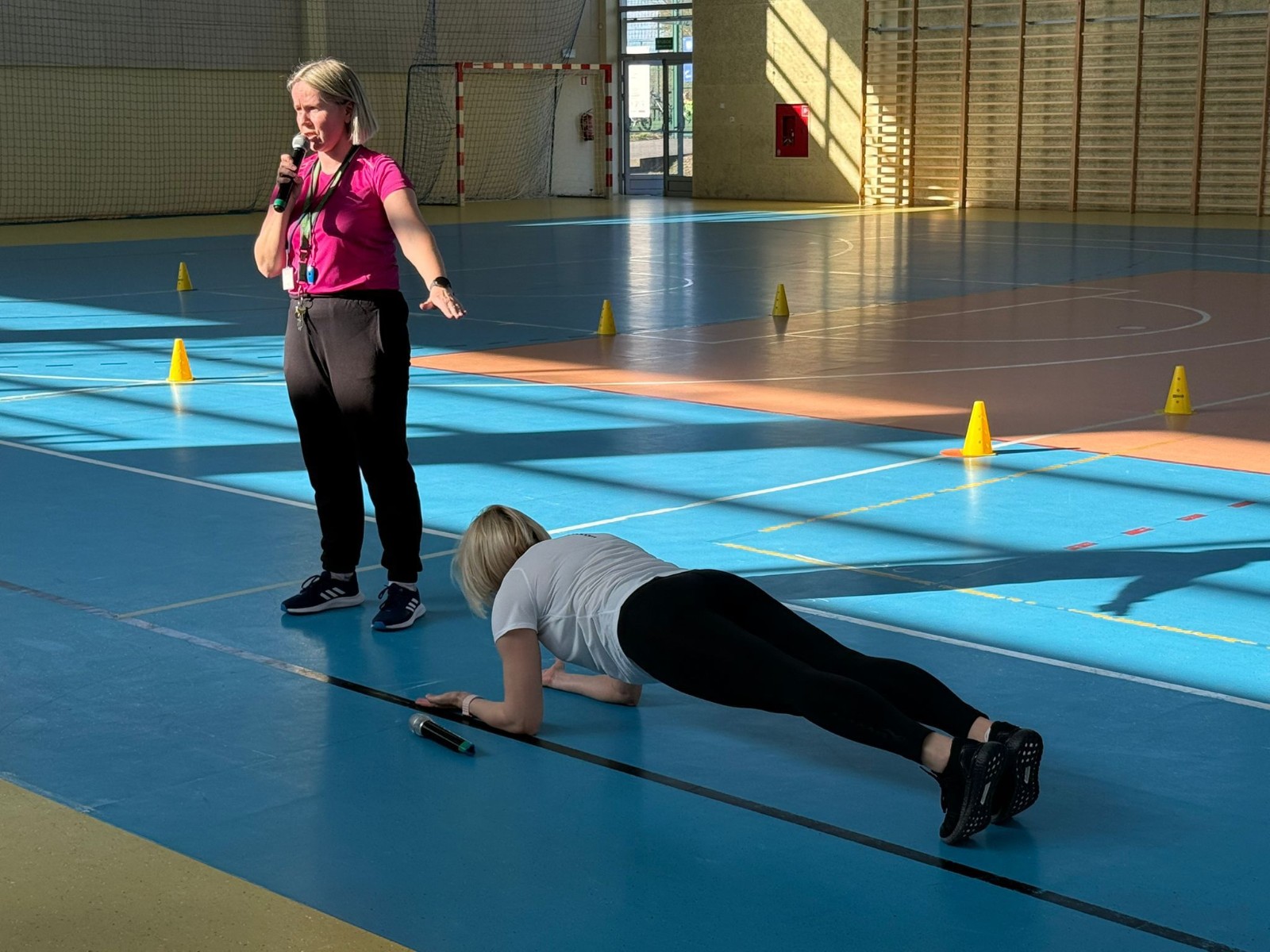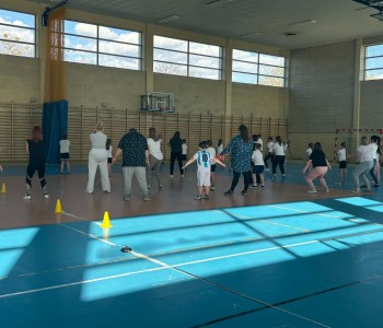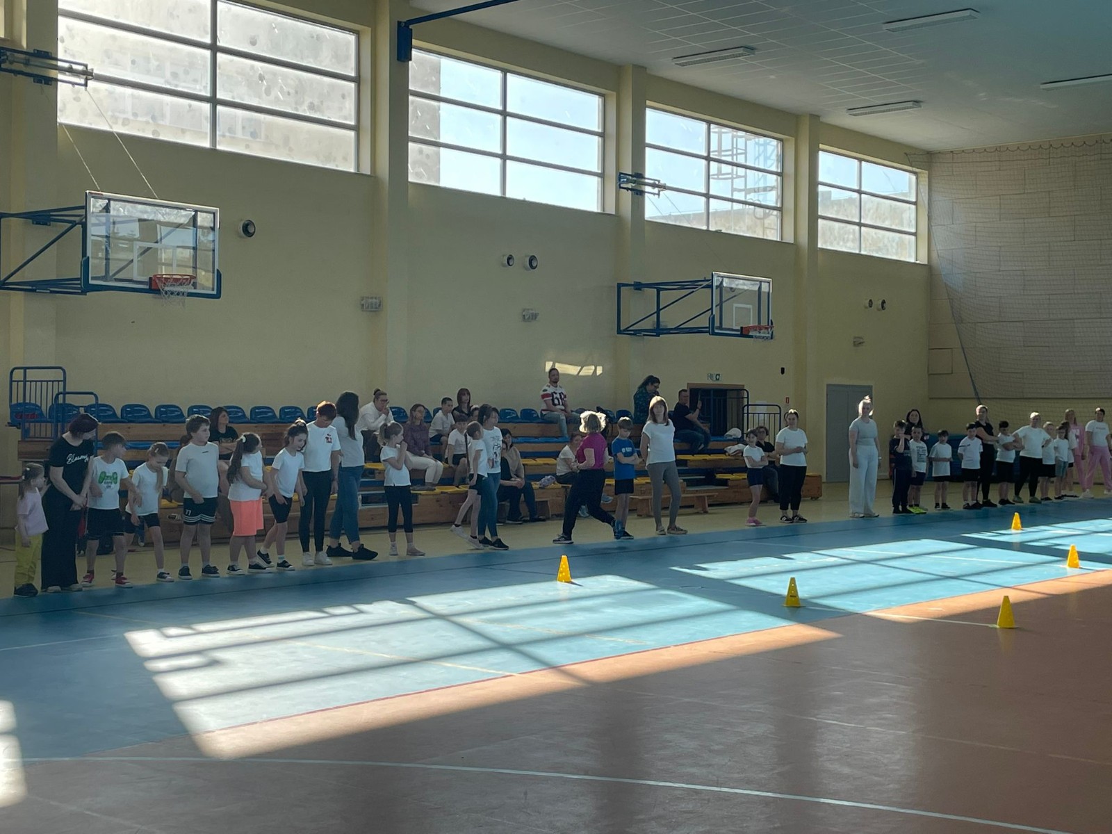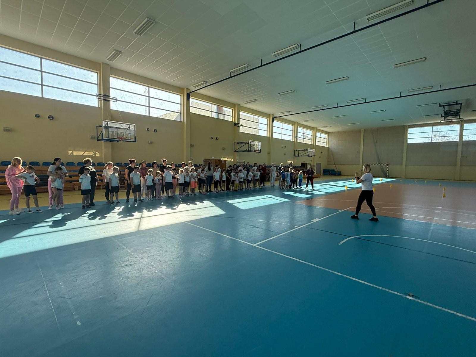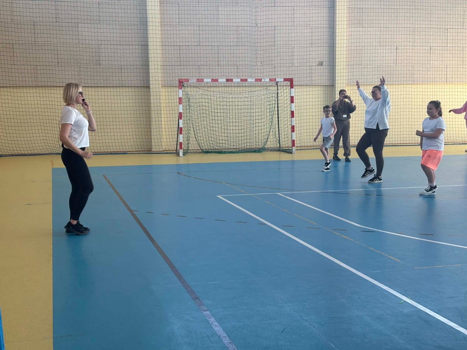 Druga część wywiadówki odbyła się w hali sportowej szkoły i miała charakter praktyczny. Po wspólnej rozgrzewce oraz zabawach ruchowych zaprezentowano rodzicom testy sprawnościowe omawiane wcześniej w części teoretycznej. Rodzice wraz z dziećmi aktywnie uczestniczyli w wykonywaniu ćwiczeń wchodzących w skład testów. Towarzyszyła temu radosna atmosfera, pełna śmiechu, zabawy i zdrowej rywalizacji. Dzięki temu rodzice mogli w praktyce zapoznać się z przebiegiem testów oraz porównać własne możliwości z wynikami swoich dzieci. Dzieci natomiast miały okazję obserwować aktywność fizyczną swoich rodziców.
