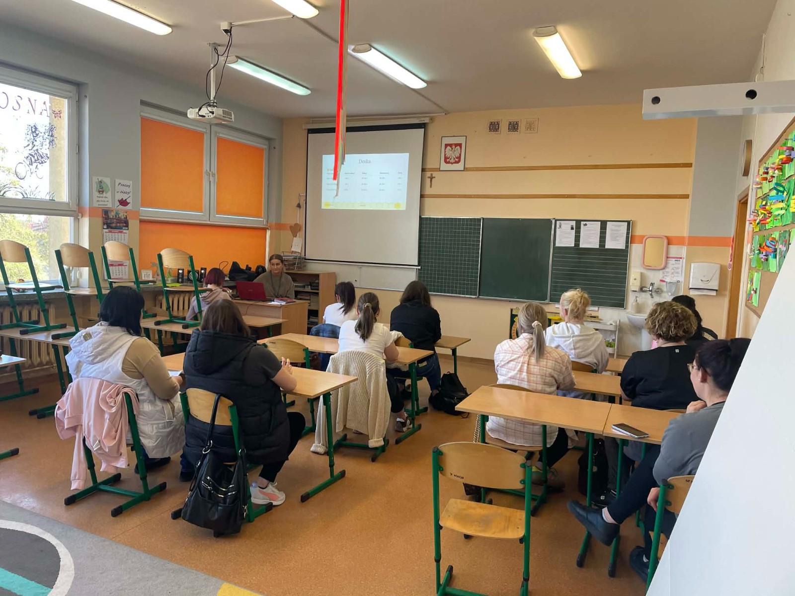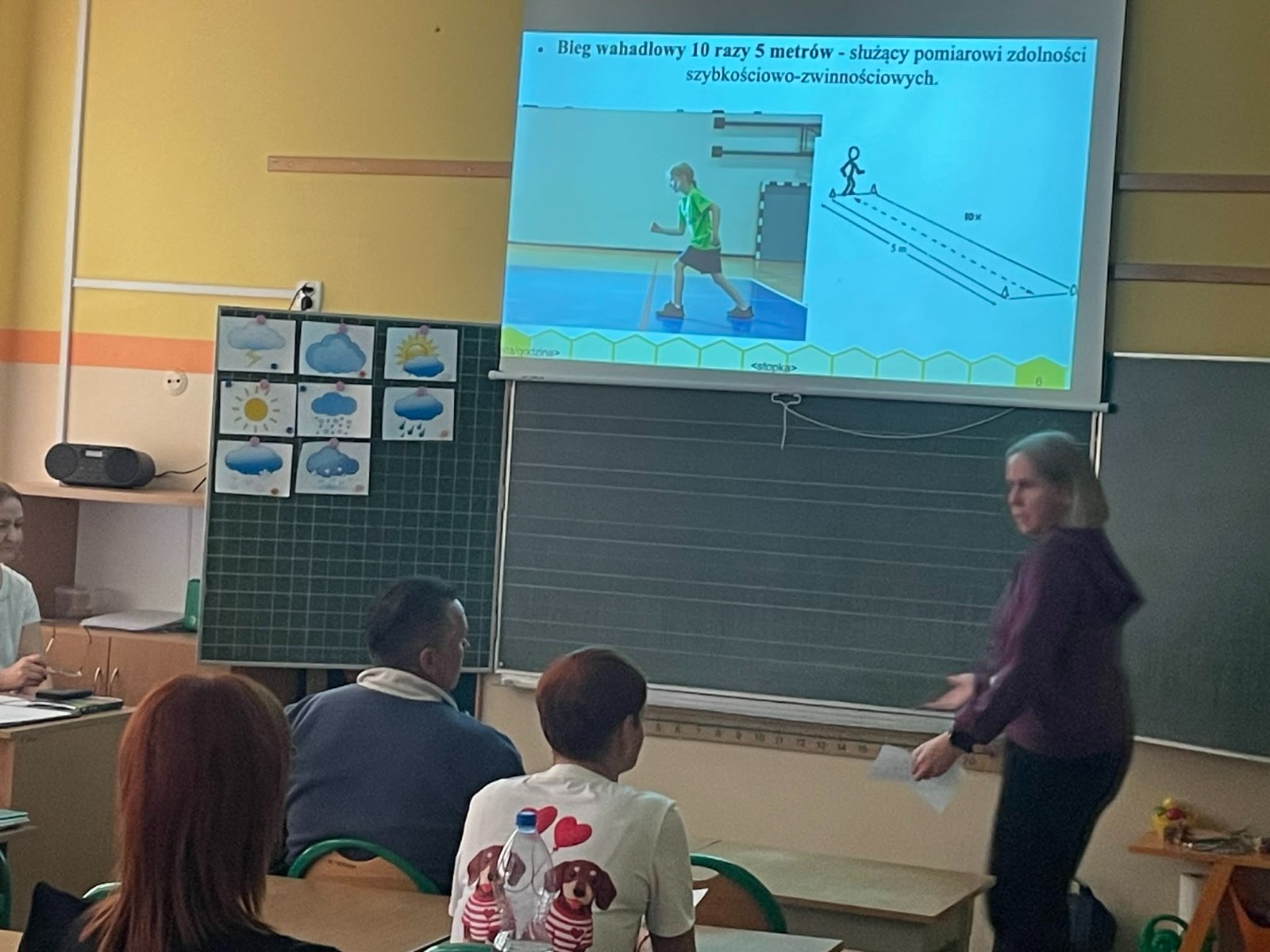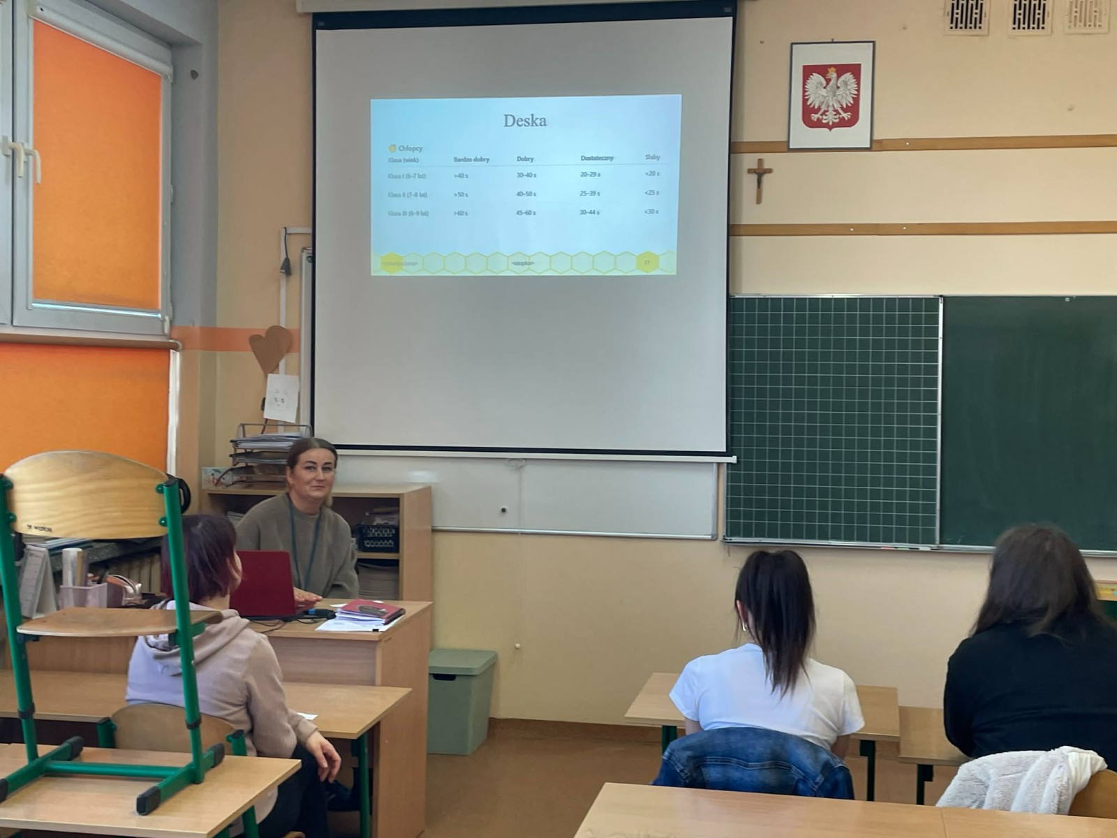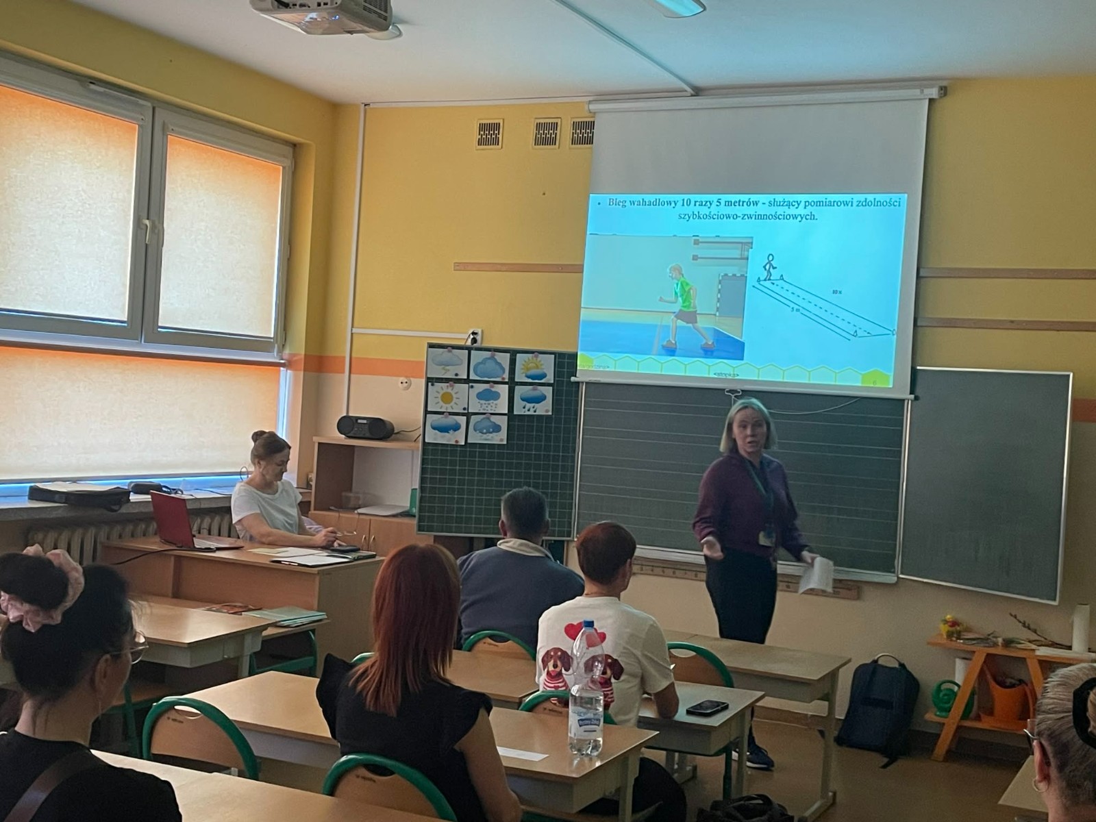 Pierwsza część spotkania miała charakter teoretyczny i odbyła się w formie prezentacji. Przedstawiono wyniki testów sprawności fizycznej przeprowadzonych w klasach 2b i 2c. Rodzice uzyskali szczegółowe informacje dotyczące osiągnięć swoich dzieci. Omówiono zarówno mocne strony uczniów, jak i obszary wymagające poprawy oraz trudności, z jakimi borykają się dzieci. Zwrócono również uwagę na pozytywne aspekty rozwoju fizycznego uczniów. Ta część spotkania cieszyła się dużym zainteresowaniem ze strony rodziców.