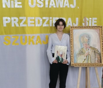 Uczennica klasy VII b Amelia Halik zajęła I miejsce w Gminnym Konkursie na wykonanie gry edukacyjnej: "ŚLADAMI ŻYCIA ŚWIĘTEGO JANA PAWŁA II". Organizatorem konkursu była Szkoła Podstawowa im. Św. Jana Pawła II w Lipinach.