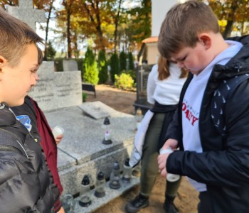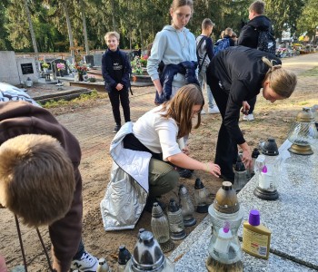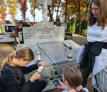 Uczniowie z koła historycznego wzięli udział w akcji „Szkoła Pamięta”. Jest to akcja Ministerstwa Edukacji i Nauki, która ma na celu upamiętnić ważne osoby i wydarzenia dla lokalnej społeczności. Akcja odbywa się w czasie, kiedy w szczególny sposób wspominamy naszych zmarłych bliskich.