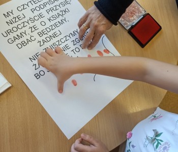 Zaczyna się niesamowita przygoda dzieci z wypożyczaniem i czytaniem książek. W tym roku szkolnym na uroczystym pasowaniu obie klasy pierwsze gościły 22 listopada. Uczniowie poznali zasady korzystania z biblioteki i postępowanie z książkami. Złożyli obietnicę, podpis kciukiem oraz otrzymali pamiątkową zakładkę. Na koniec wypożyczyli pierwszą książkę.