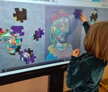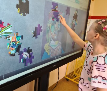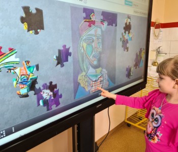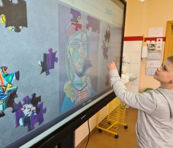 Kolejnym punktem programu było układanie puzzli z reprodukcjami słynnych dzieł Picassa. Dzięki temu zadaniu dzieci mogły lepiej poznać różnorodność i bogactwo jego twórczości oraz lepiej zrozumieć jego indywidualny styl.