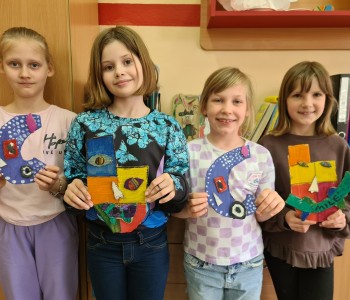 Najbardziej ekscytującą częścią zajęć było jednak tworzenie własnych obrazów w stylu Picassa. Dzieci miały okazję do wyrażenia swojej kreatywności, naśladując charakterystyczne cechy i techniki malarskie Picassa. Ich prace były pełne barw, abstrakcji i ekspresji, co pozwoliło im lepiej zrozumieć proces twórczy wielkiego mistrza.