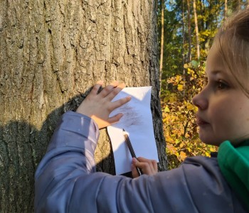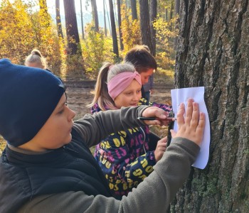 Dzieci wykonywały również ciekawe zadania związane z drzewami. Odrysowywały korę różnych gatunków, co pozwoliło im na przyjrzenie się szczegółom faktury kory i poznanie różnorodności świata drzew. Zbierały kolorowe liście, które będą wykorzystane w pracach plastycznych podczas zajęć w szkole.