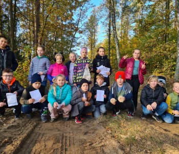 Klasa 3b wybrała się na lekcję terenową do lasu, dzięki której dzieci miały okazję poznać przyrodę w jej naturalnym środowisku.