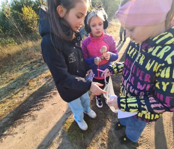 Lekcja w terenie wzbudziła w uczniach duże zainteresowanie i była okazją do nauki poprzez zabawę i bezpośredni kontakt z przyrodą. Niektórym się poszczęściło i wrócili z dodatkowym bagażem – grzybami!