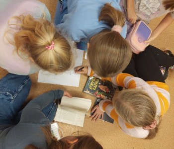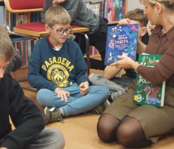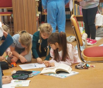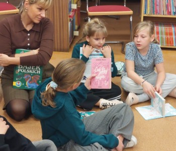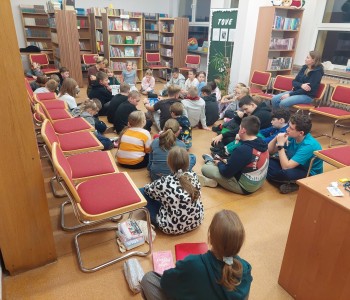 W spotkaniu wzięli udział uczniowie klas trzecich i szóstych, a tematem spotkania były bajki, baśnie i fantastyczne opowieści, które towarzyszą dzieciom na co dzień.