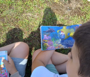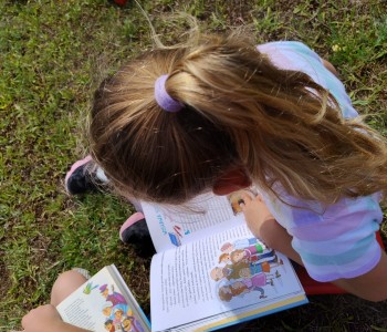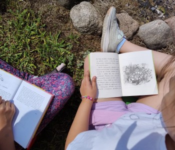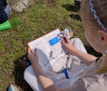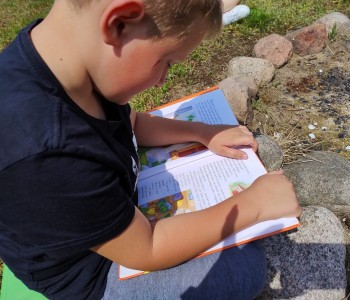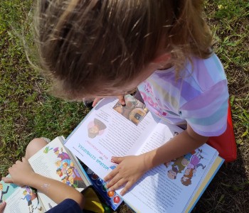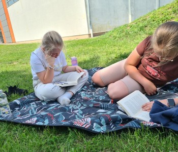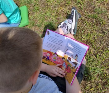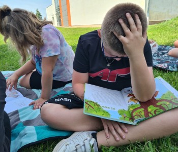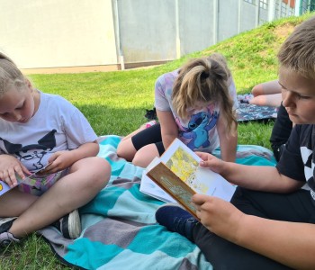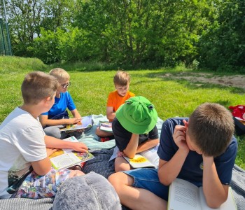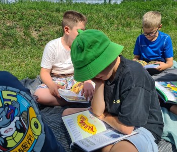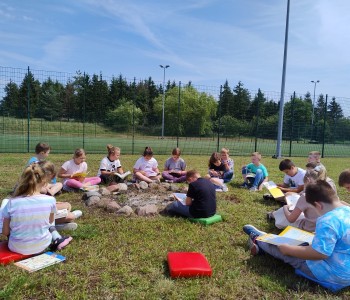 Uczniowie wraz z wychowawczyniami udali się na zieloną polanę, gdzie czekały na nich koce, poduszki i oczywiście – książki. Każdy przyniósł ze sobą książkę, którą chciał poczytać na łonie natury. Były powieści fantastyczne, przygodowe, książki tematyczne o dinozaurach, czy pająkach. Każdy czytał to, na co miał ochotę. W przyjaznej atmosferze, na świeżym powietrzu, dzieci słuchały głośnego czytania fragmentów ulubionych opowieści, prezentowanych zarówno przez nauczycieli, jak i koleżanki oraz kolegów z klas.