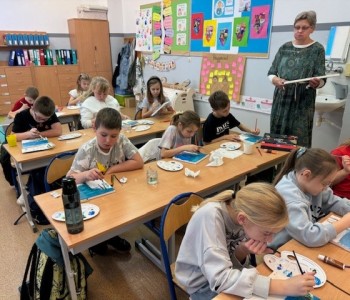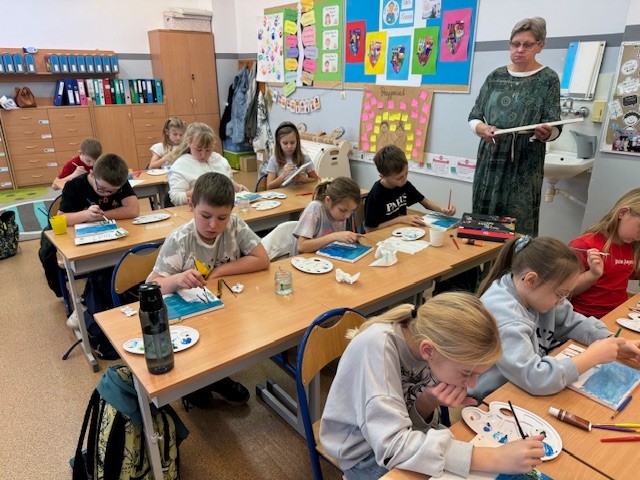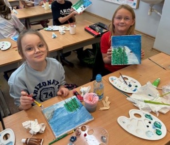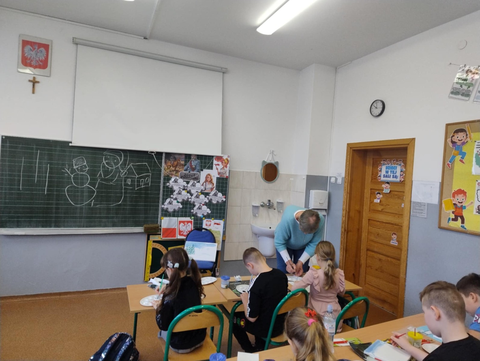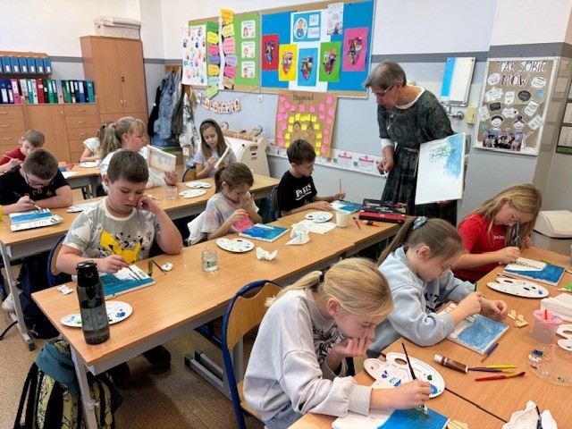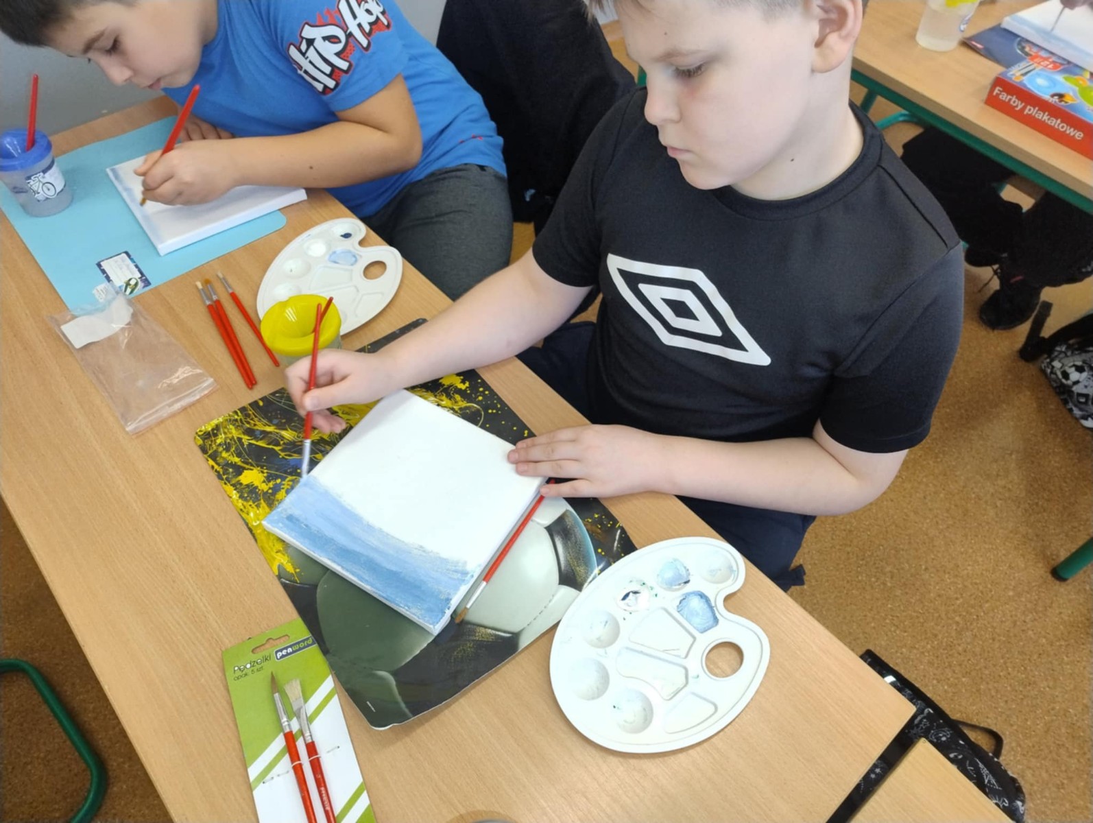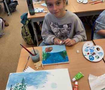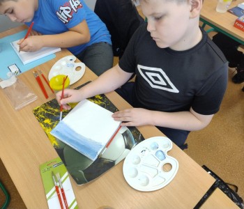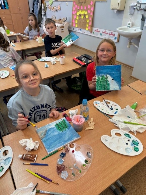 Klasy III a i III b gościły po raz kolejny Panią Jadwigę, która podczas warsztatów wyjaśniła dzieciom, że jedną z najciekawszych technik malowania na podobraziu z płótna jest nakładanie farby odpowiednią warstwą. Taki sposób malowania nadaje obrazom wyjątkową fakturę i głębię sprawiając, że dzieło zyskuje charakter twórczy. Tak, więc na zajęciach 18 i 20 listopada w naszej szkole trzecioklasiści zamienili się w małych artystów. Każdy z nich wykonał swój własny obraz. Malując farbami na płótnie stworzyli ciekawe obrazy przedstawiające oczekiwaną zimową scenerię w okresie Świąt Bożego Narodzenia.