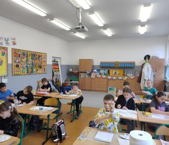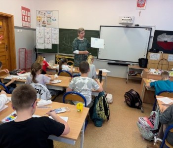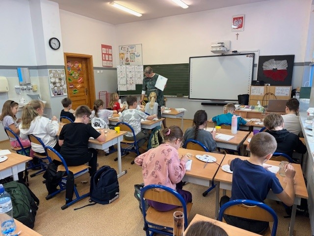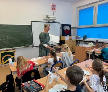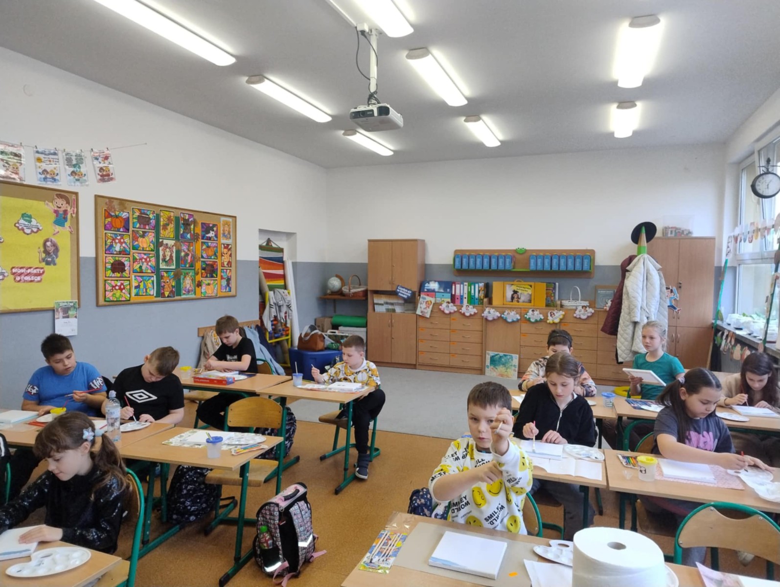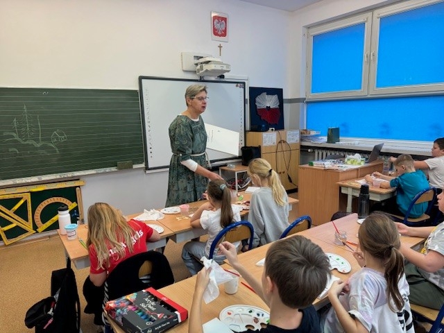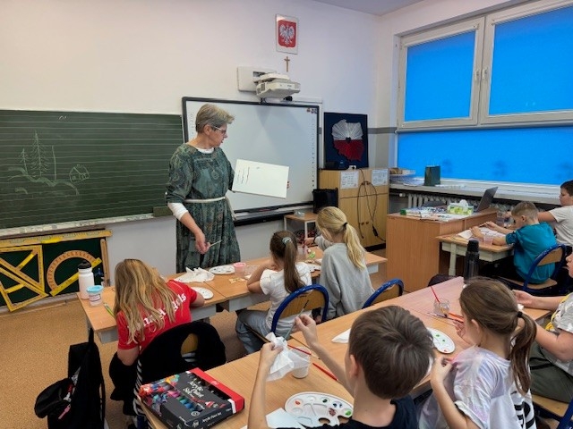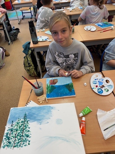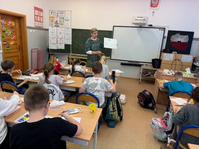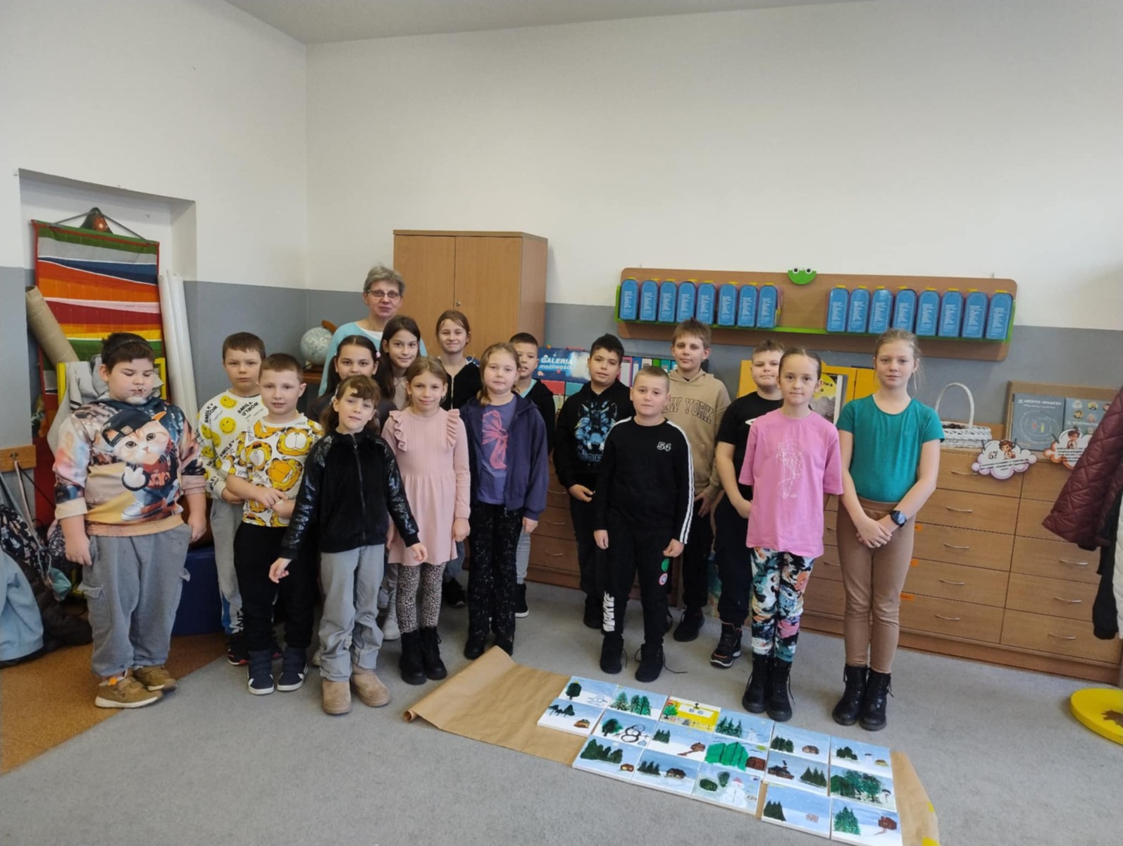 Klasy III a i III b gościły po raz kolejny Panią Jadwigę, która podczas warsztatów wyjaśniła dzieciom, że jedną z najciekawszych technik malowania na podobraziu z płótna jest nakładanie farby odpowiednią warstwą. Taki sposób malowania nadaje obrazom wyjątkową fakturę i głębię sprawiając, że dzieło zyskuje charakter twórczy. Tak, więc na zajęciach 18 i 20 listopada w naszej szkole trzecioklasiści zamienili się w małych artystów. Każdy z nich wykonał swój własny obraz. Malując farbami na płótnie stworzyli ciekawe obrazy przedstawiające oczekiwaną zimową scenerię w okresie Świąt Bożego Narodzenia.