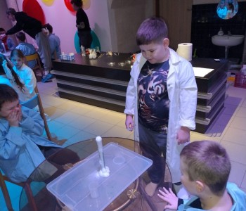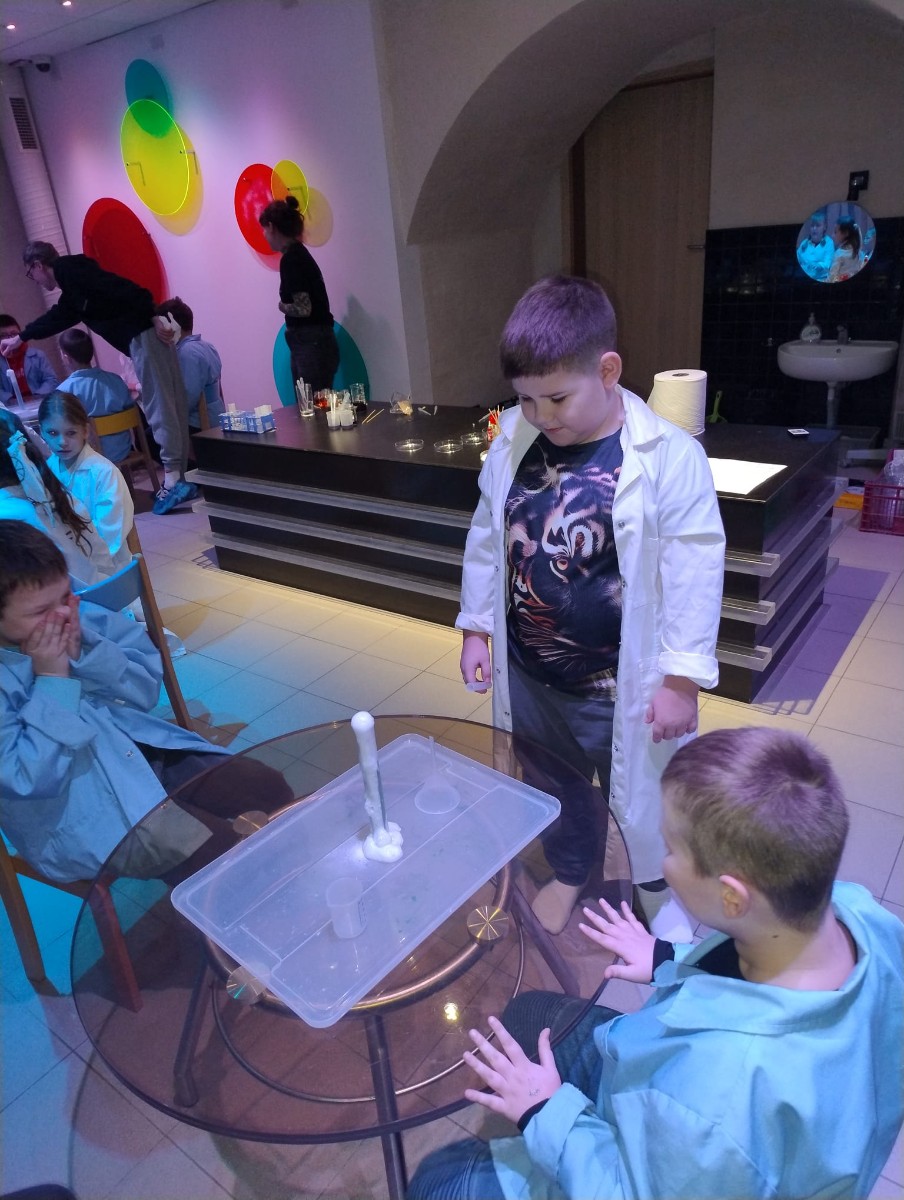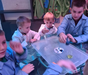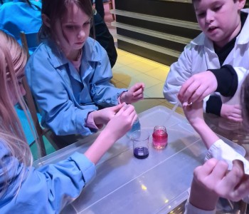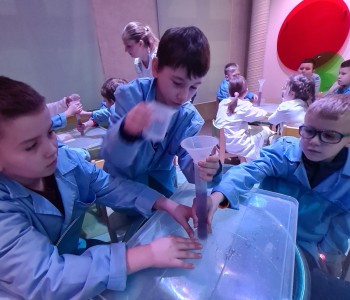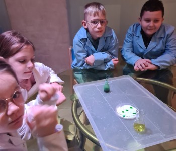 Drugim punktem w Hevelianum były warsztaty podczas których dzieci mogły wcielić się w rolę chemika i przeprowadzić mini eksperymenty.
