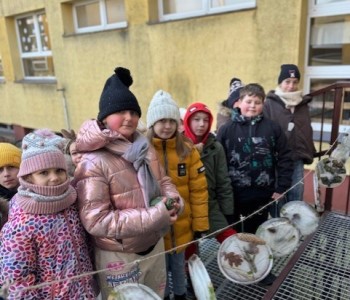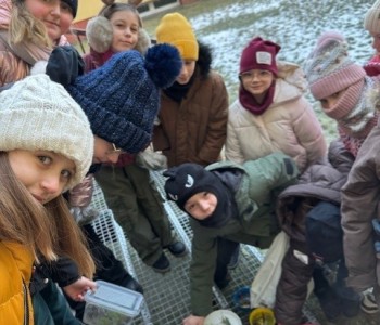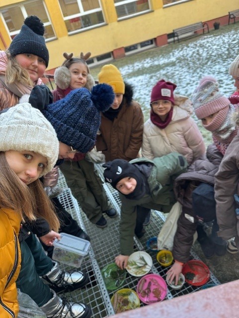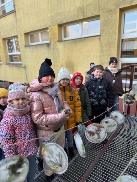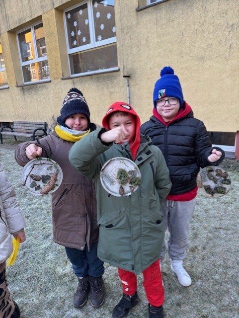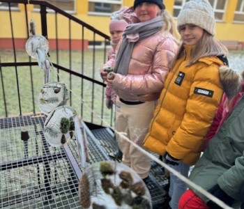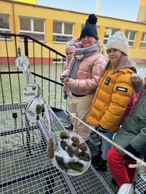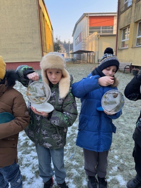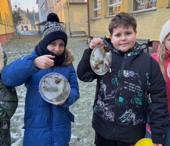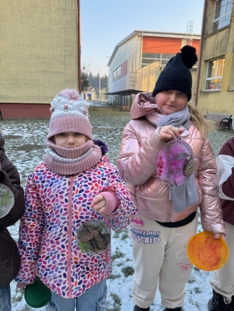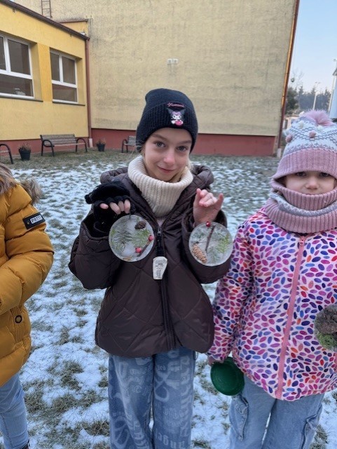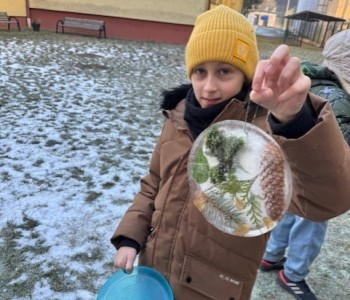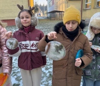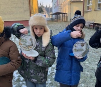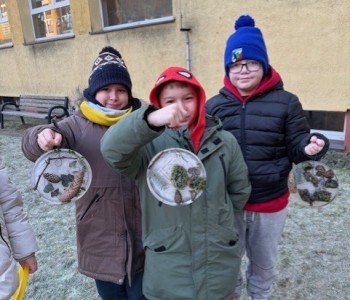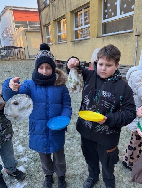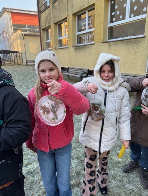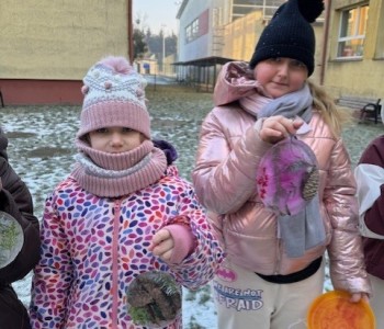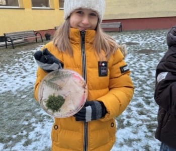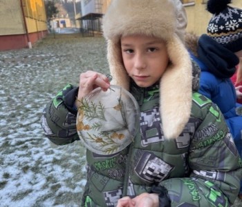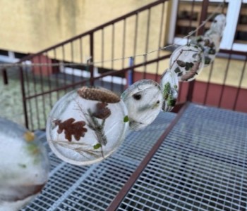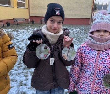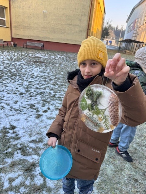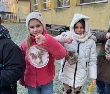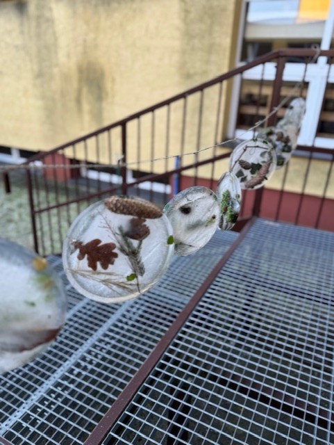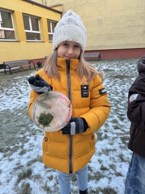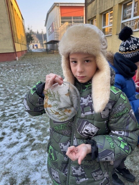 Uczniowie klasy 3b zamienili się w małych artystów i stworzyli własne dzieła sztuki inspirowane naturą. Najpierw zebrali gałązki, trawy, liście, szyszki itp., następnie ułożyli je na talerzykach i zalali wodą. Po kilku godzinach woda zamarzła, tworząc piękne, przejrzyste kule lodu. Zamrożone kule zachwycały swoją prostotą i naturalnym pięknem. Były dowodem na to, że dziecięca wyobraźnia połączona z siłami przyrody, potrafi stworzyć niezwykłe obrazy.