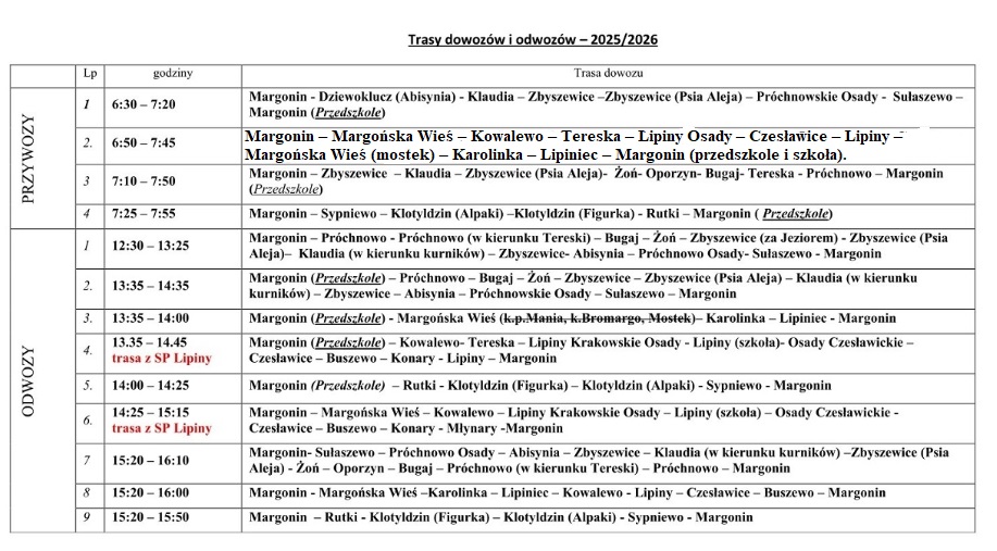 Trasy dowozów i odwozów w roku szkolnym 2025/2026