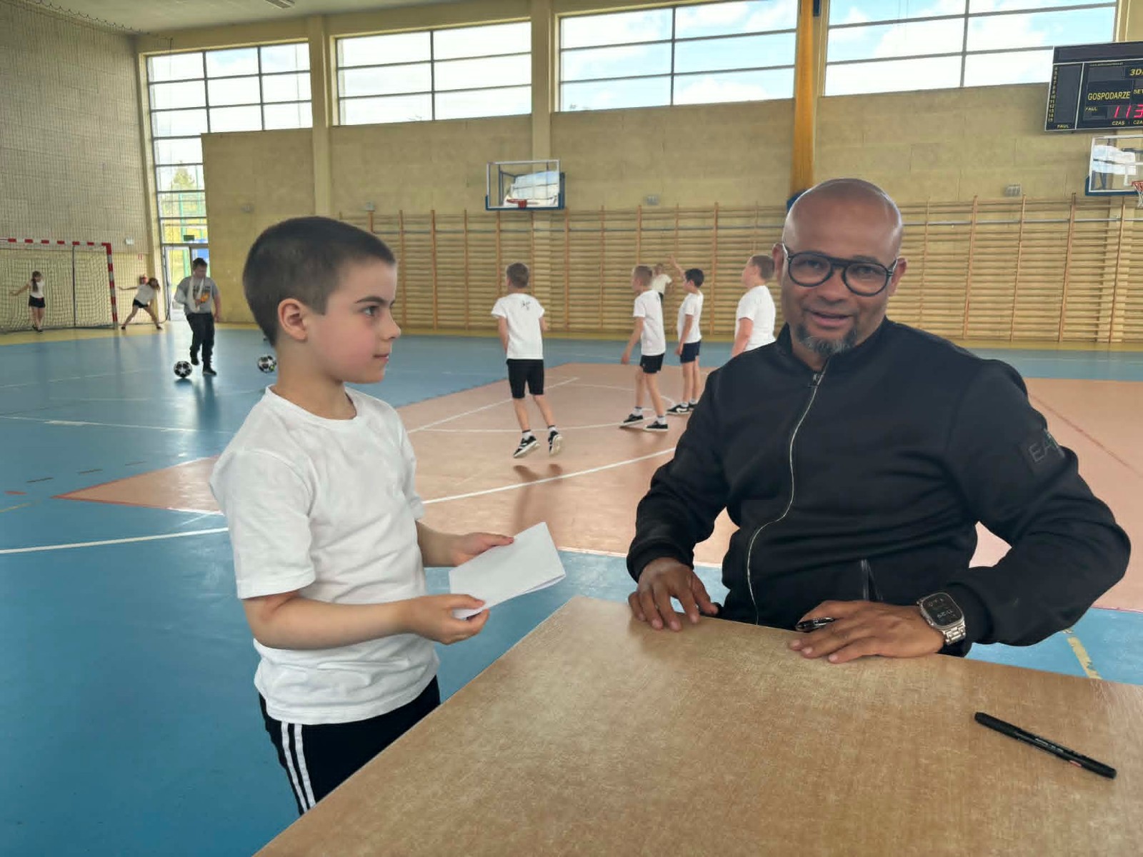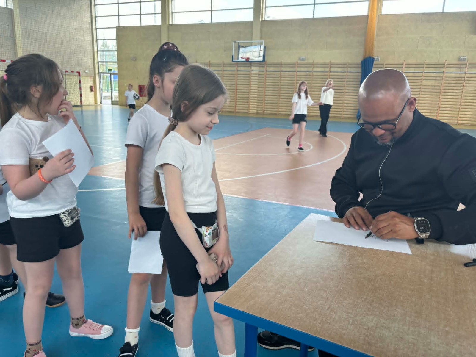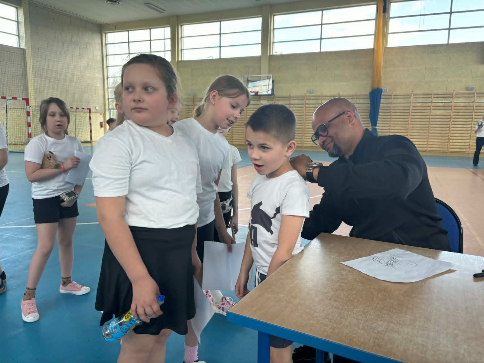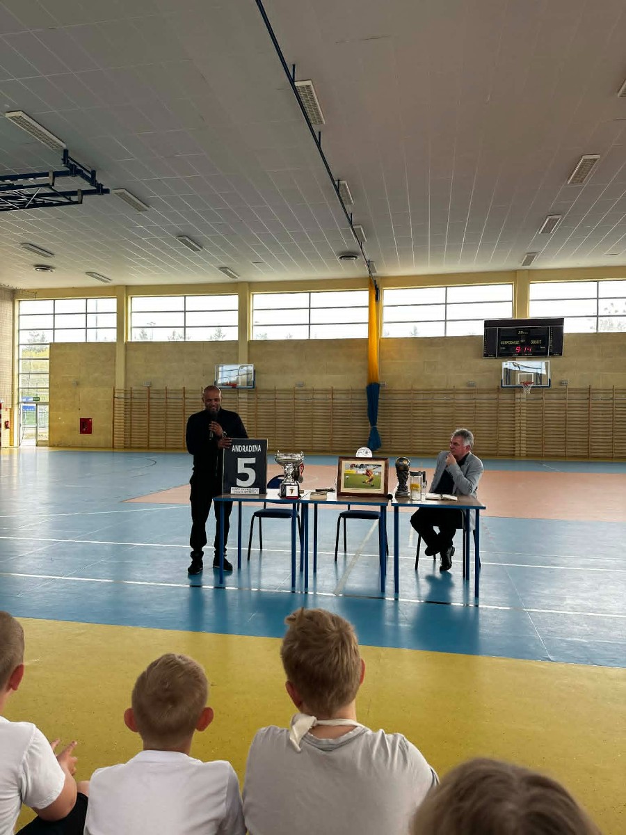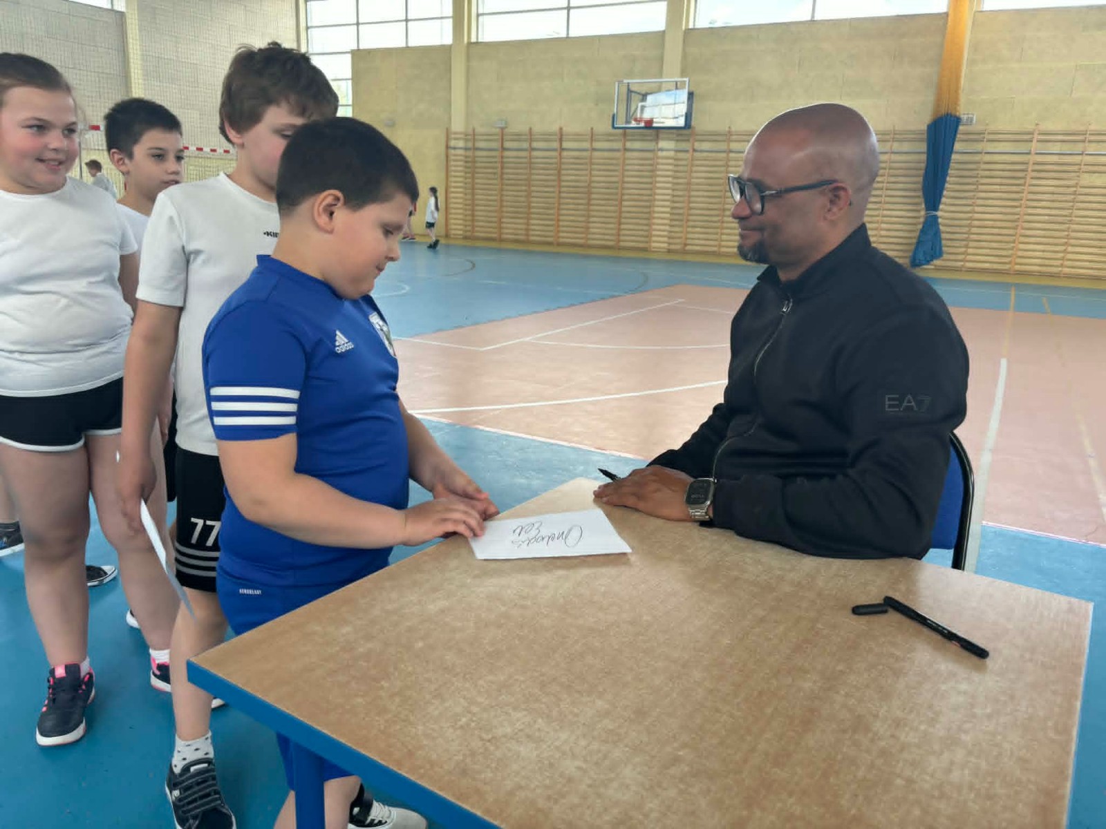 Gościem specjalnym spotkania był Pan Edi Andradina – brazylijski piłkarz grający na pozycji pomocnika i napastnika, a także trener. W Polsce występował m.in. w Pogoni Szczecin oraz Koronie Kielce. Podczas spotkania podzielił się z dziećmi swoją historią sportową, opowiadając o sukcesach oraz początkach kariery. Uczniowie mieli okazję zadawać liczne pytania, na które gość chętnie i wyczerpująco odpowiadał.