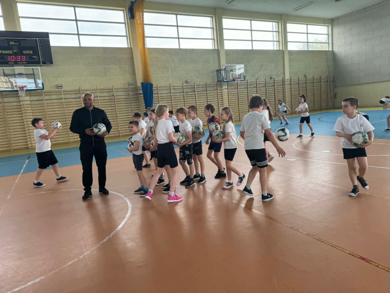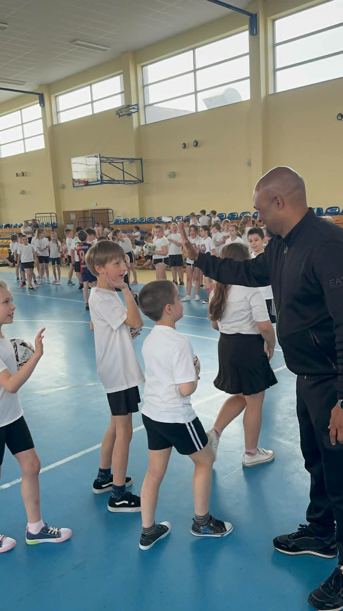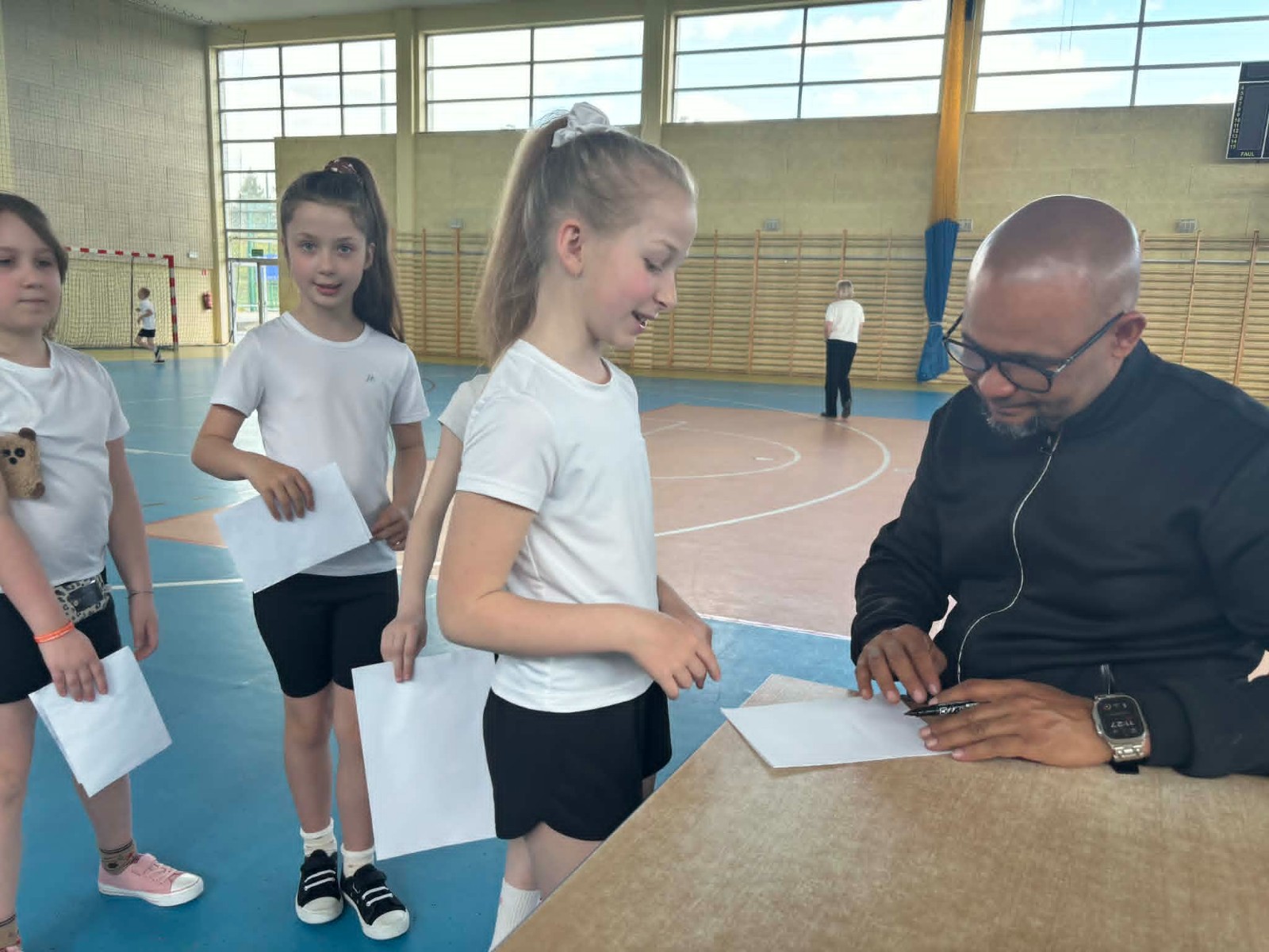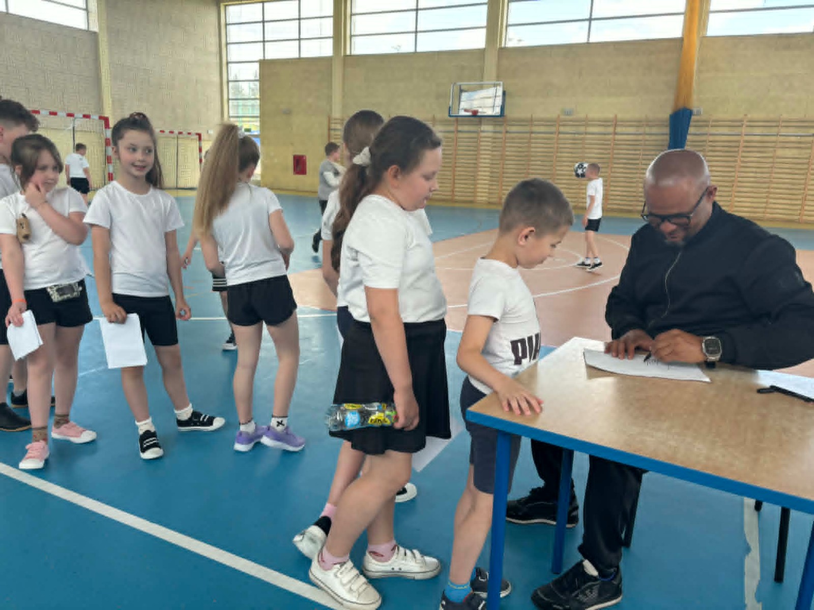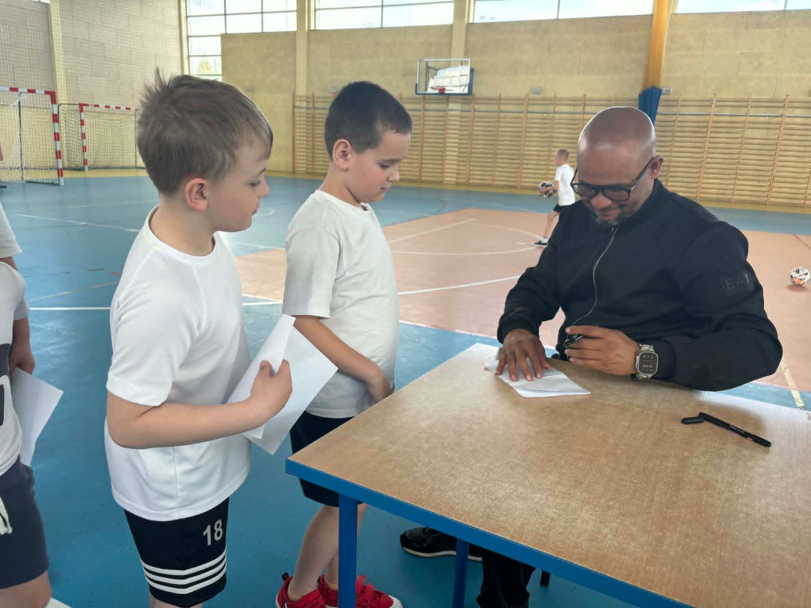 Gościem specjalnym spotkania był Pan Edi Andradina – brazylijski piłkarz grający na pozycji pomocnika i napastnika, a także trener. W Polsce występował m.in. w Pogoni Szczecin oraz Koronie Kielce. Podczas spotkania podzielił się z dziećmi swoją historią sportową, opowiadając o sukcesach oraz początkach kariery. Uczniowie mieli okazję zadawać liczne pytania, na które gość chętnie i wyczerpująco odpowiadał.