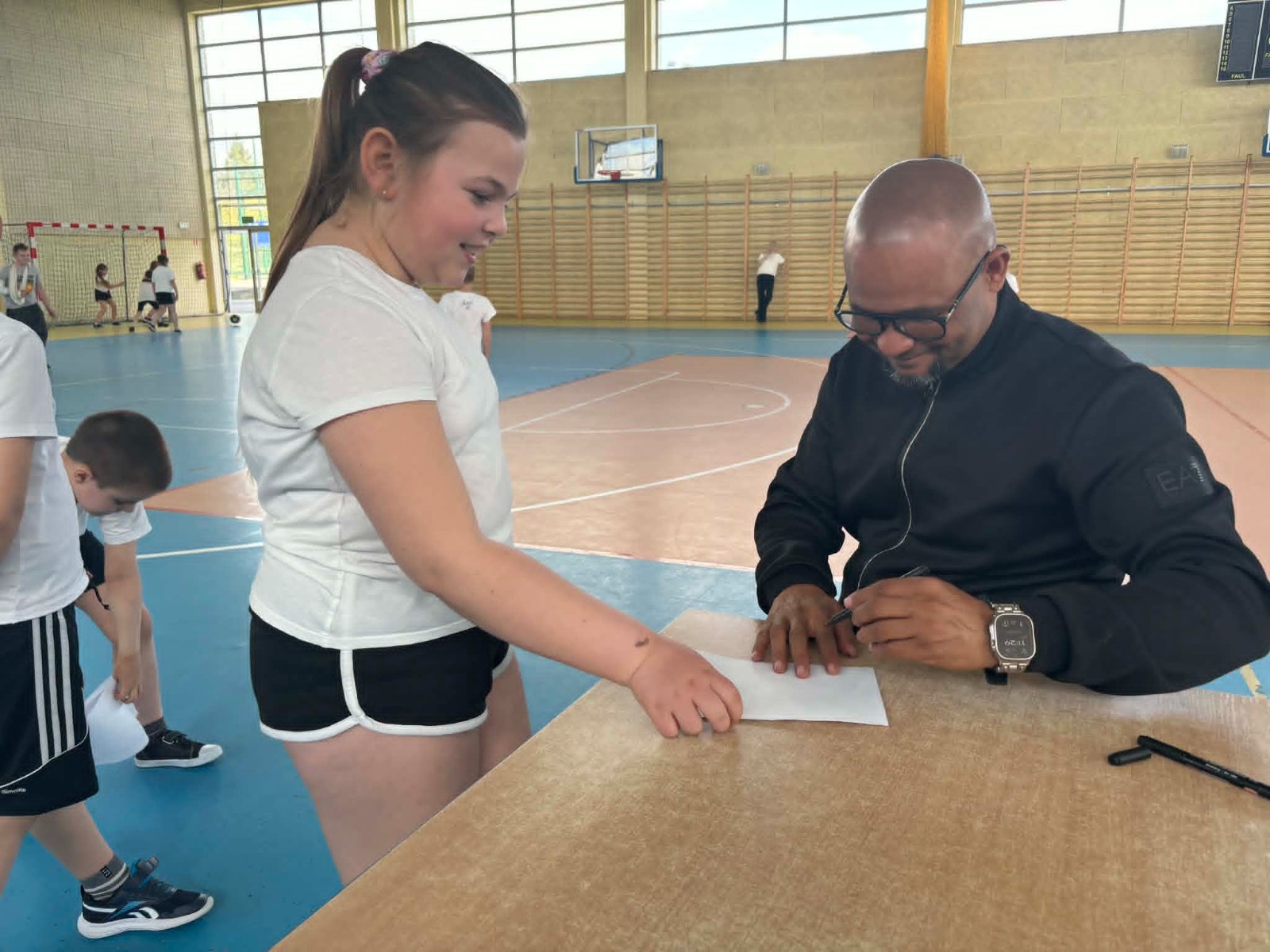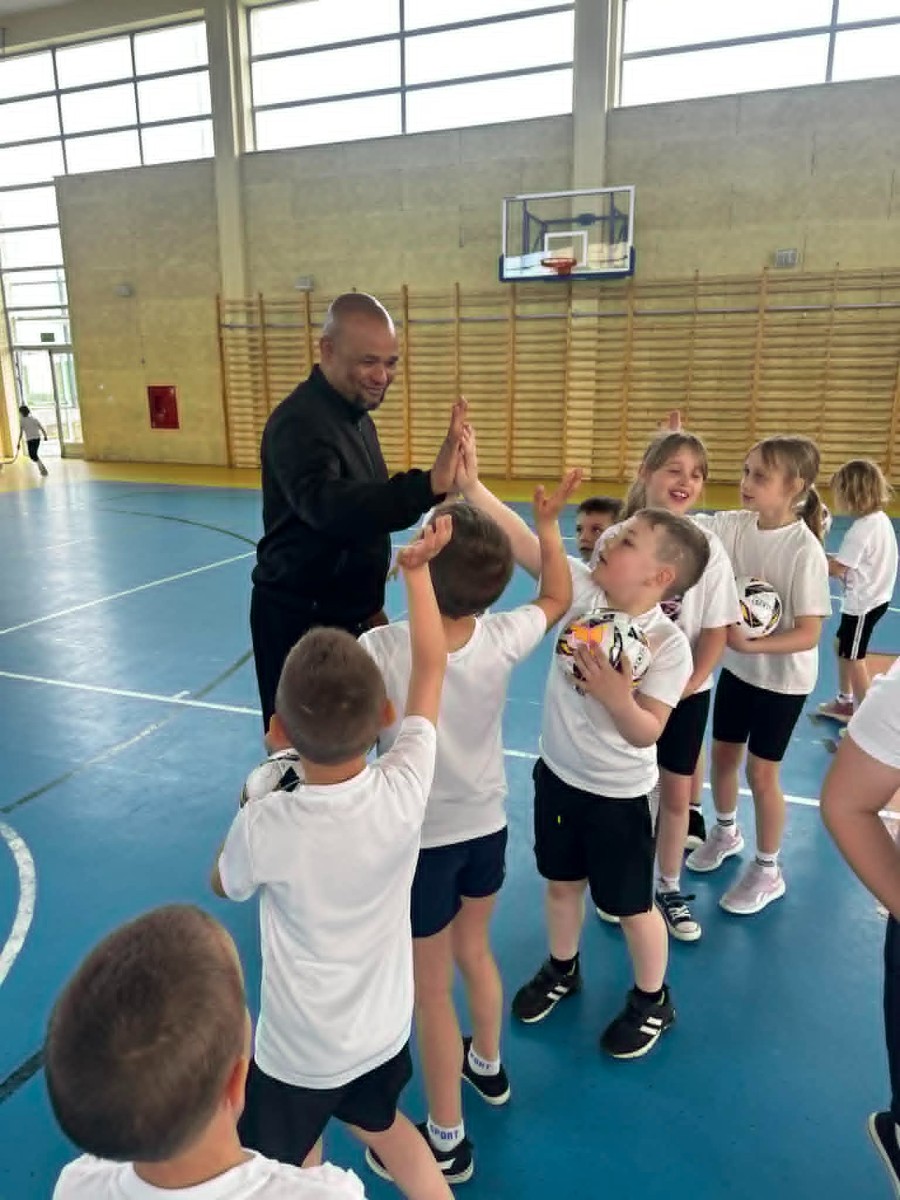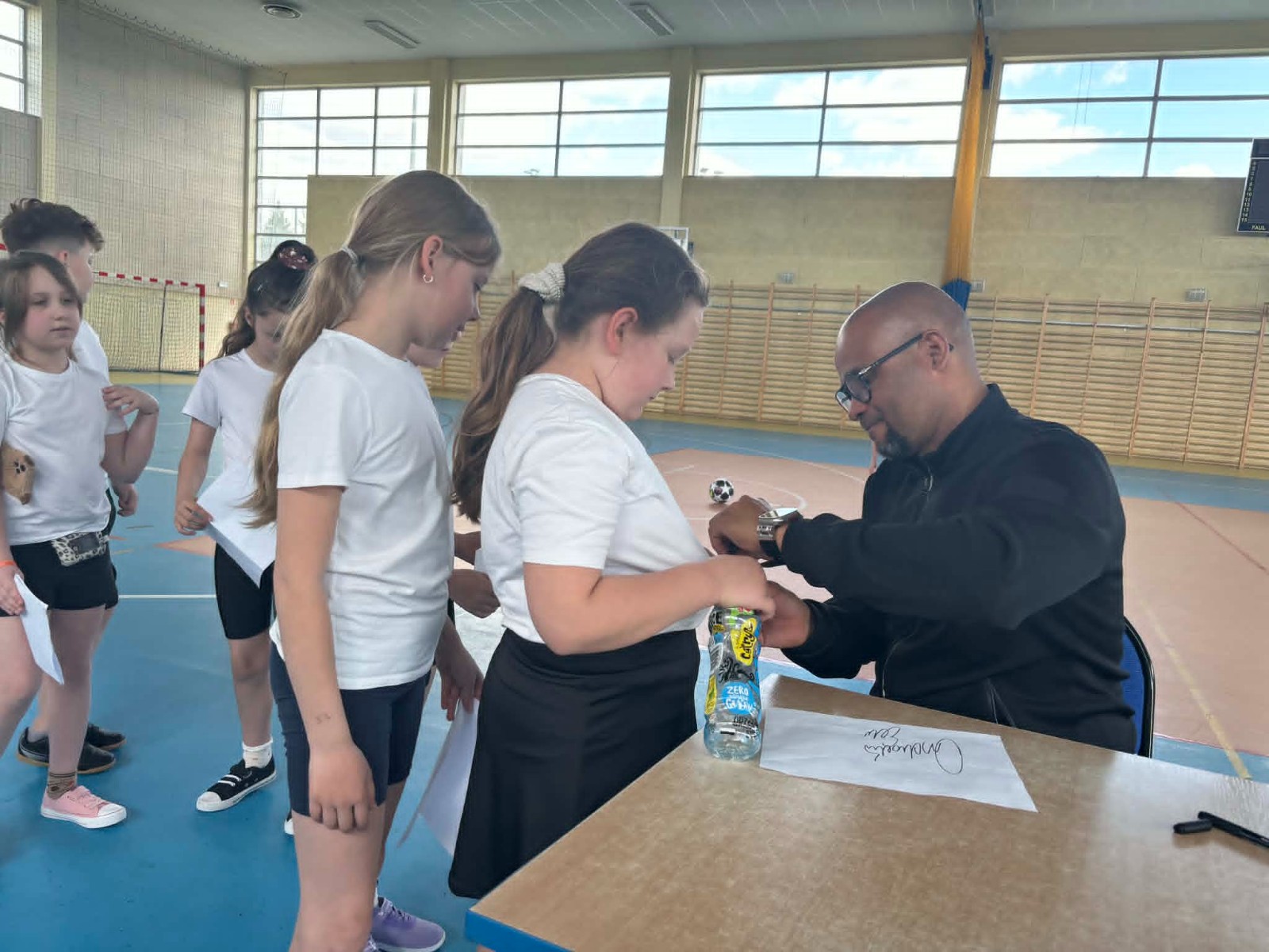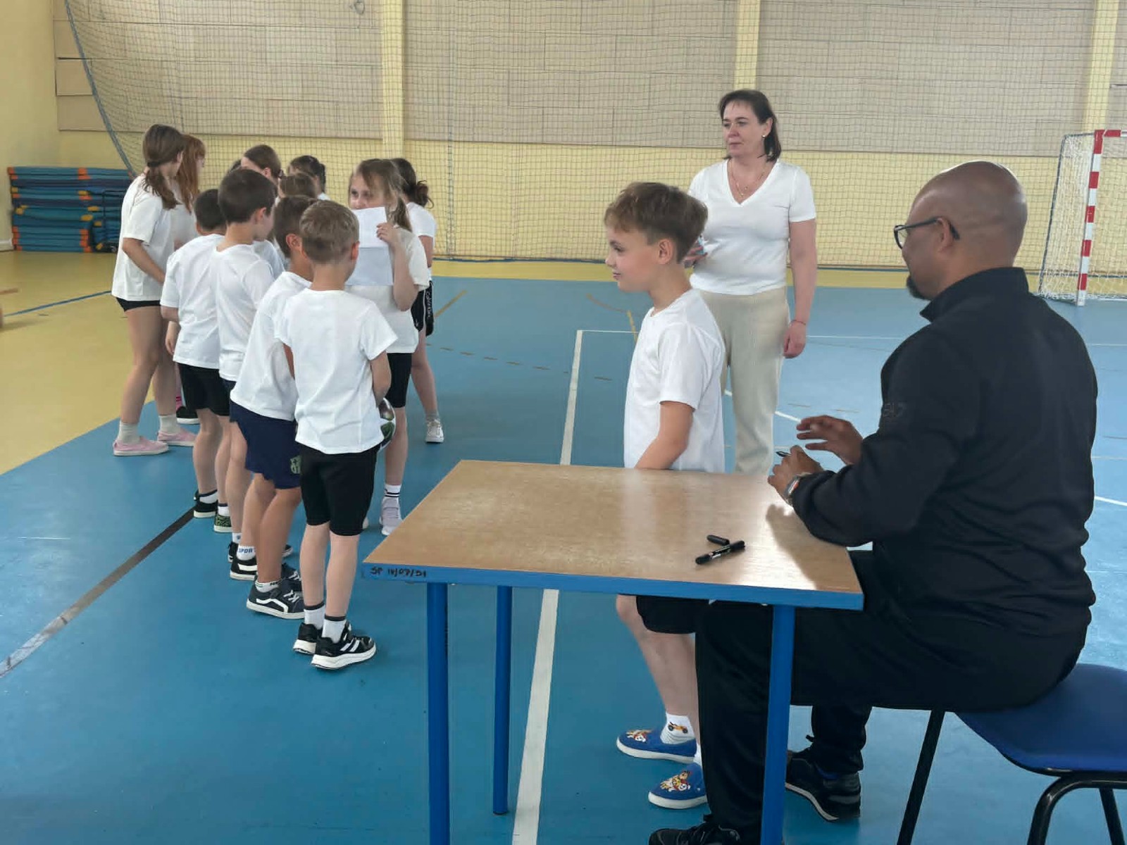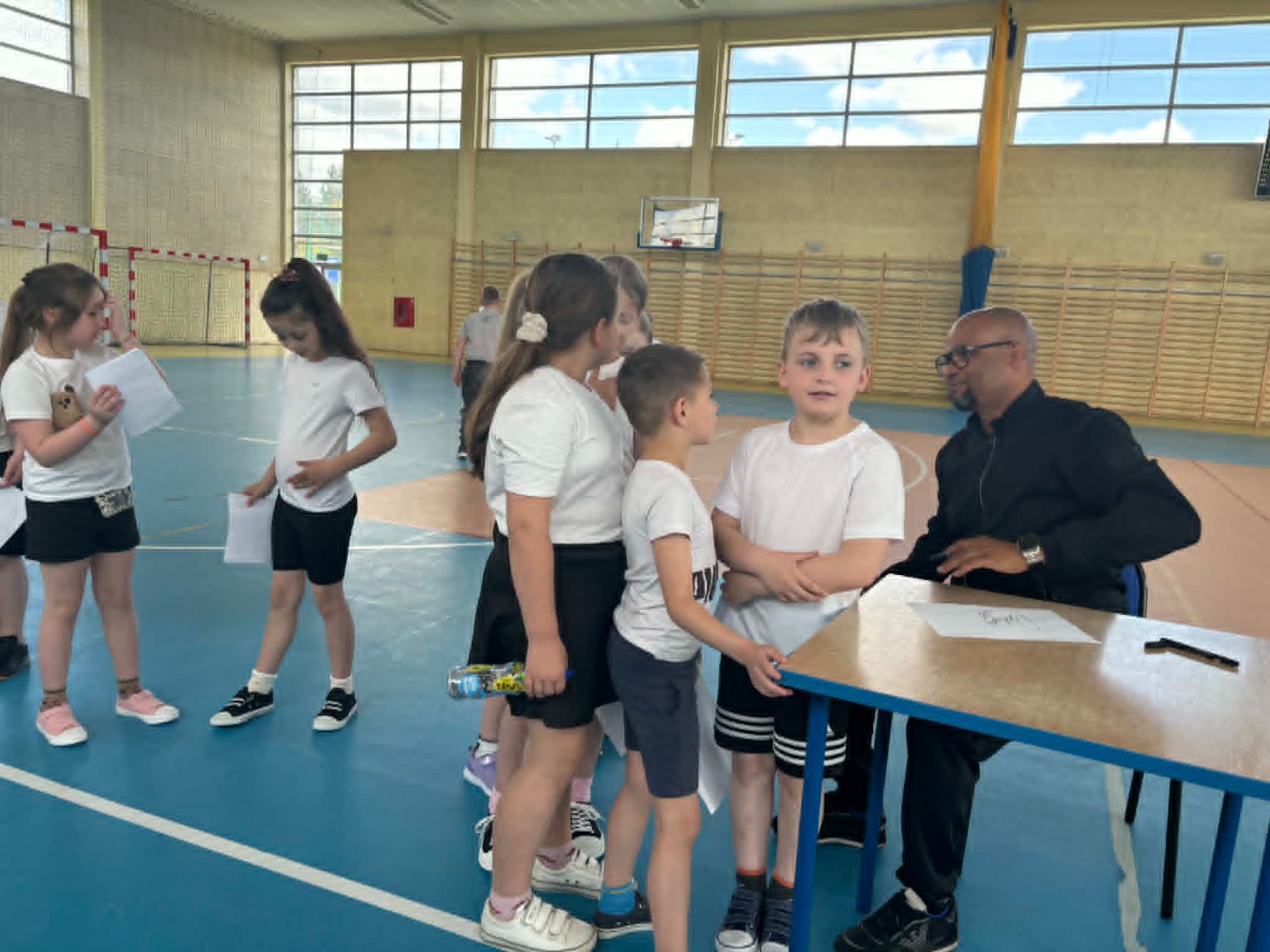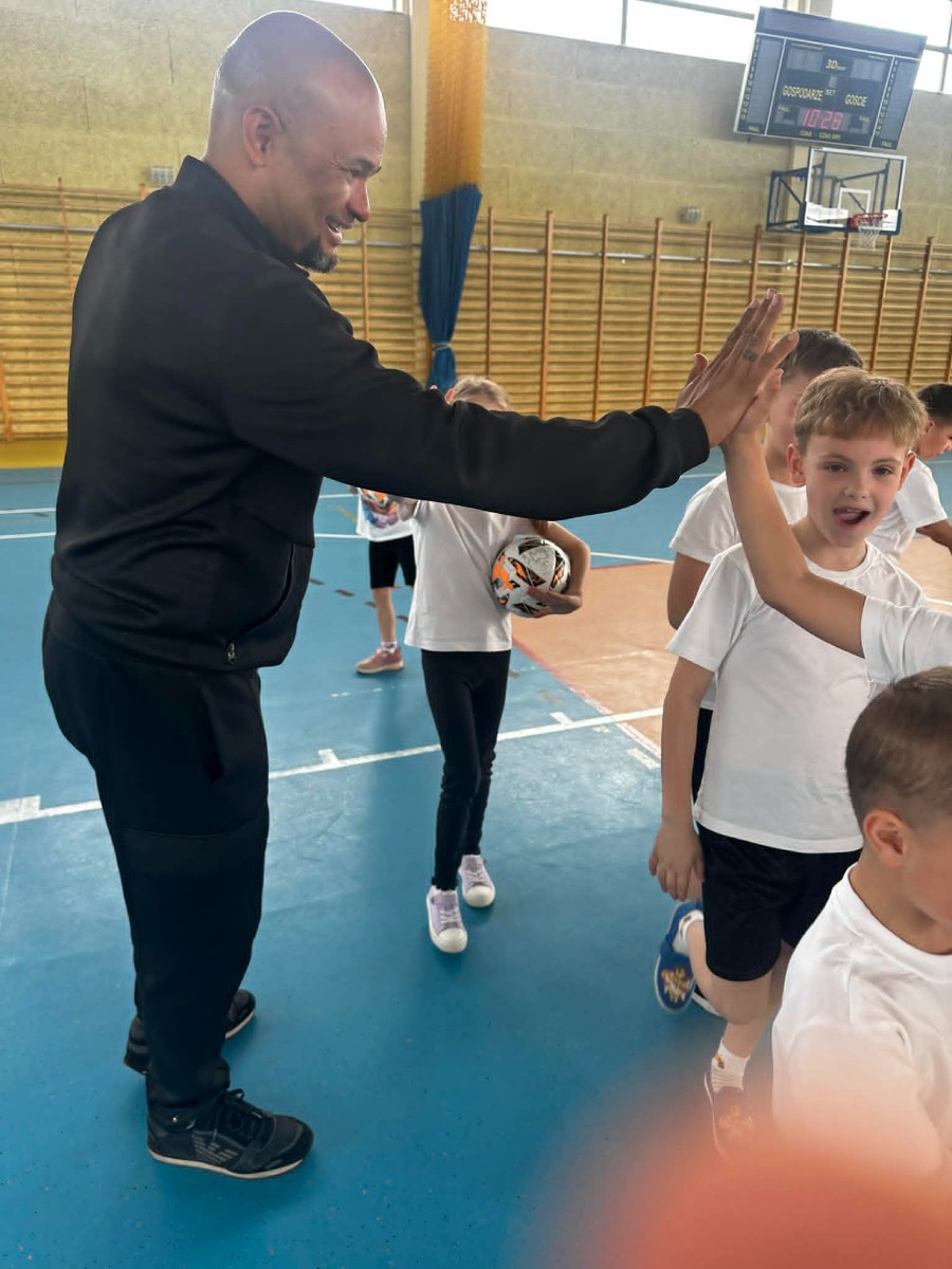 Gościem specjalnym spotkania był Pan Edi Andradina – brazylijski piłkarz grający na pozycji pomocnika i napastnika, a także trener. W Polsce występował m.in. w Pogoni Szczecin oraz Koronie Kielce. Podczas spotkania podzielił się z dziećmi swoją historią sportową, opowiadając o sukcesach oraz początkach kariery. Uczniowie mieli okazję zadawać liczne pytania, na które gość chętnie i wyczerpująco odpowiadał.