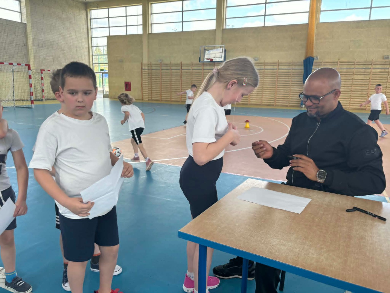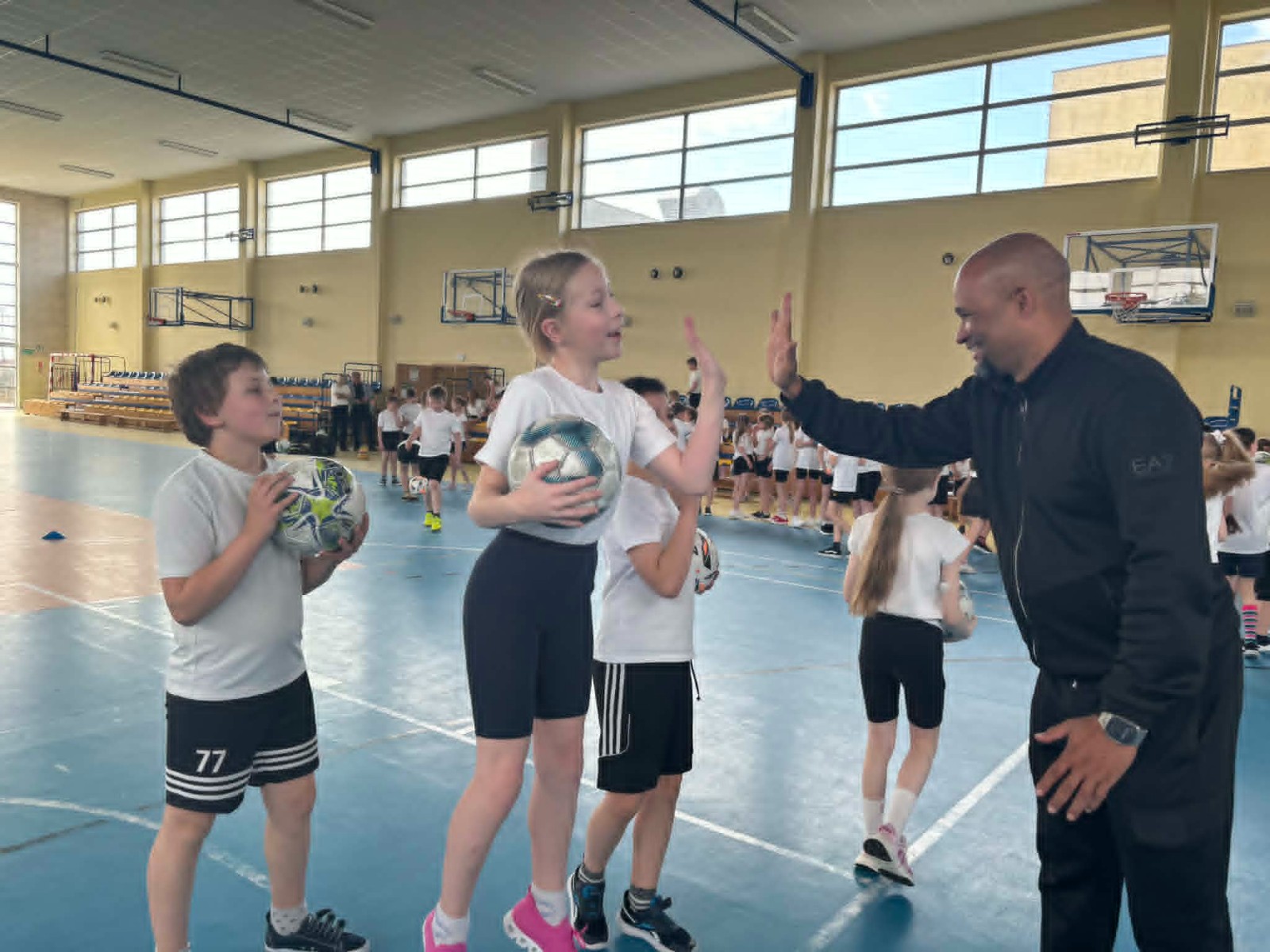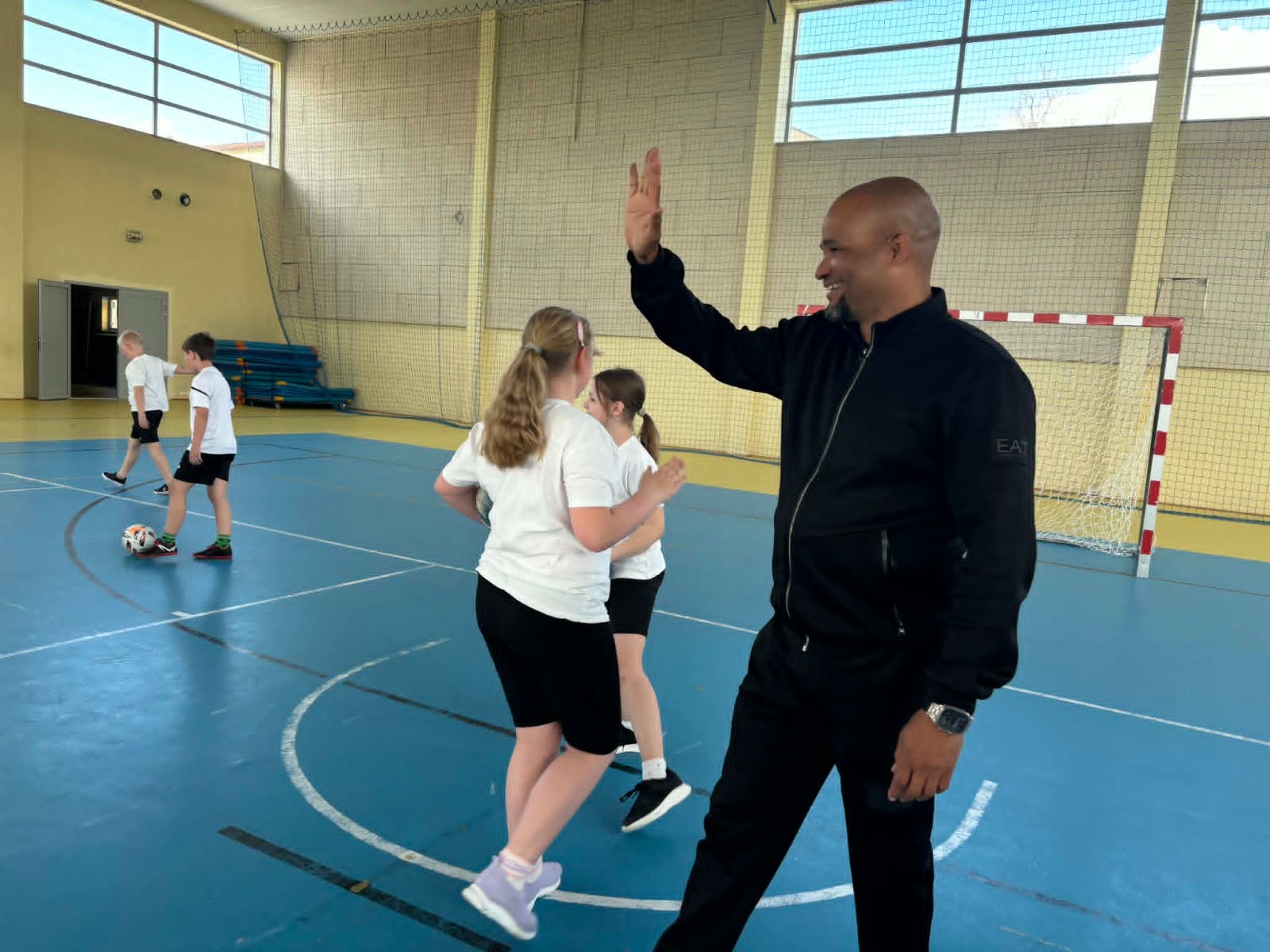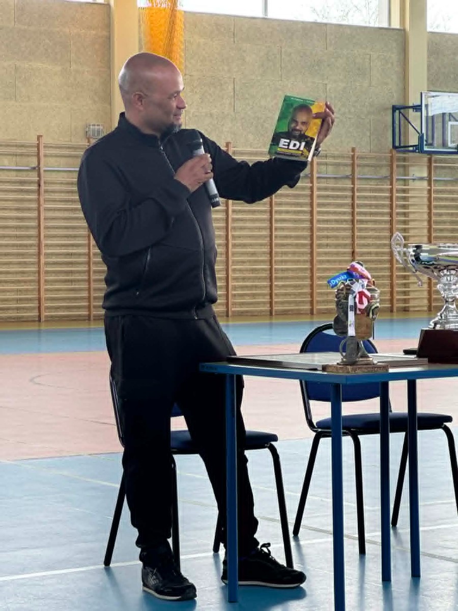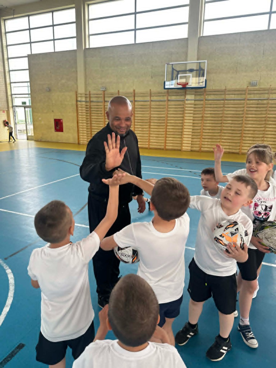 Gościem specjalnym spotkania był Pan Edi Andradina – brazylijski piłkarz grający na pozycji pomocnika i napastnika, a także trener. W Polsce występował m.in. w Pogoni Szczecin oraz Koronie Kielce. Podczas spotkania podzielił się z dziećmi swoją historią sportową, opowiadając o sukcesach oraz początkach kariery. Uczniowie mieli okazję zadawać liczne pytania, na które gość chętnie i wyczerpująco odpowiadał.