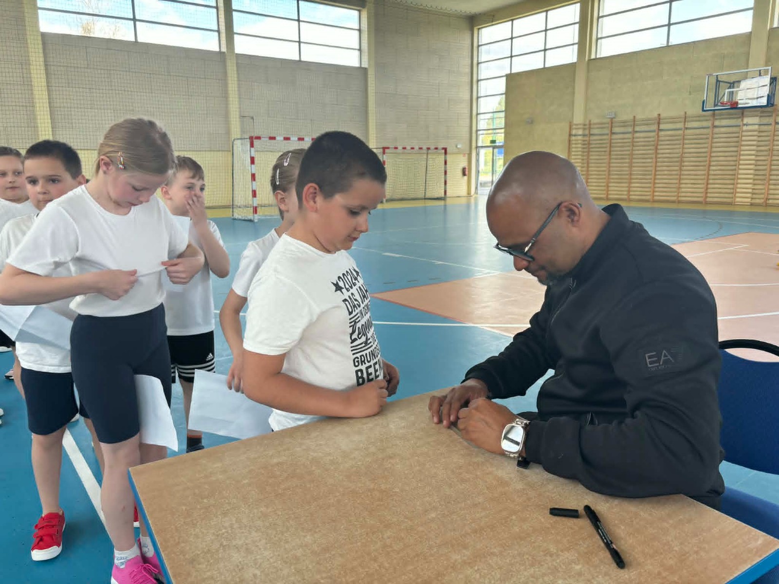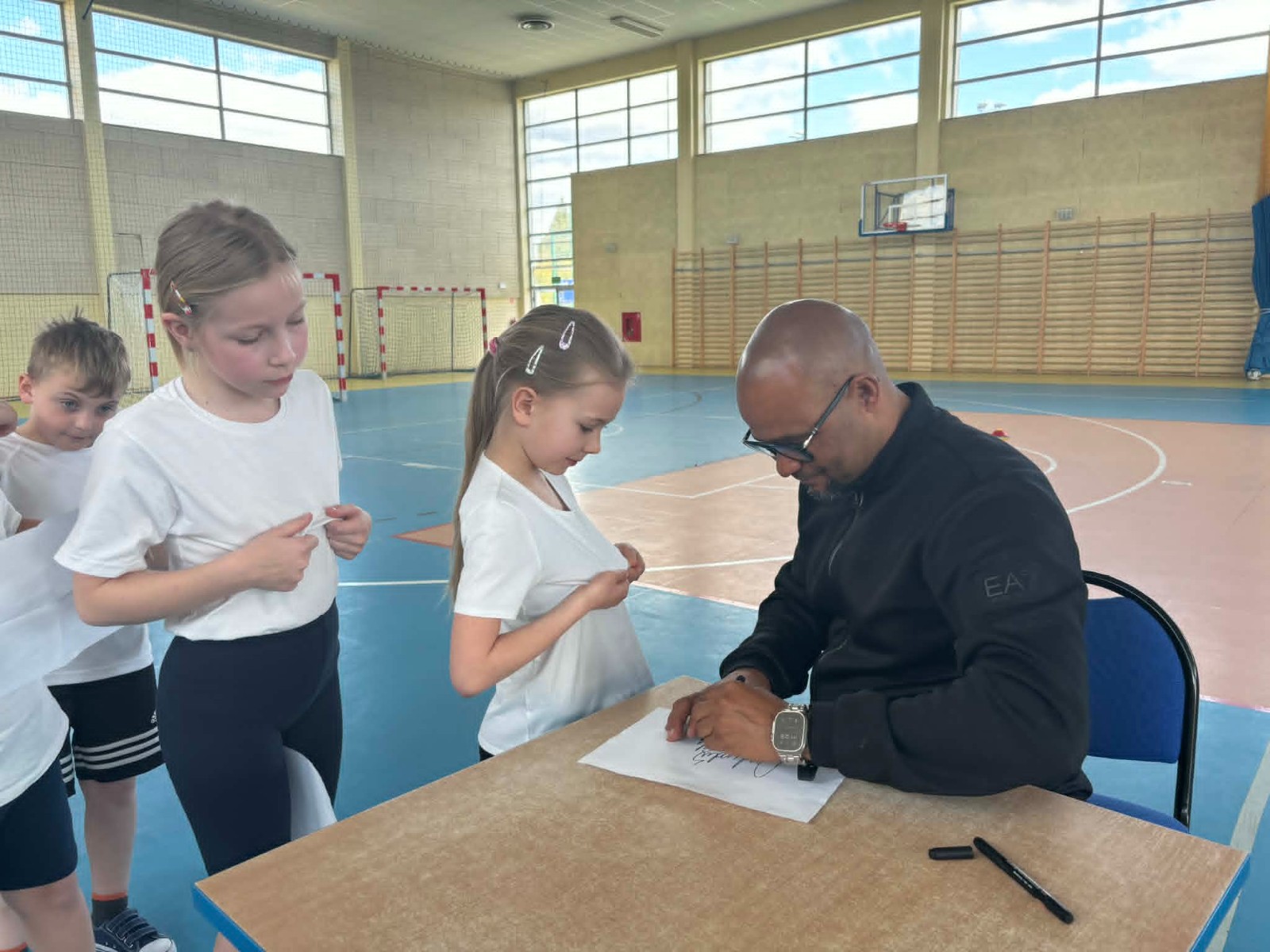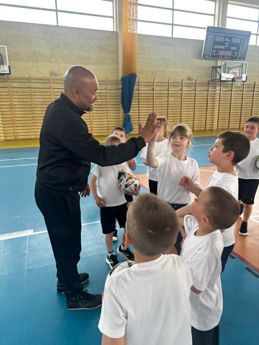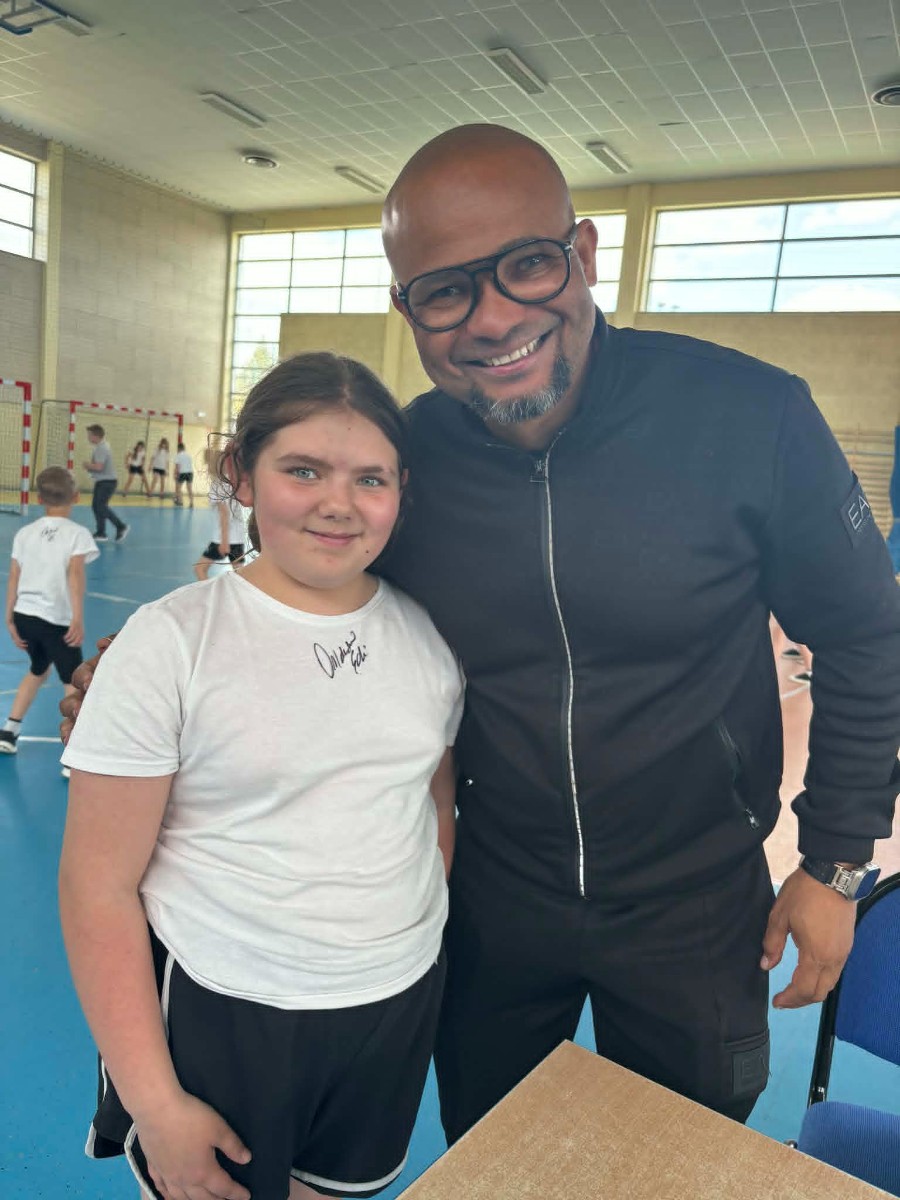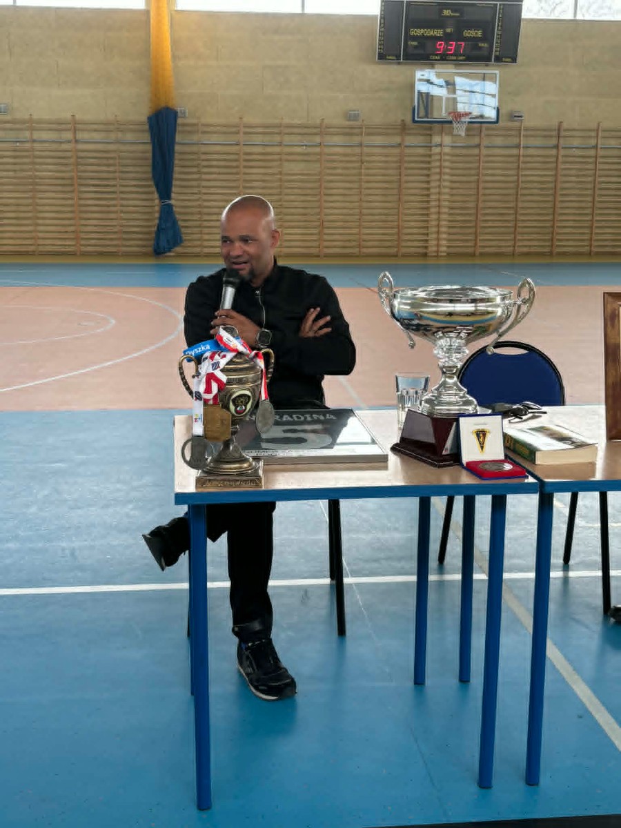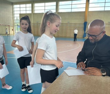 Gościem specjalnym spotkania był Pan Edi Andradina – brazylijski piłkarz grający na pozycji pomocnika i napastnika, a także trener. W Polsce występował m.in. w Pogoni Szczecin oraz Koronie Kielce. Podczas spotkania podzielił się z dziećmi swoją historią sportową, opowiadając o sukcesach oraz początkach kariery. Uczniowie mieli okazję zadawać liczne pytania, na które gość chętnie i wyczerpująco odpowiadał.