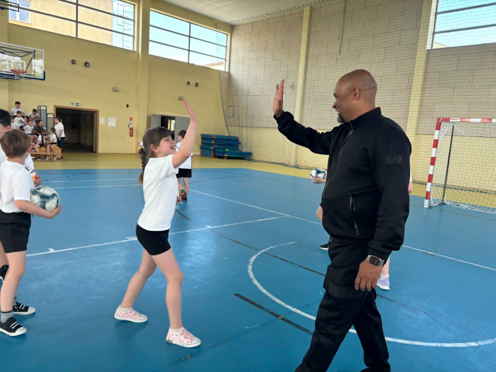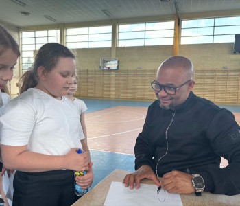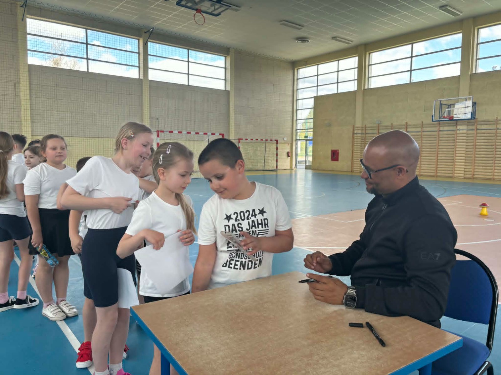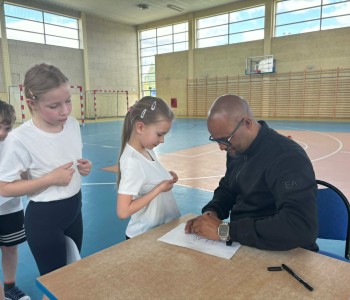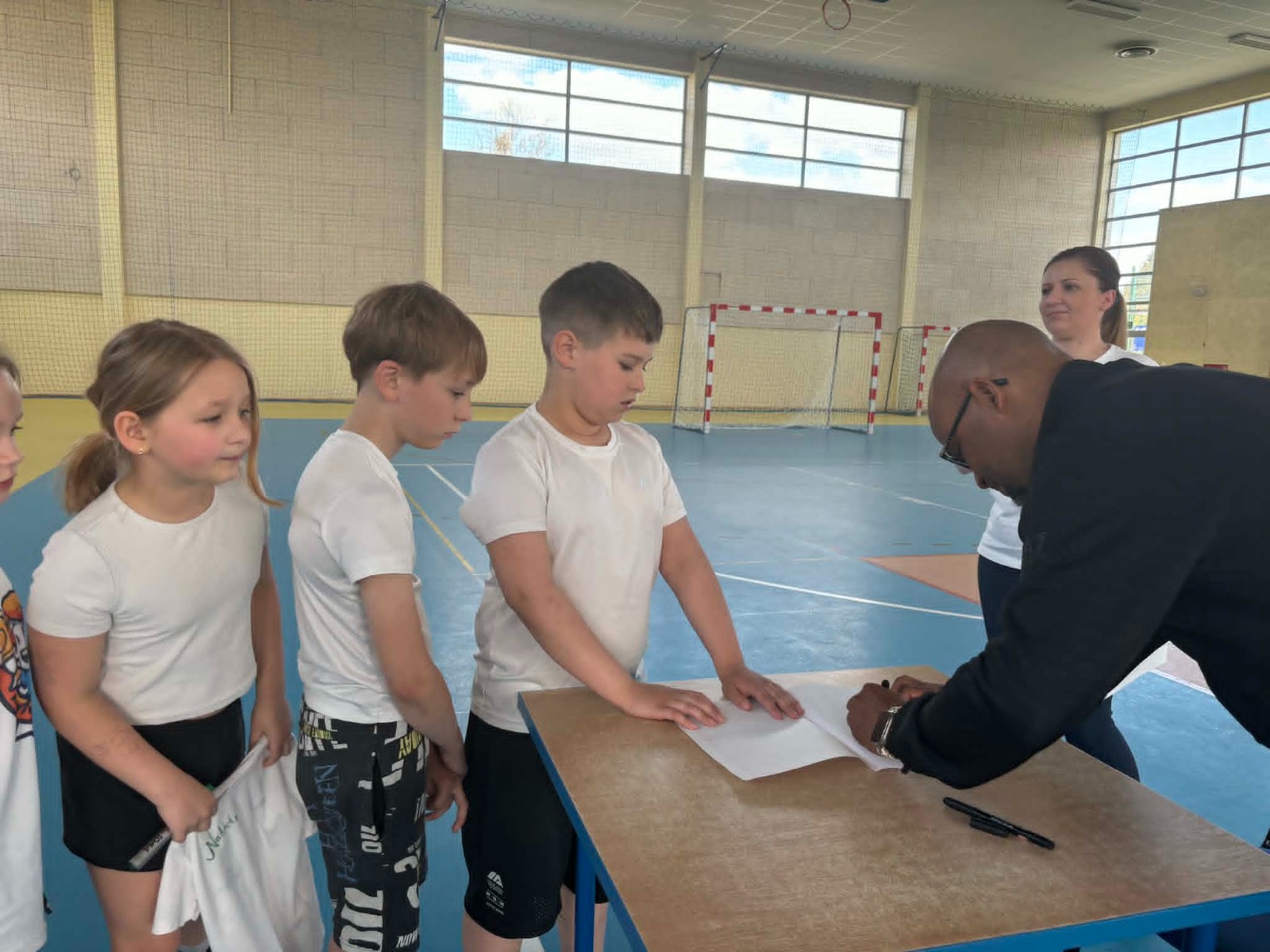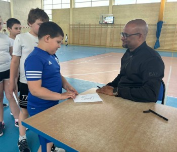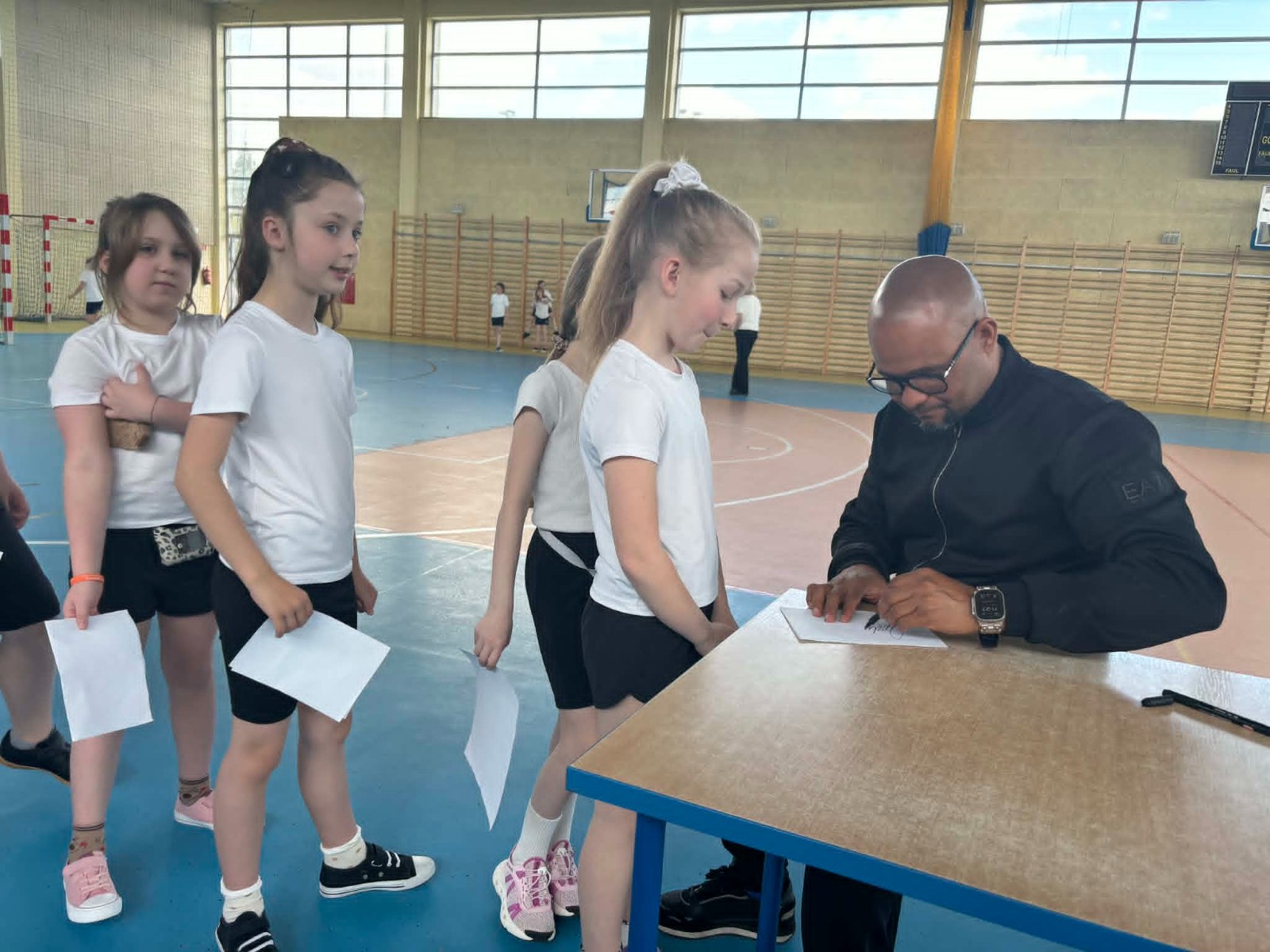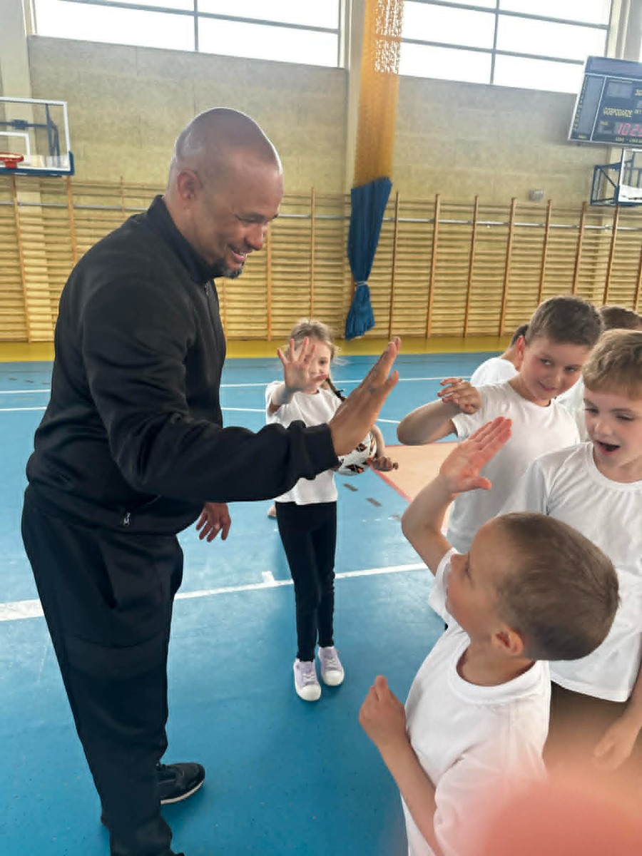 Gościem specjalnym spotkania był Pan Edi Andradina – brazylijski piłkarz grający na pozycji pomocnika i napastnika, a także trener. W Polsce występował m.in. w Pogoni Szczecin oraz Koronie Kielce. Podczas spotkania podzielił się z dziećmi swoją historią sportową, opowiadając o sukcesach oraz początkach kariery. Uczniowie mieli okazję zadawać liczne pytania, na które gość chętnie i wyczerpująco odpowiadał.