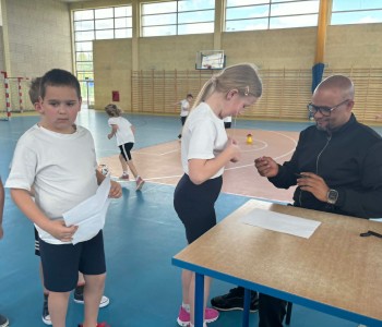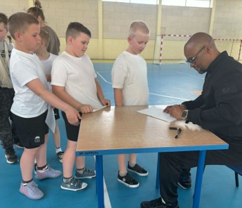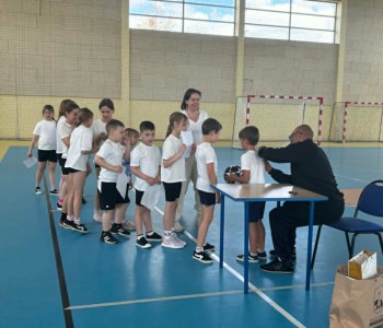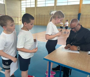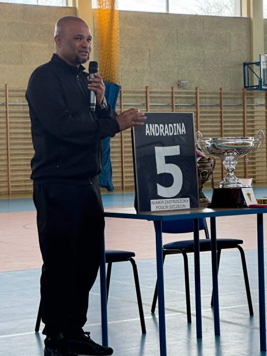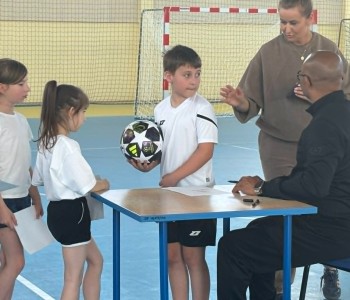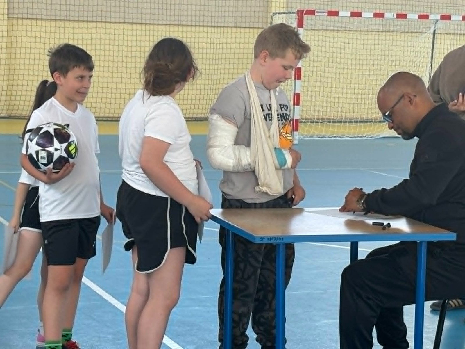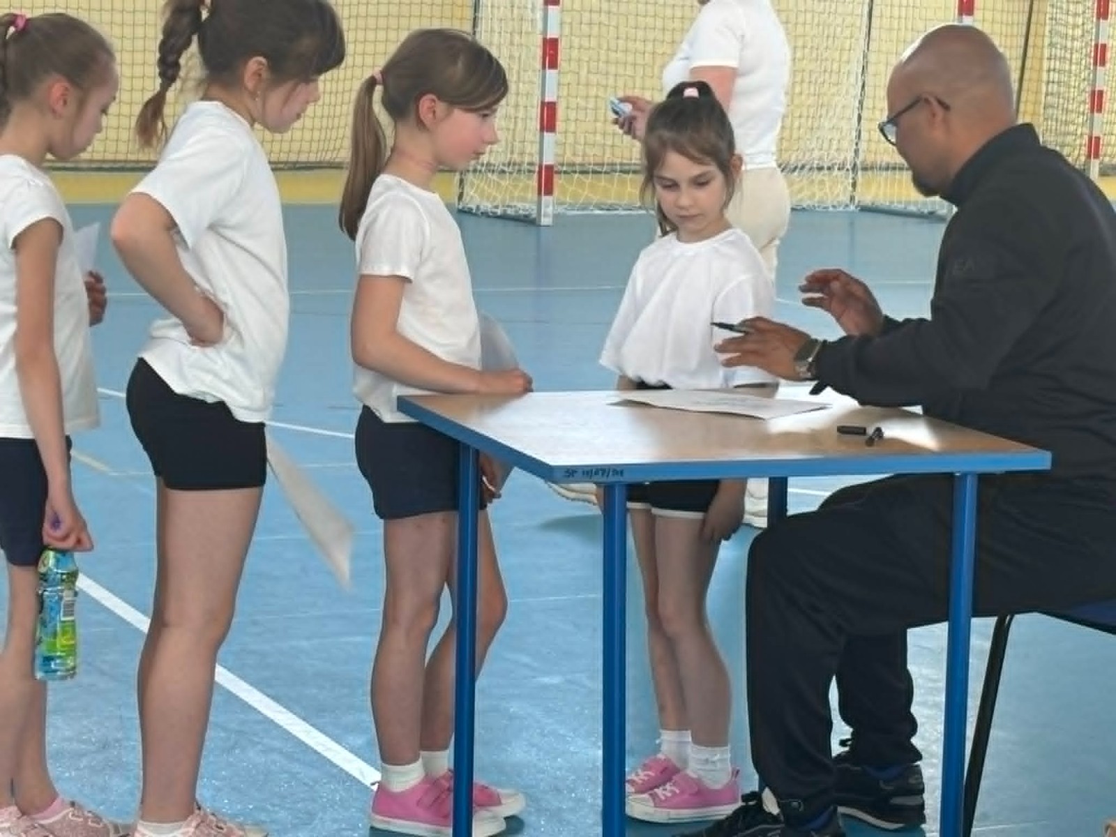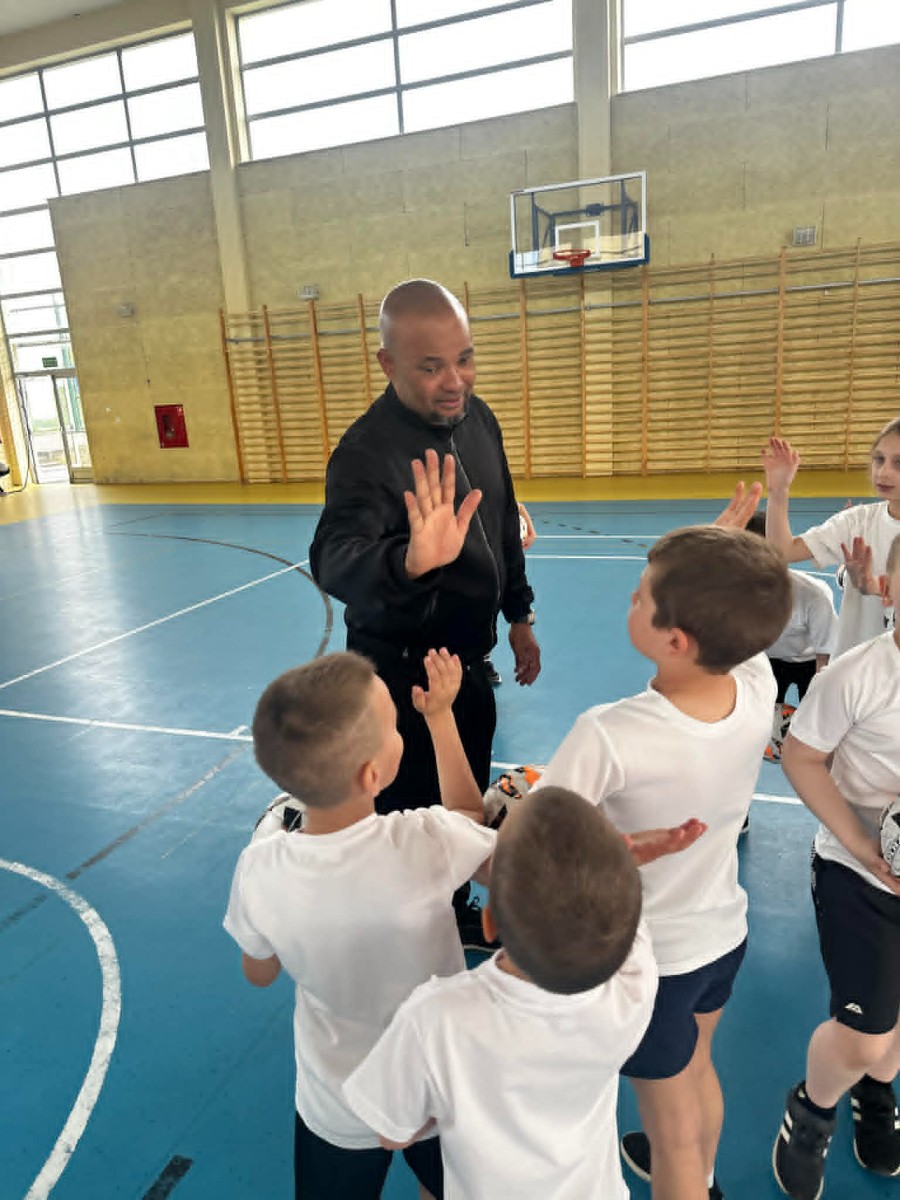 Gościem specjalnym spotkania był Pan Edi Andradina – brazylijski piłkarz grający na pozycji pomocnika i napastnika, a także trener. W Polsce występował m.in. w Pogoni Szczecin oraz Koronie Kielce. Podczas spotkania podzielił się z dziećmi swoją historią sportową, opowiadając o sukcesach oraz początkach kariery. Uczniowie mieli okazję zadawać liczne pytania, na które gość chętnie i wyczerpująco odpowiadał.