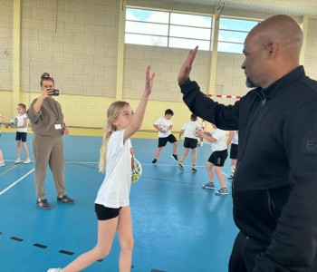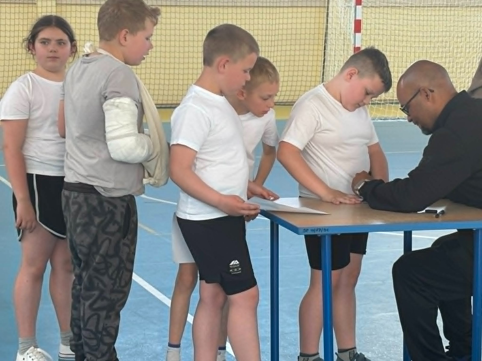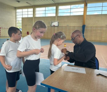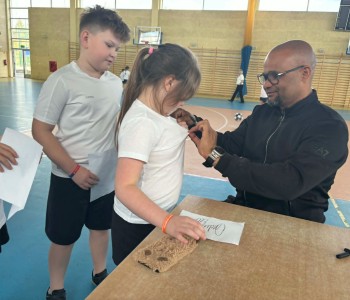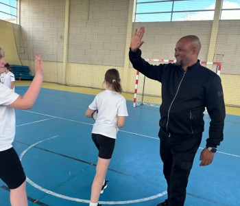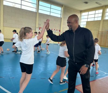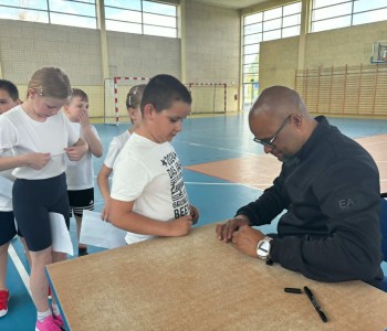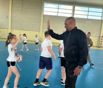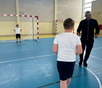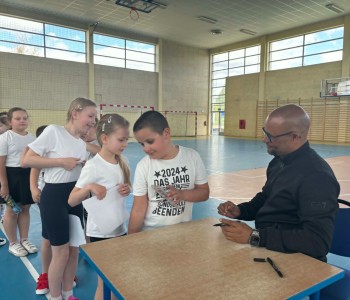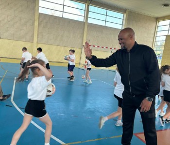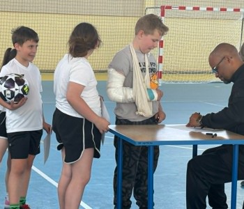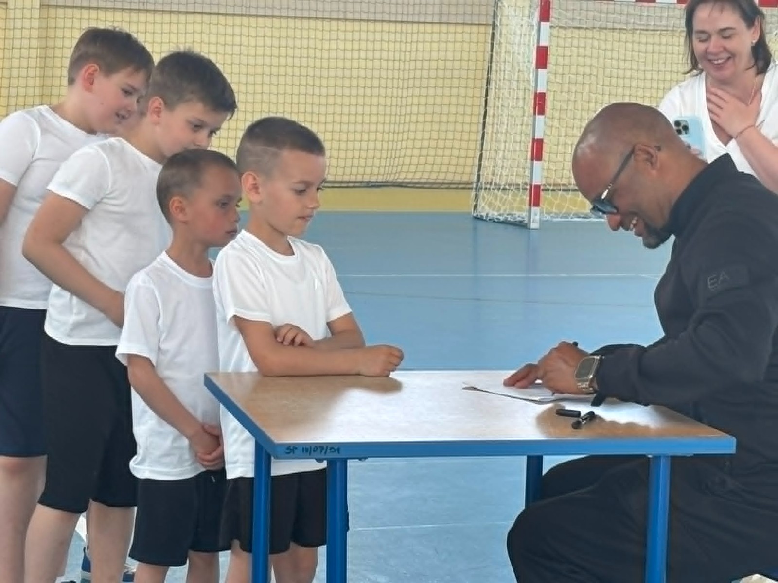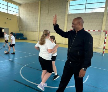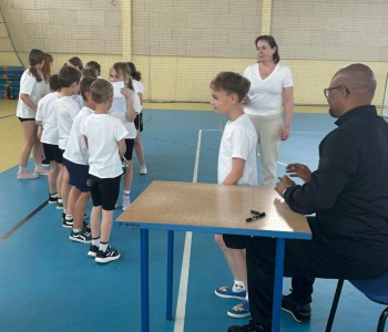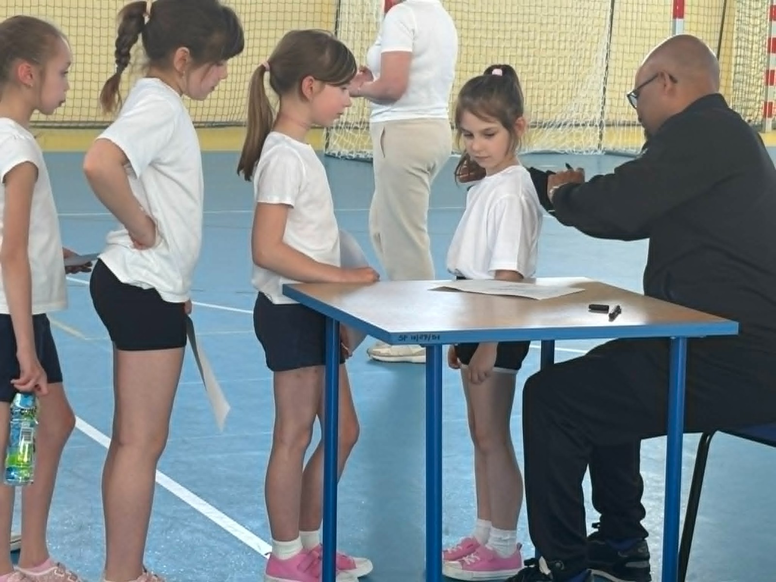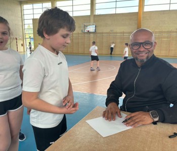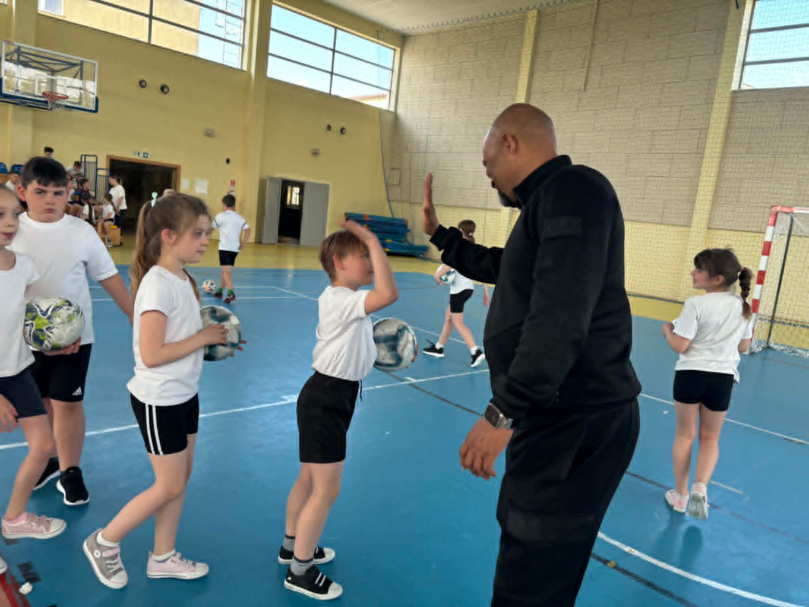 Gościem specjalnym spotkania był Pan Edi Andradina – brazylijski piłkarz grający na pozycji pomocnika i napastnika, a także trener. W Polsce występował m.in. w Pogoni Szczecin oraz Koronie Kielce. Podczas spotkania podzielił się z dziećmi swoją historią sportową, opowiadając o sukcesach oraz początkach kariery. Uczniowie mieli okazję zadawać liczne pytania, na które gość chętnie i wyczerpująco odpowiadał.
