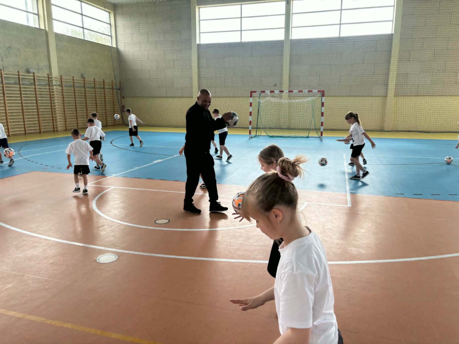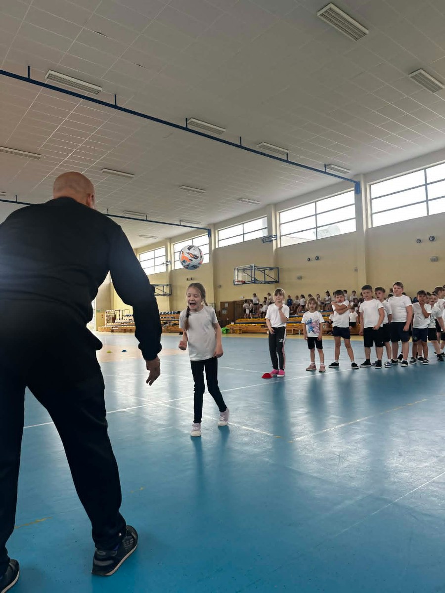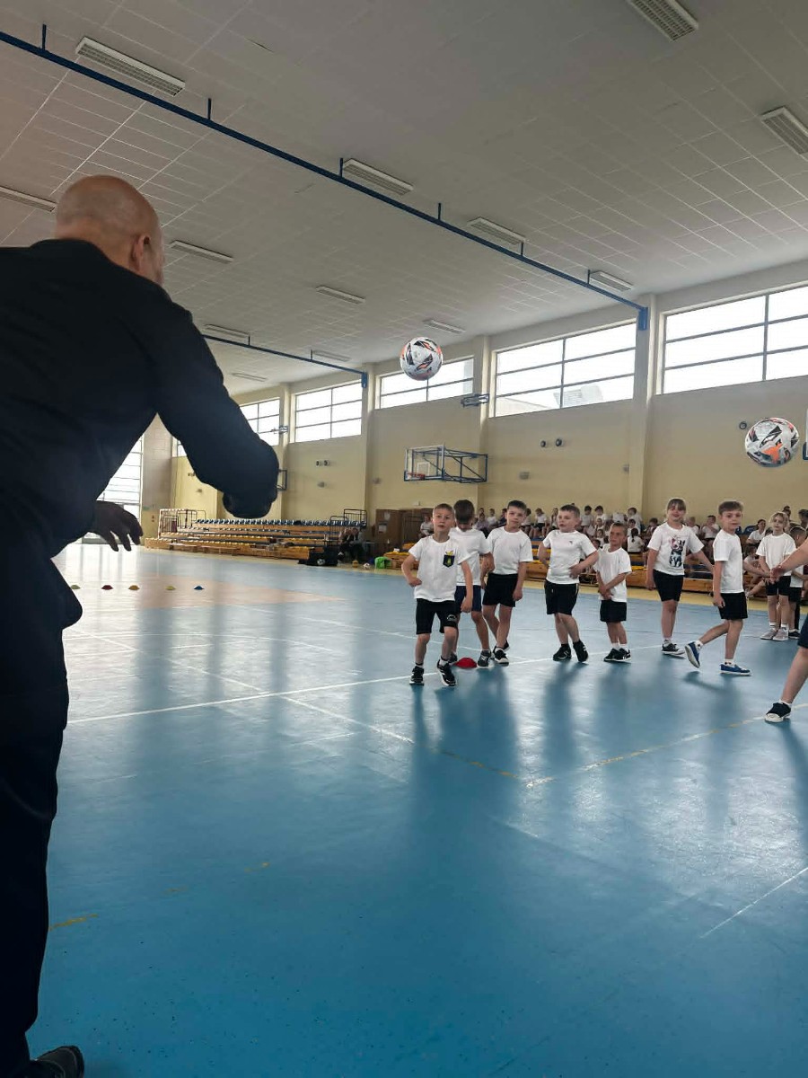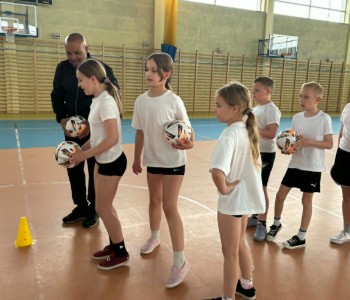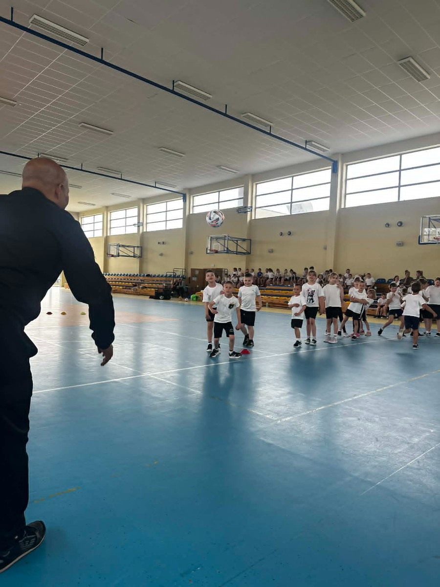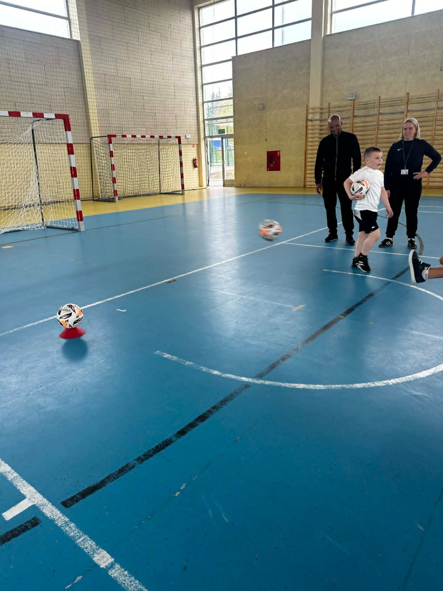 Po części teoretycznej Pan Edi przeprowadził z każdą grupą krótką lekcję piłki nożnej. Zajęcia cieszyły się ogromnym zainteresowaniem oraz zaangażowaniem dzieci, które z entuzjazmem uczestniczyły w ćwiczeniach.