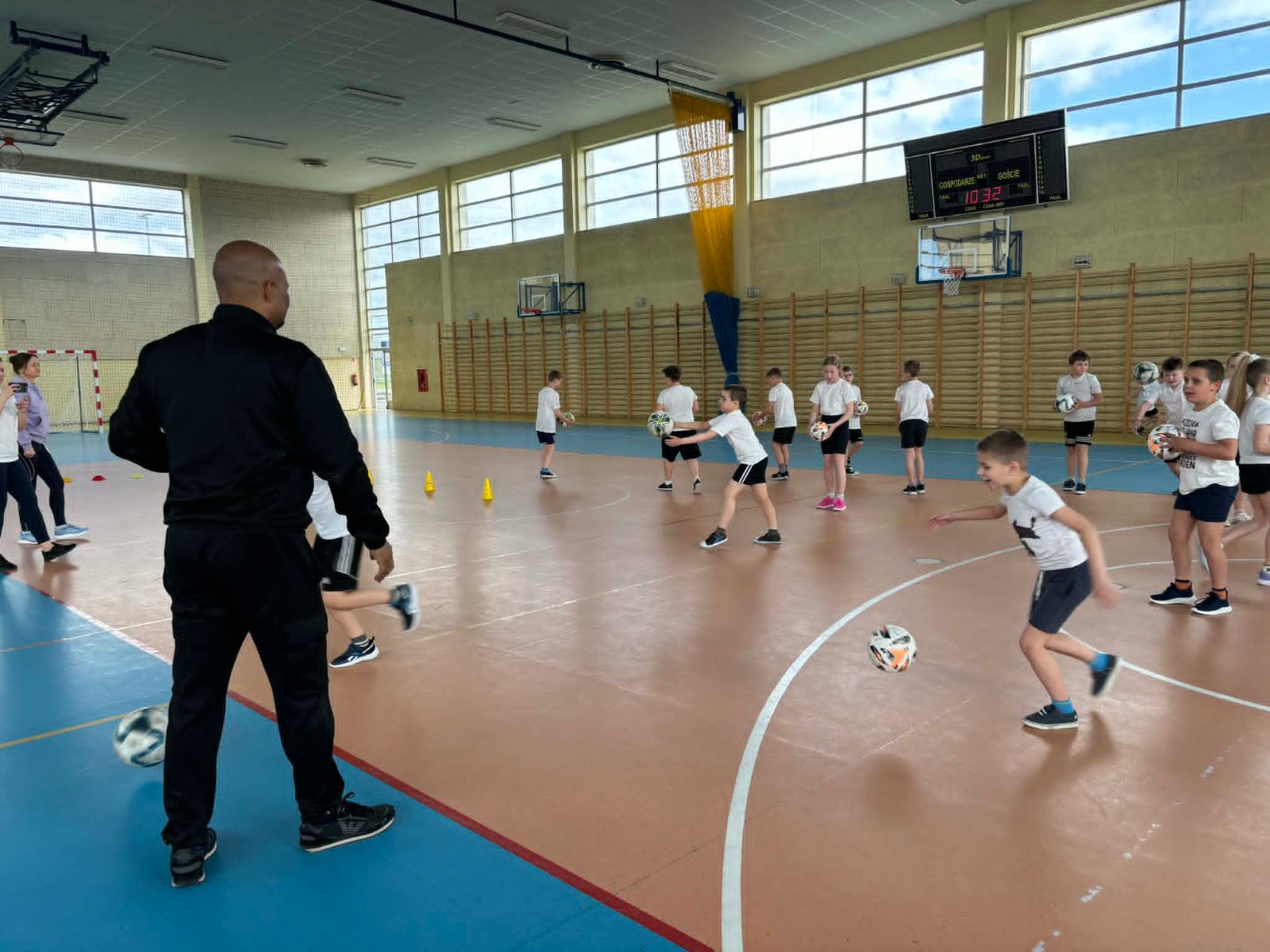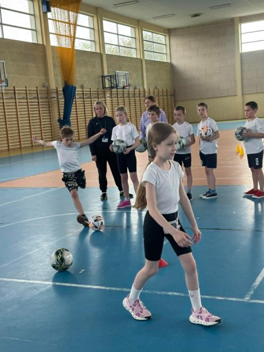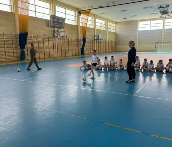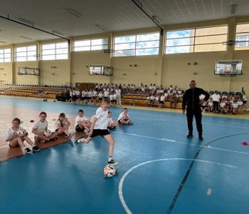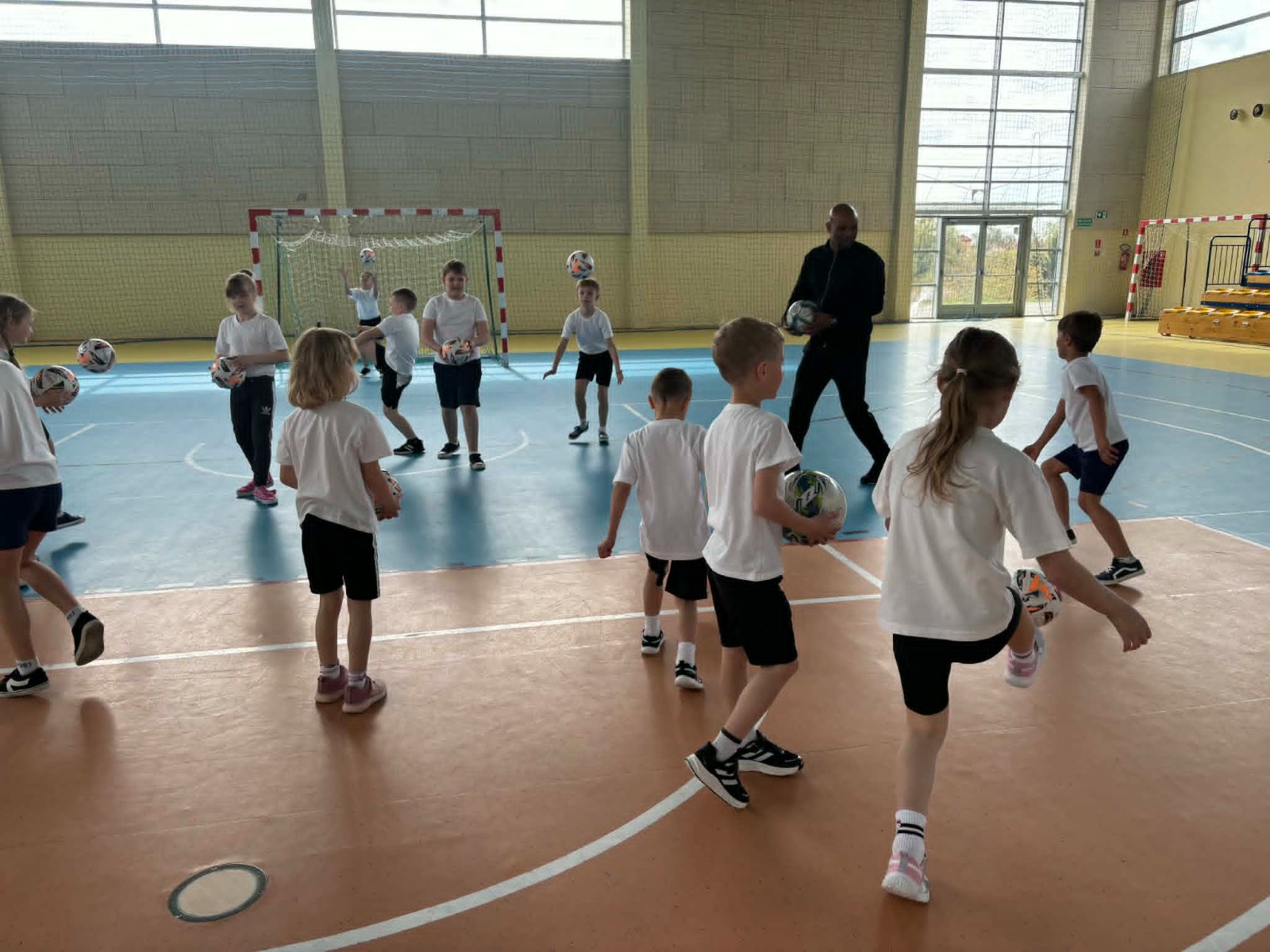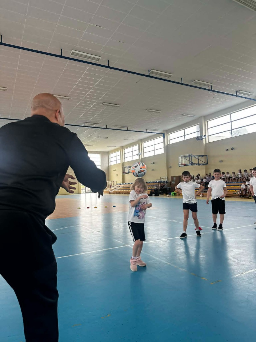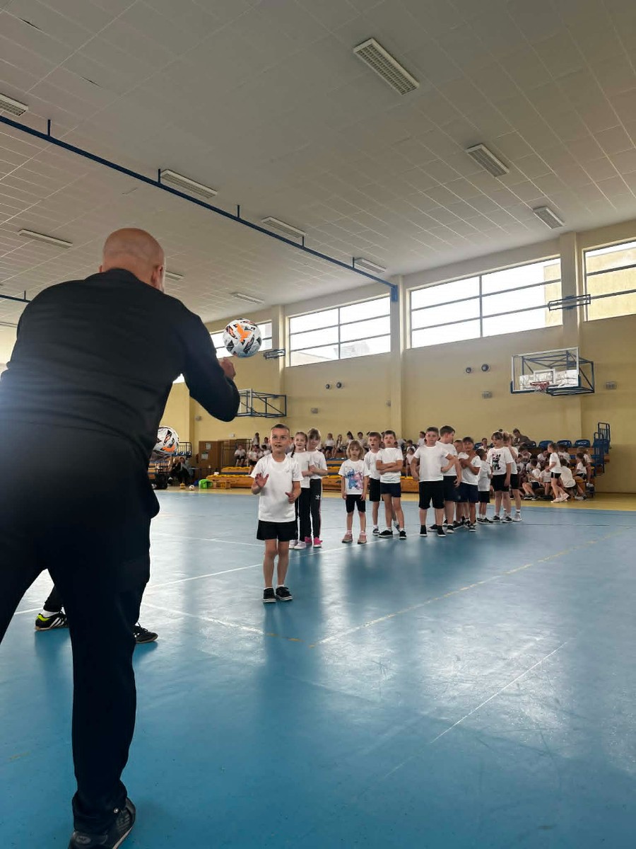Po części teoretycznej Pan Edi przeprowadził z każdą grupą krótką lekcję piłki nożnej. Zajęcia cieszyły się ogromnym zainteresowaniem oraz zaangażowaniem dzieci, które z entuzjazmem uczestniczyły w ćwiczeniach.