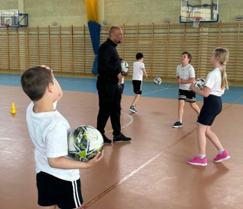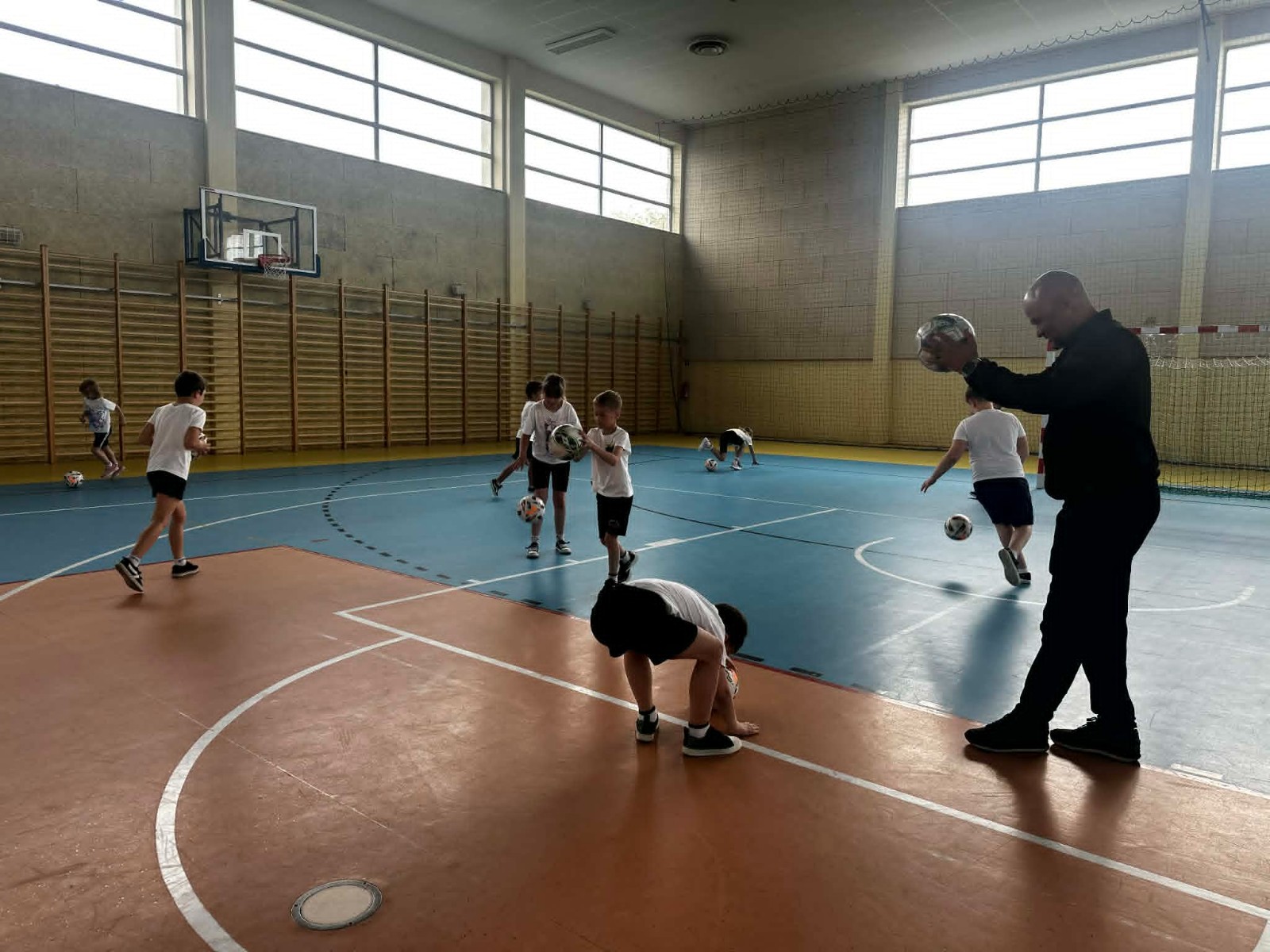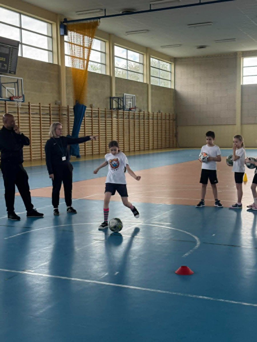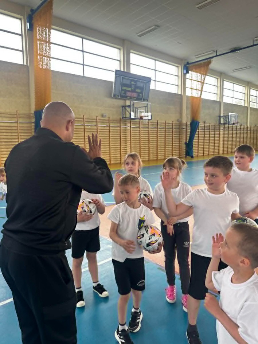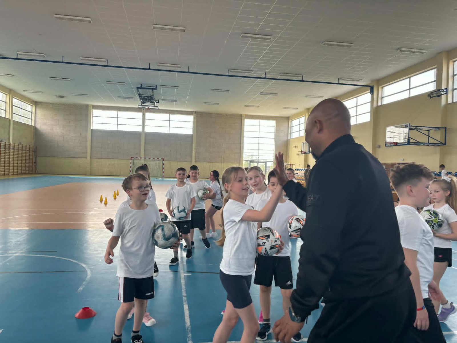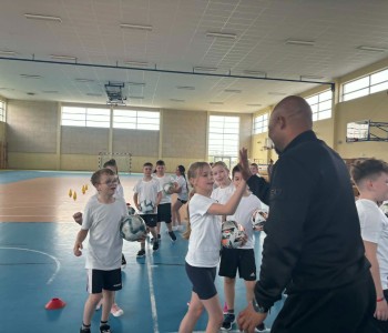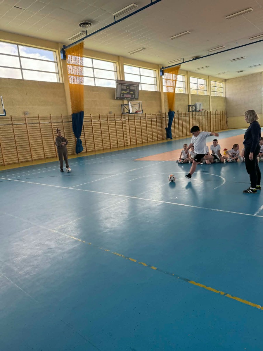 Po części teoretycznej Pan Edi przeprowadził z każdą grupą krótką lekcję piłki nożnej. Zajęcia cieszyły się ogromnym zainteresowaniem oraz zaangażowaniem dzieci, które z entuzjazmem uczestniczyły w ćwiczeniach.