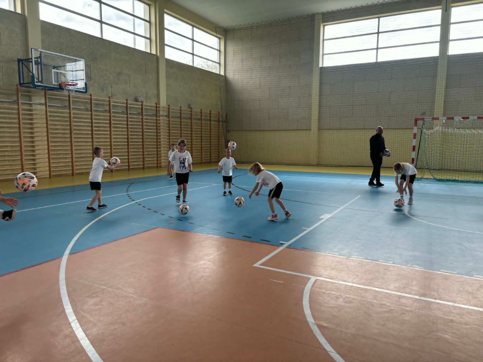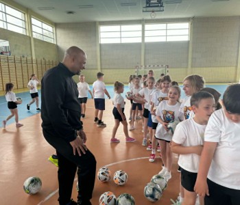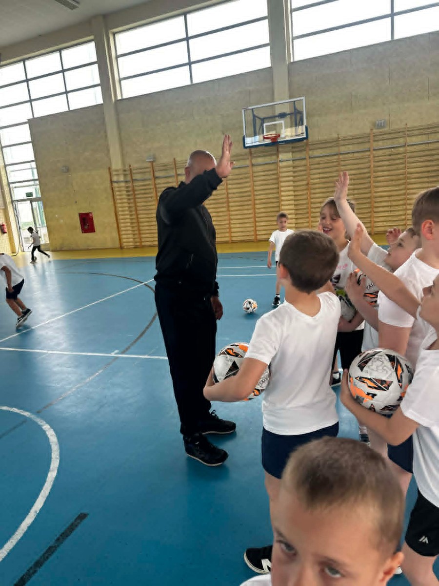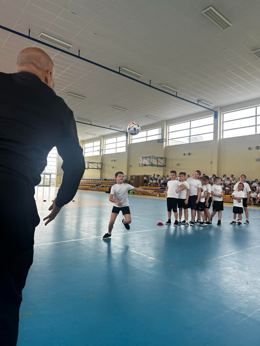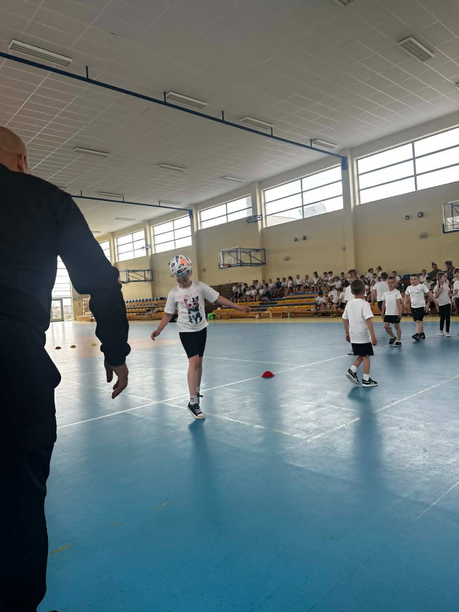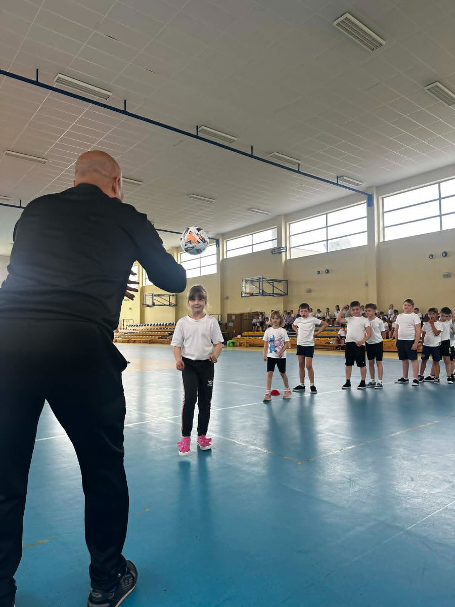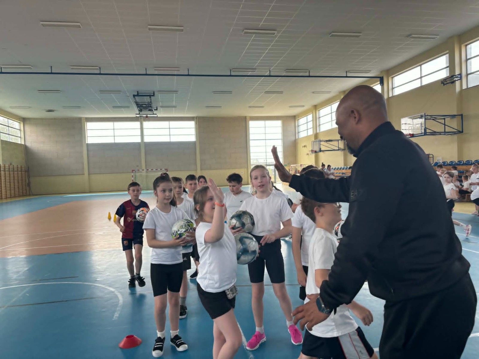 Po części teoretycznej Pan Edi przeprowadził z każdą grupą krótką lekcję piłki nożnej. Zajęcia cieszyły się ogromnym zainteresowaniem oraz zaangażowaniem dzieci, które z entuzjazmem uczestniczyły w ćwiczeniach.
