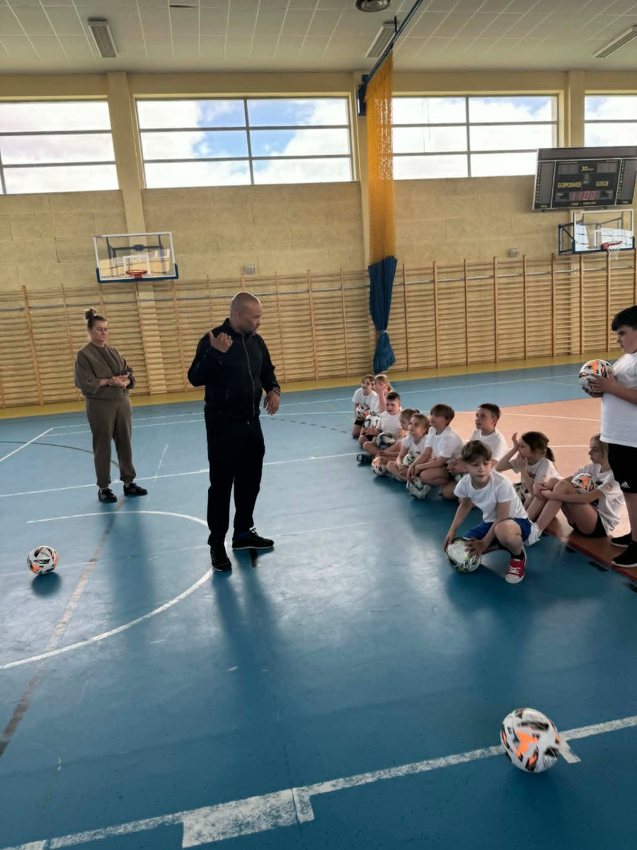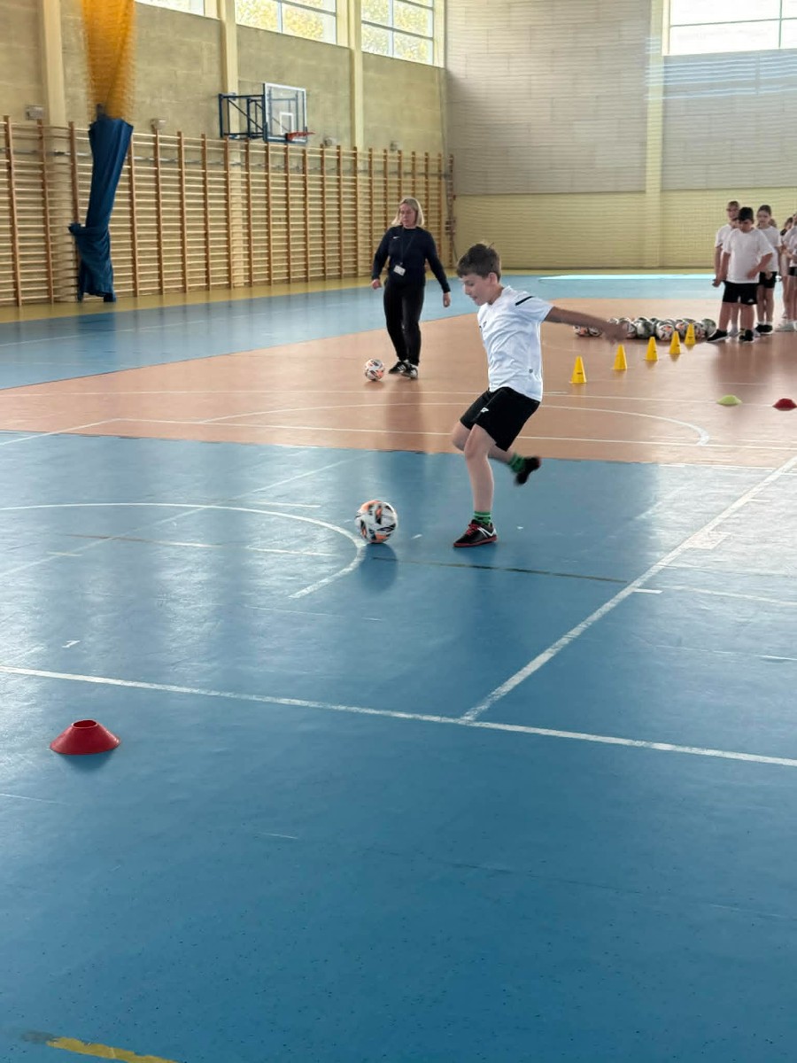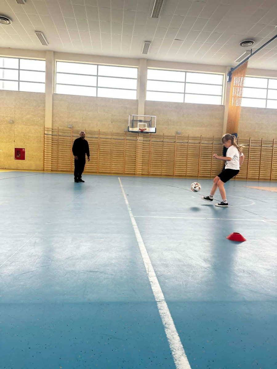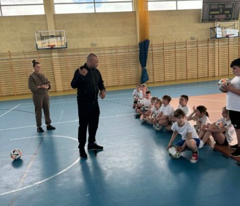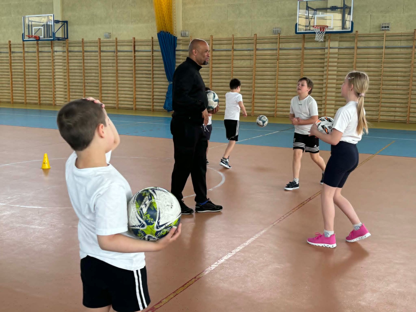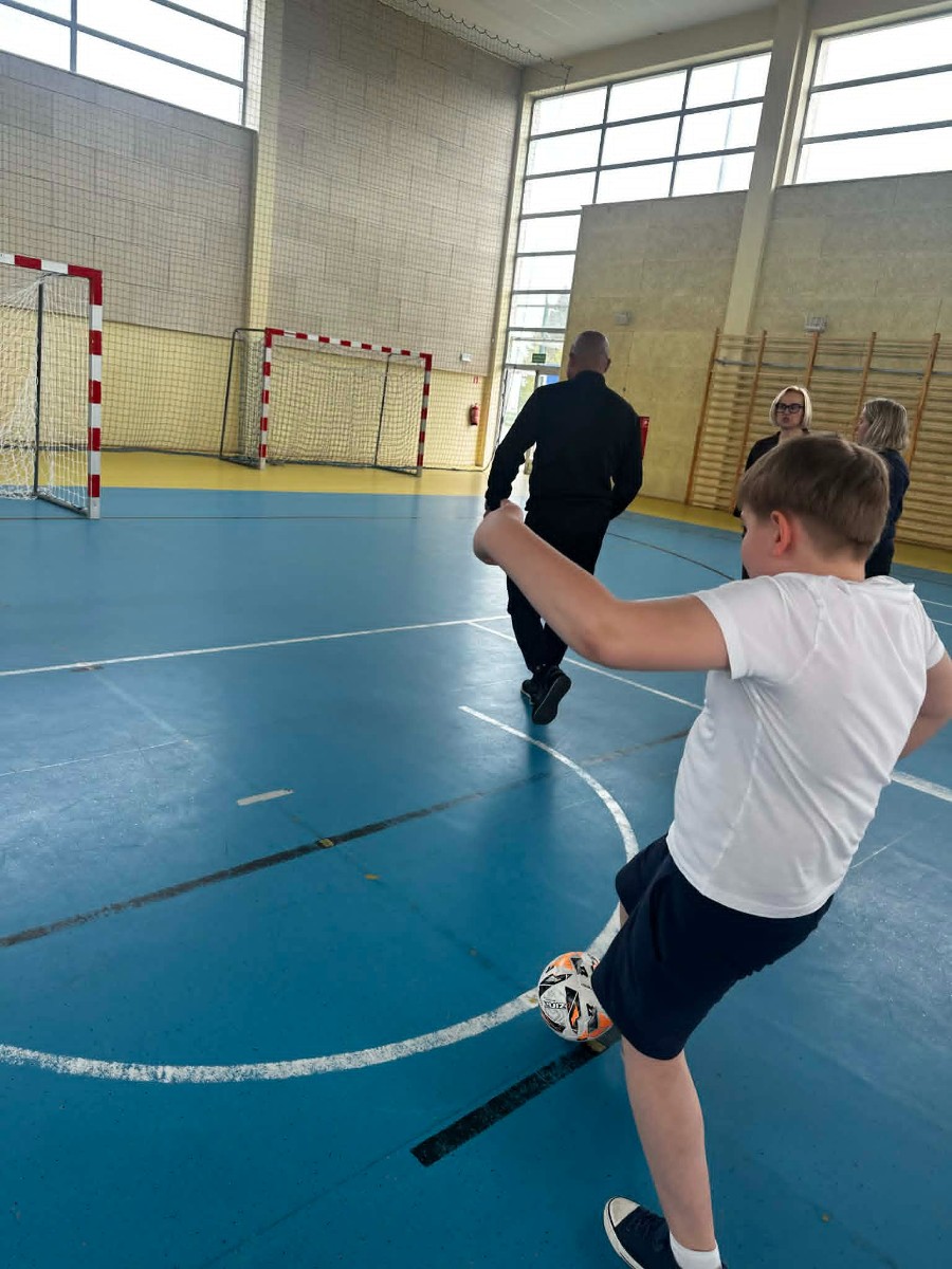 Po części teoretycznej Pan Edi przeprowadził z każdą grupą krótką lekcję piłki nożnej. Zajęcia cieszyły się ogromnym zainteresowaniem oraz zaangażowaniem dzieci, które z entuzjazmem uczestniczyły w ćwiczeniach.