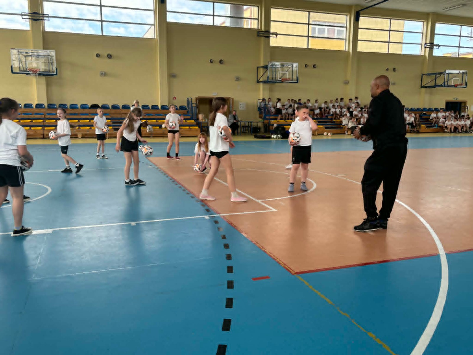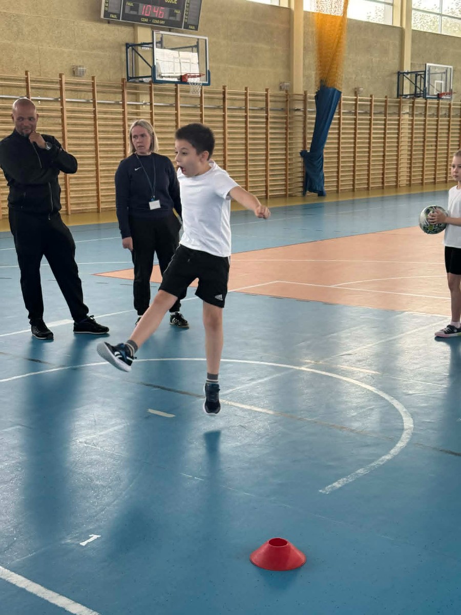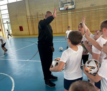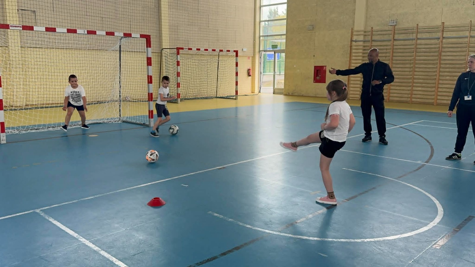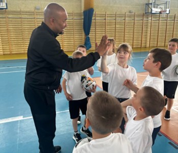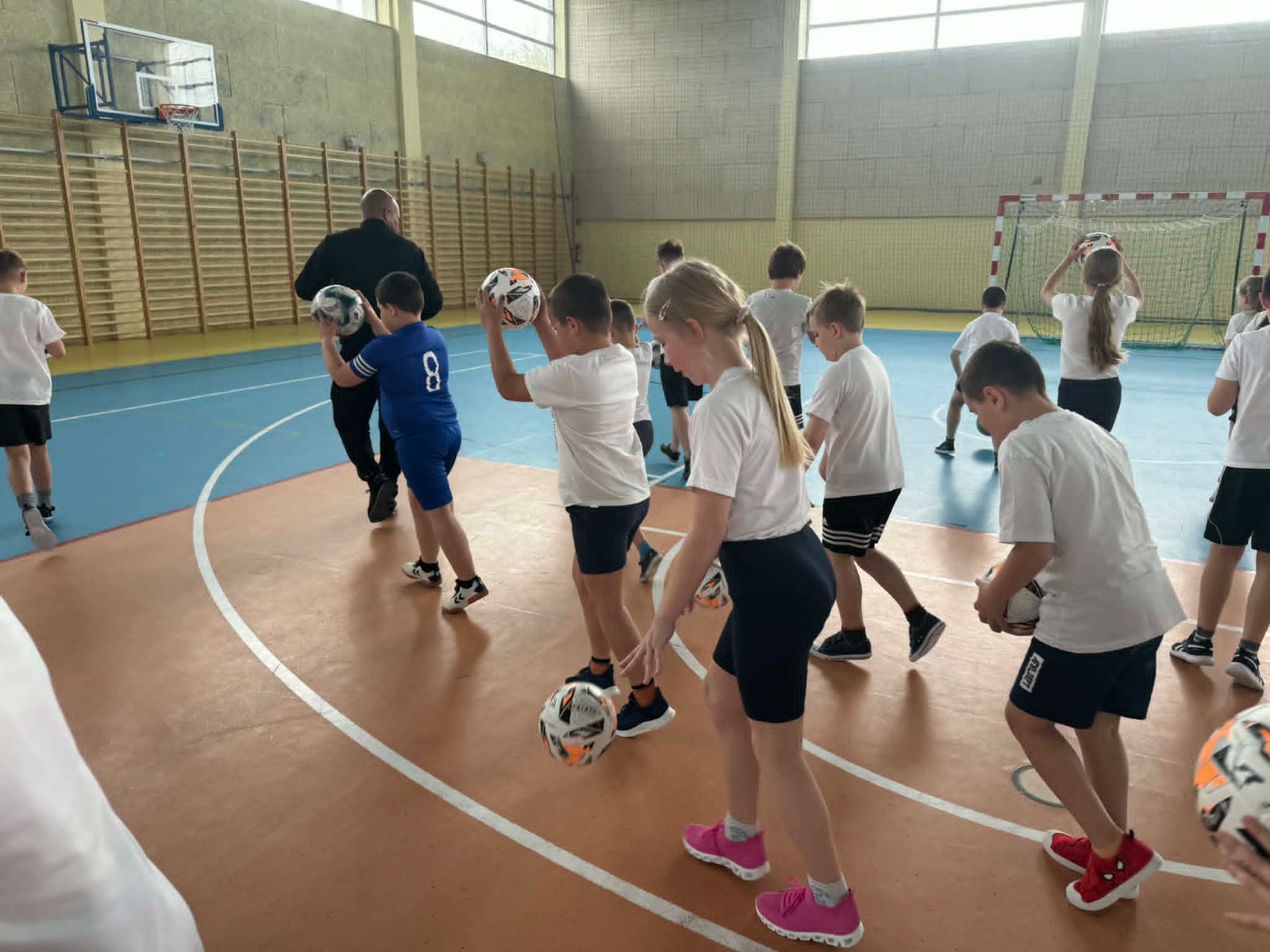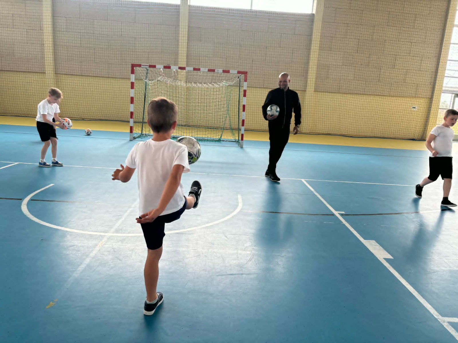 Po części teoretycznej Pan Edi przeprowadził z każdą grupą krótką lekcję piłki nożnej. Zajęcia cieszyły się ogromnym zainteresowaniem oraz zaangażowaniem dzieci, które z entuzjazmem uczestniczyły w ćwiczeniach.