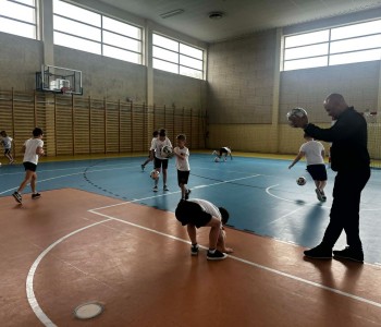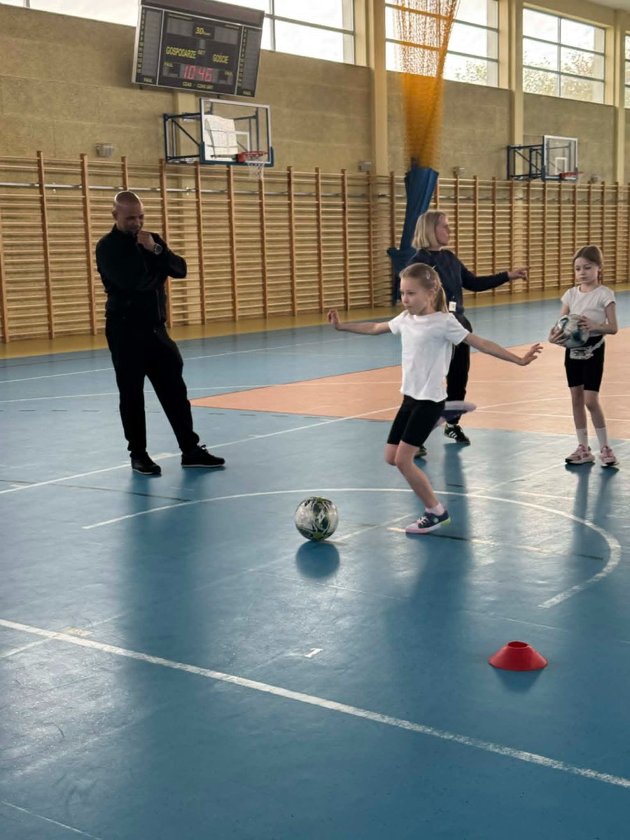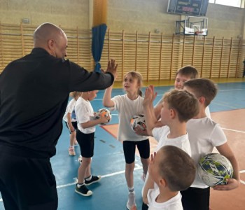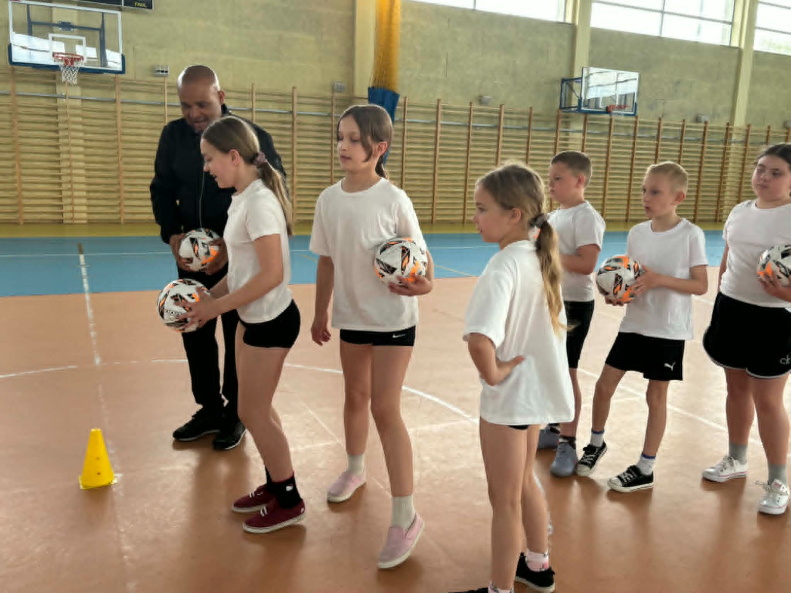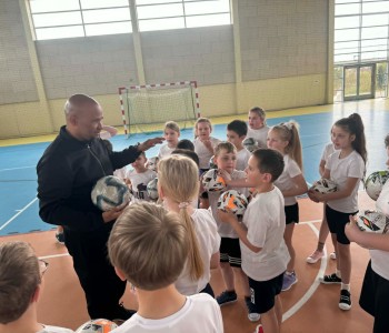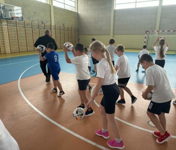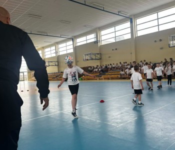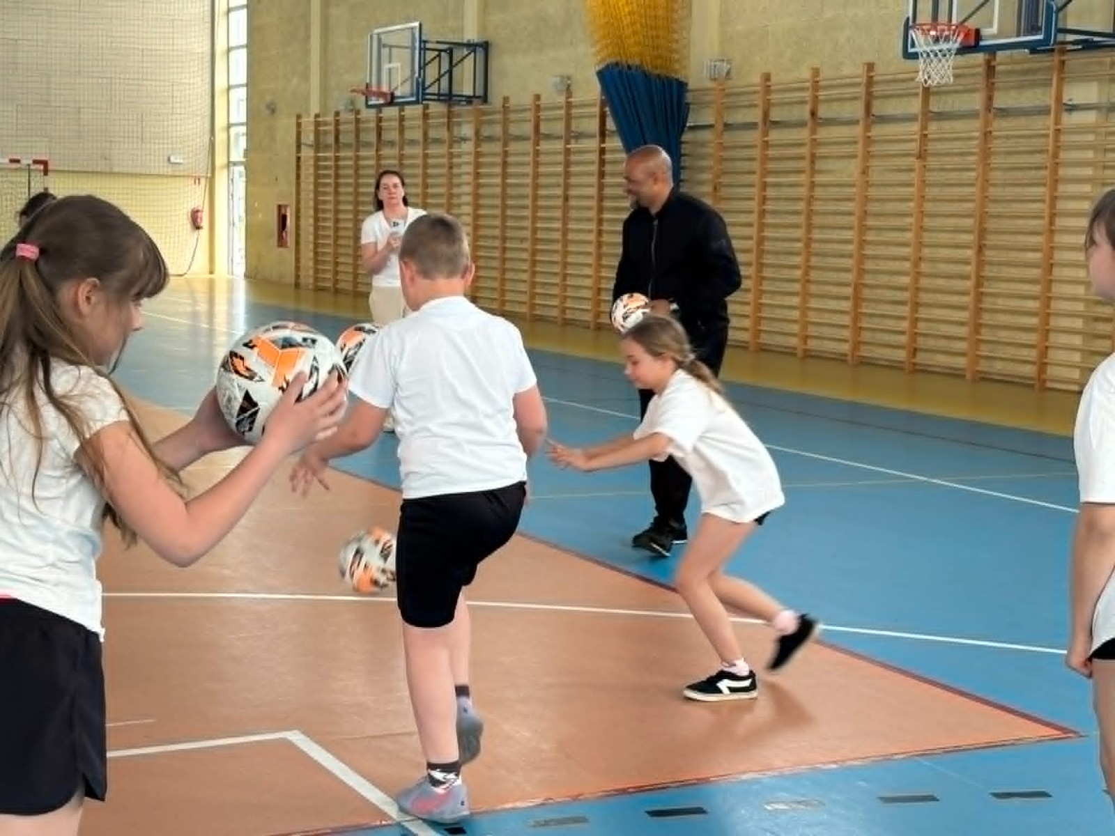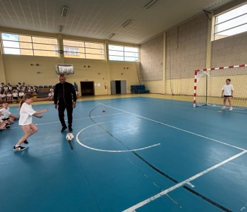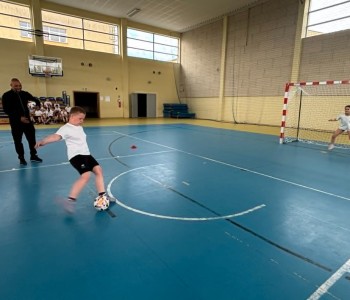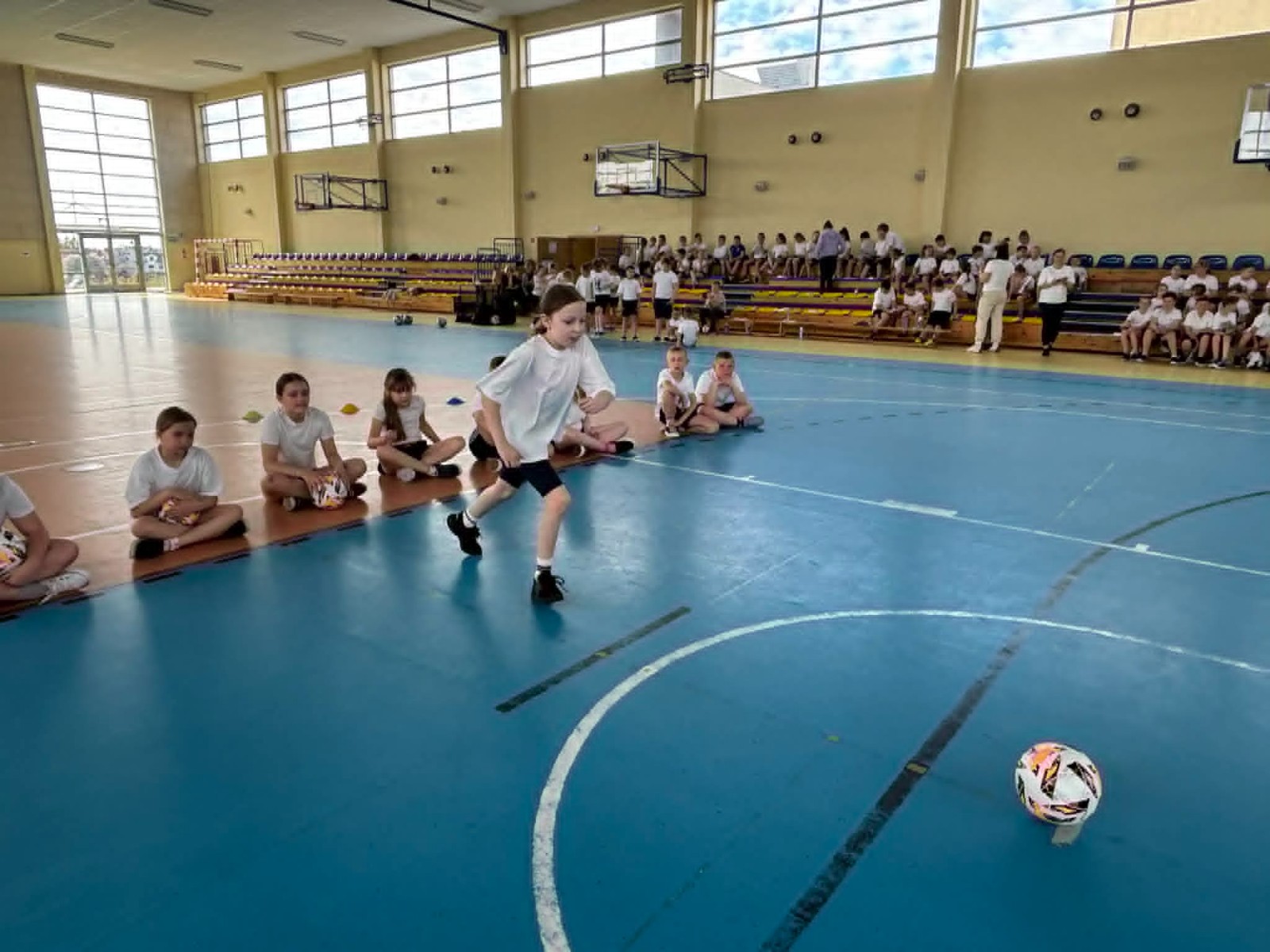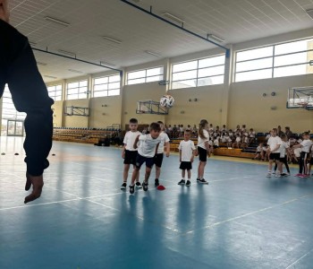 Po części teoretycznej Pan Edi przeprowadził z każdą grupą krótką lekcję piłki nożnej. Zajęcia cieszyły się ogromnym zainteresowaniem oraz zaangażowaniem dzieci, które z entuzjazmem uczestniczyły w ćwiczeniach.