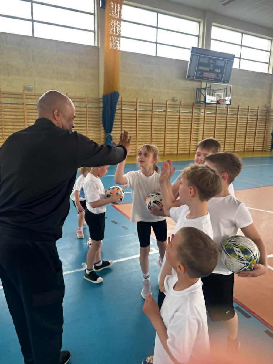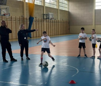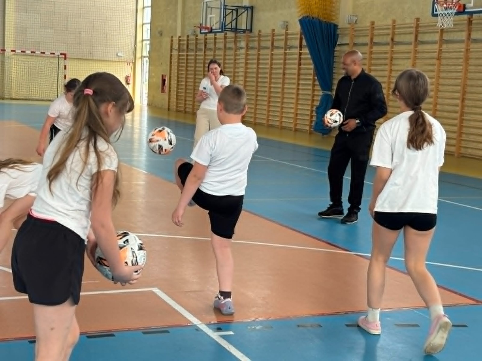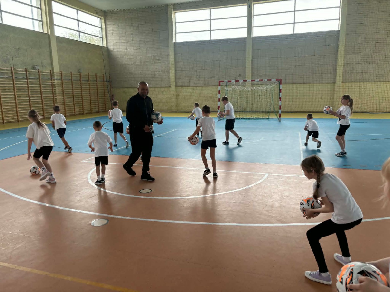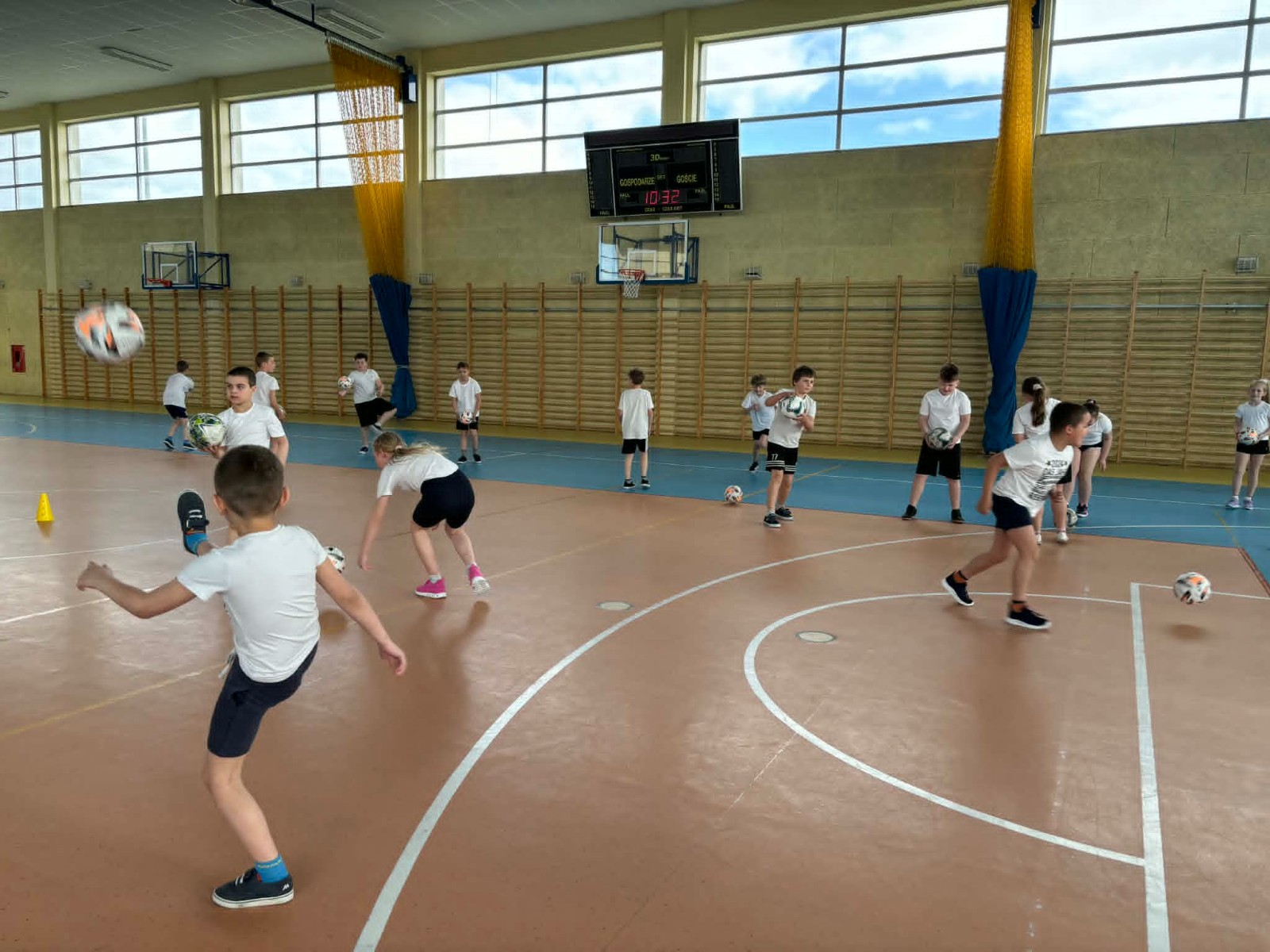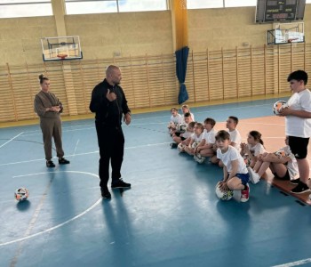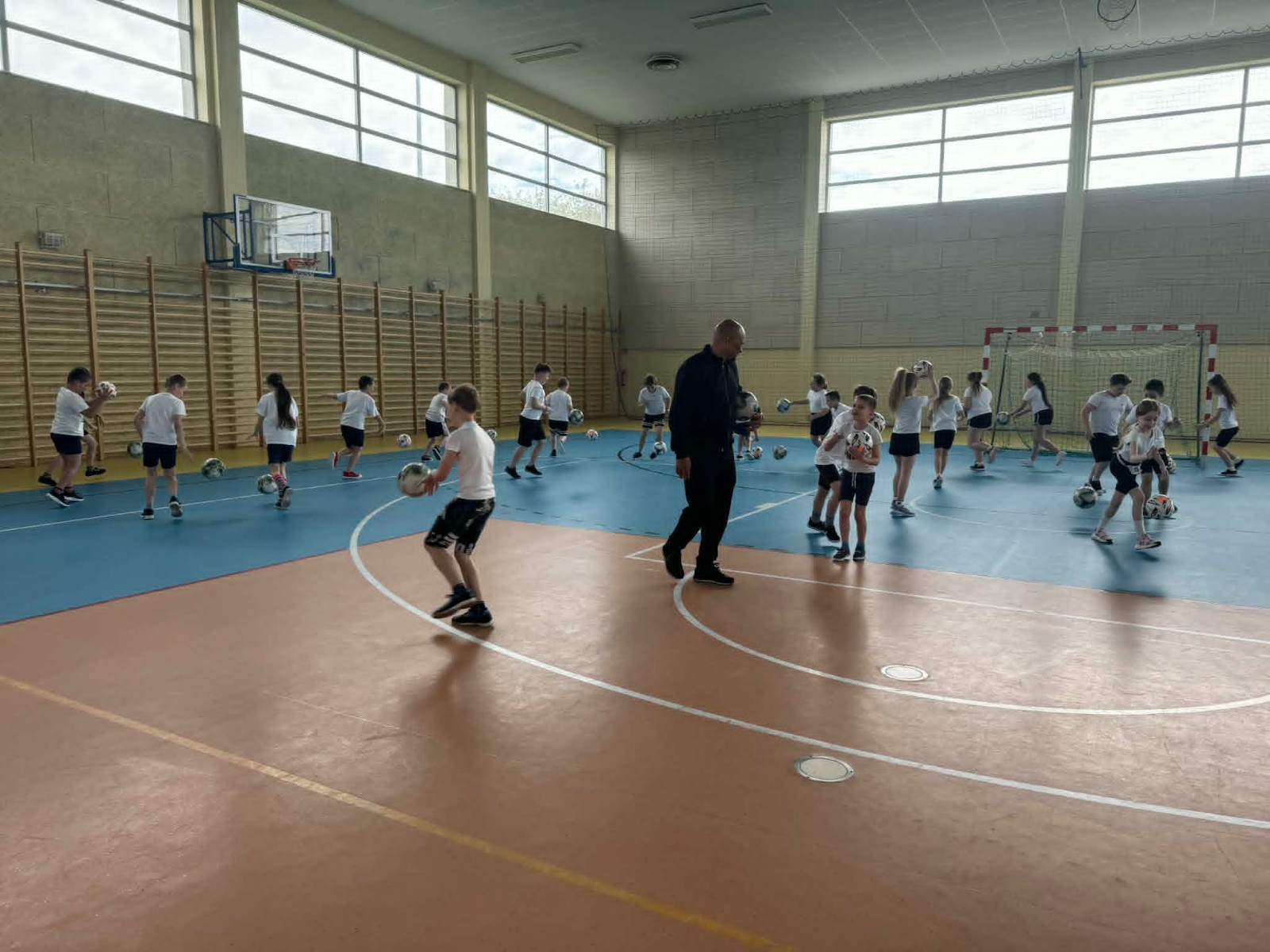 Po części teoretycznej Pan Edi przeprowadził z każdą grupą krótką lekcję piłki nożnej. Zajęcia cieszyły się ogromnym zainteresowaniem oraz zaangażowaniem dzieci, które z entuzjazmem uczestniczyły w ćwiczeniach.