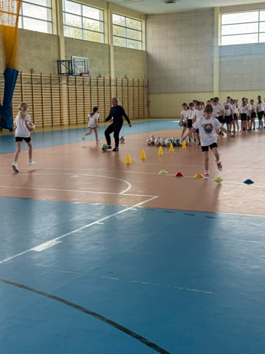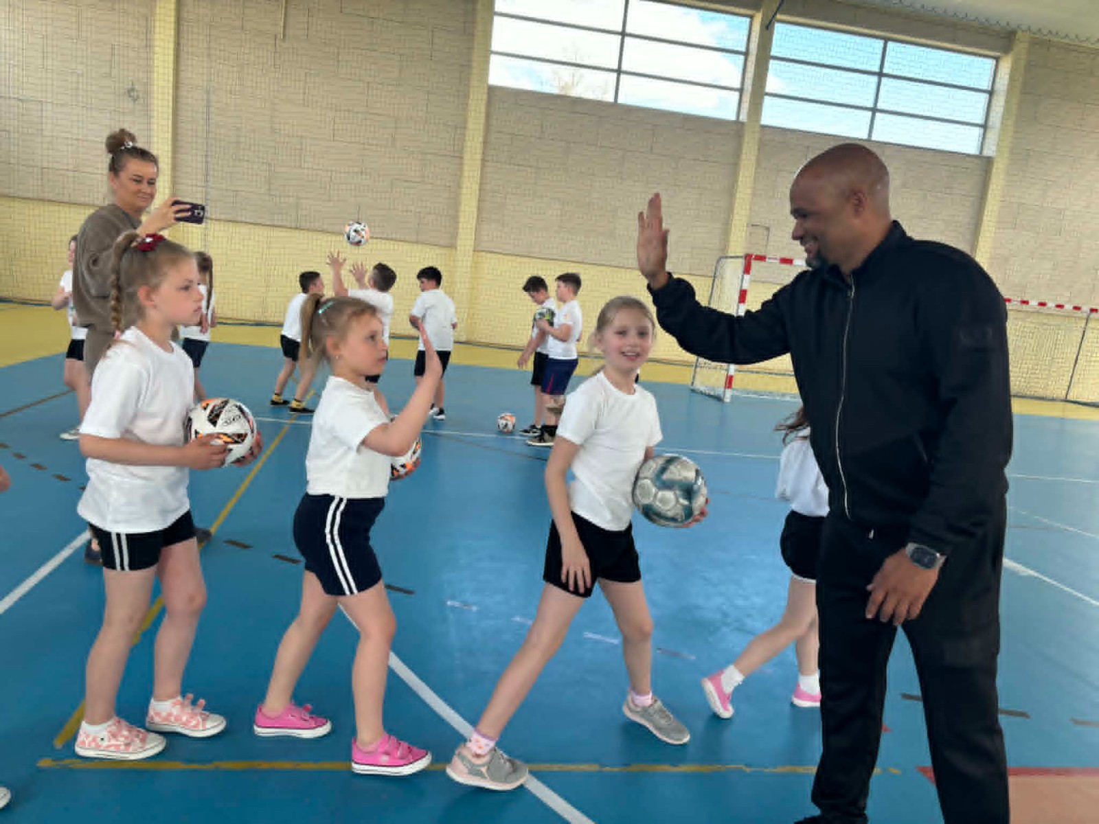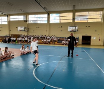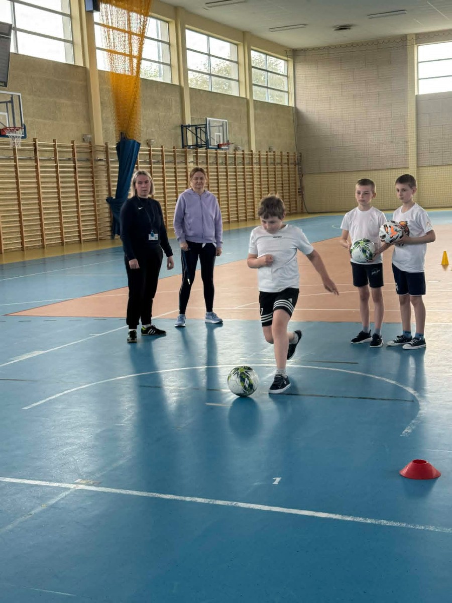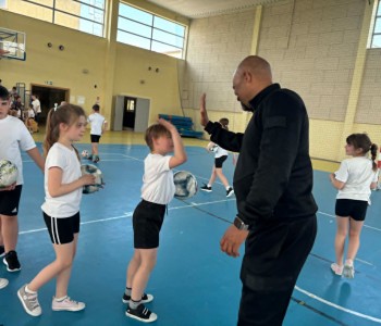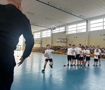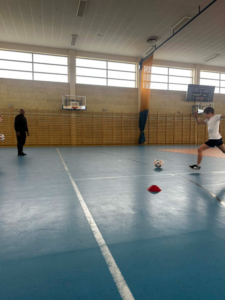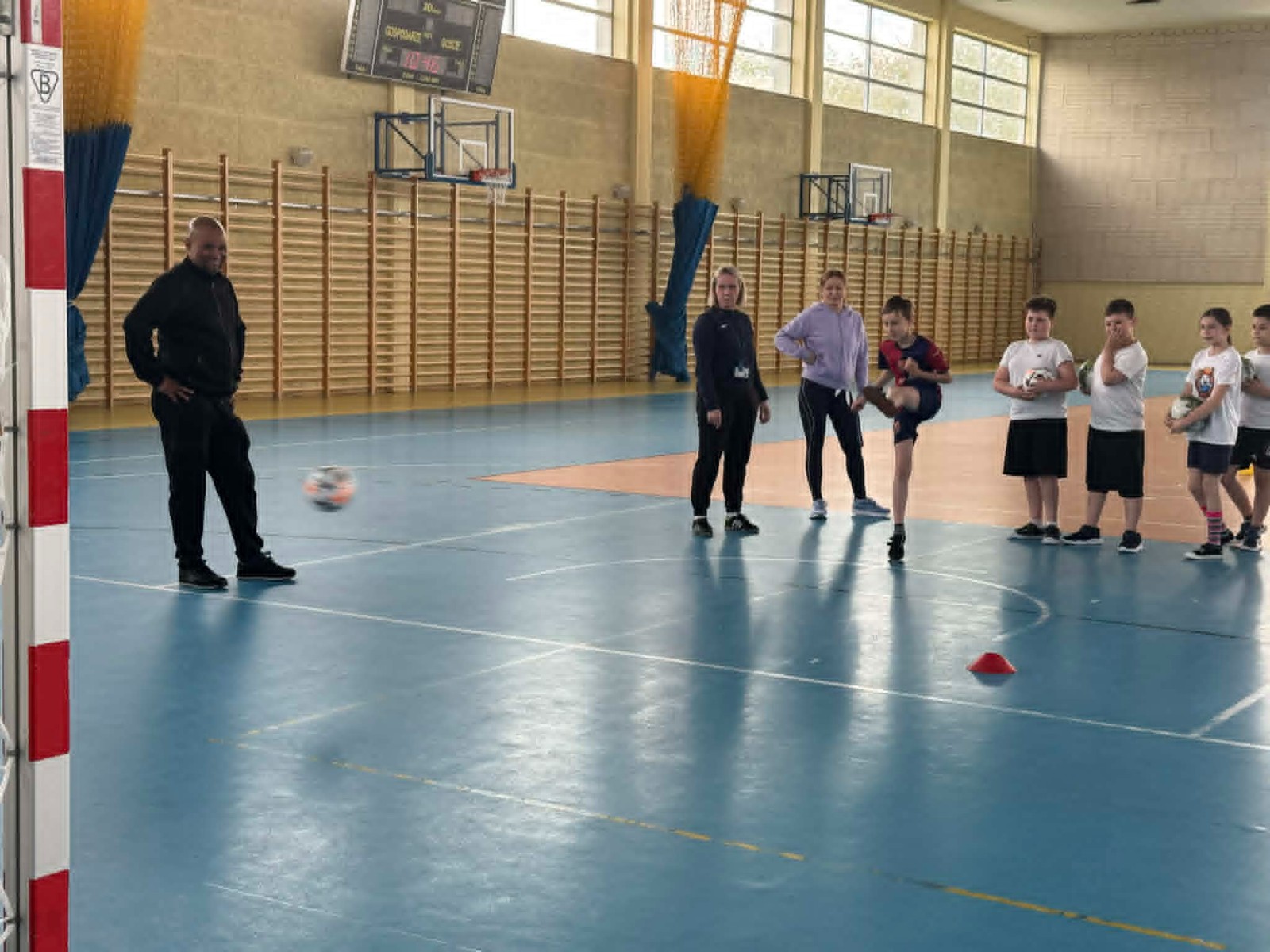 Po części teoretycznej Pan Edi przeprowadził z każdą grupą krótką lekcję piłki nożnej. Zajęcia cieszyły się ogromnym zainteresowaniem oraz zaangażowaniem dzieci, które z entuzjazmem uczestniczyły w ćwiczeniach.
