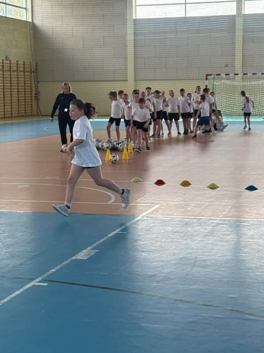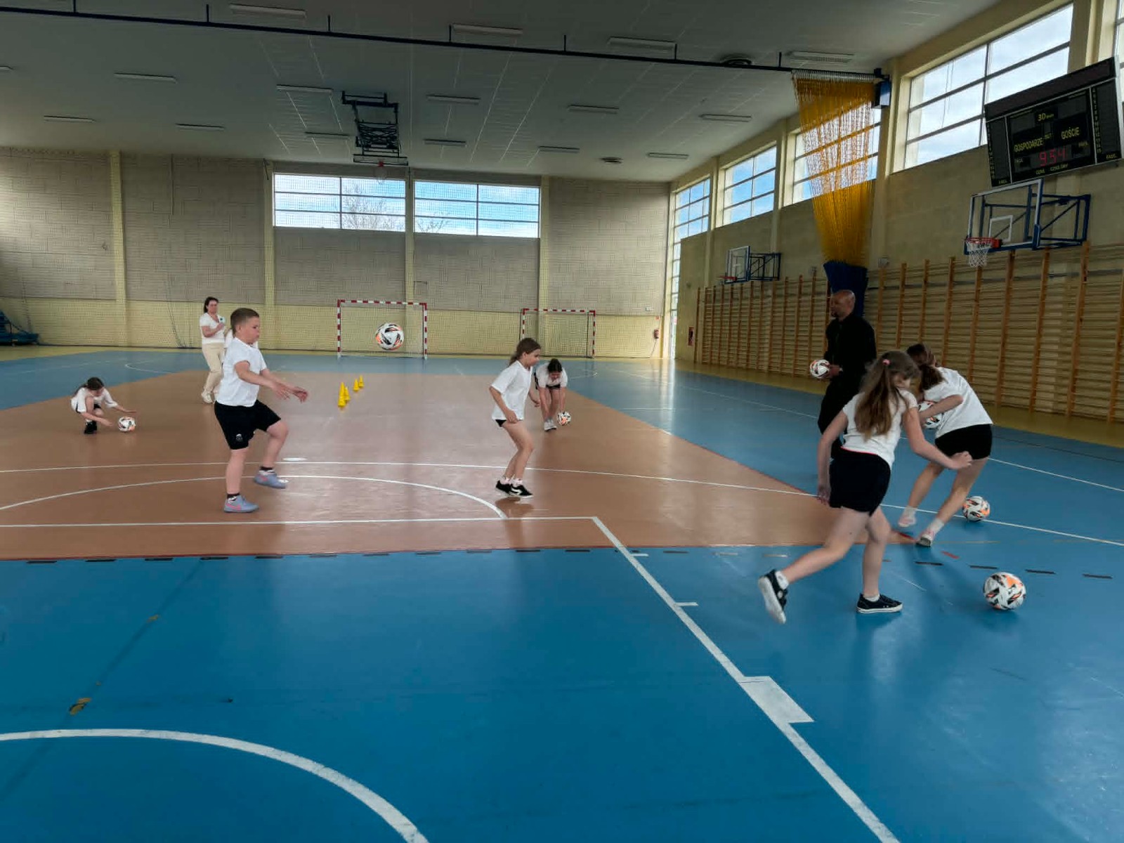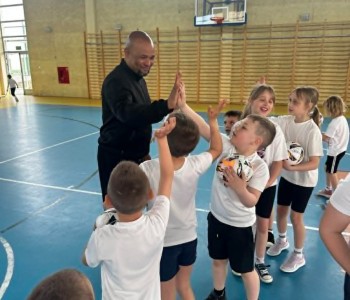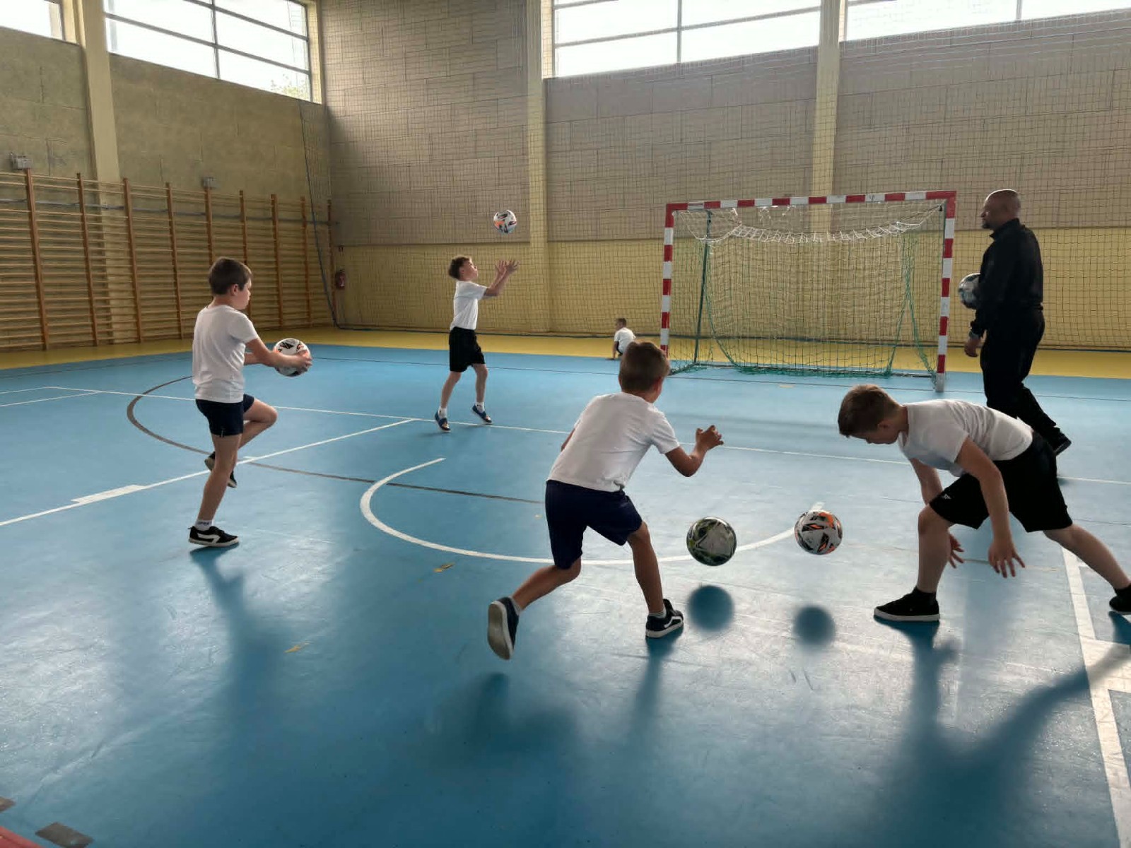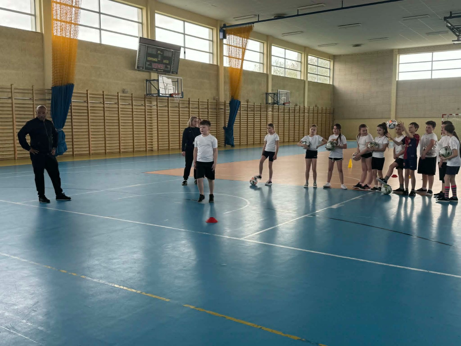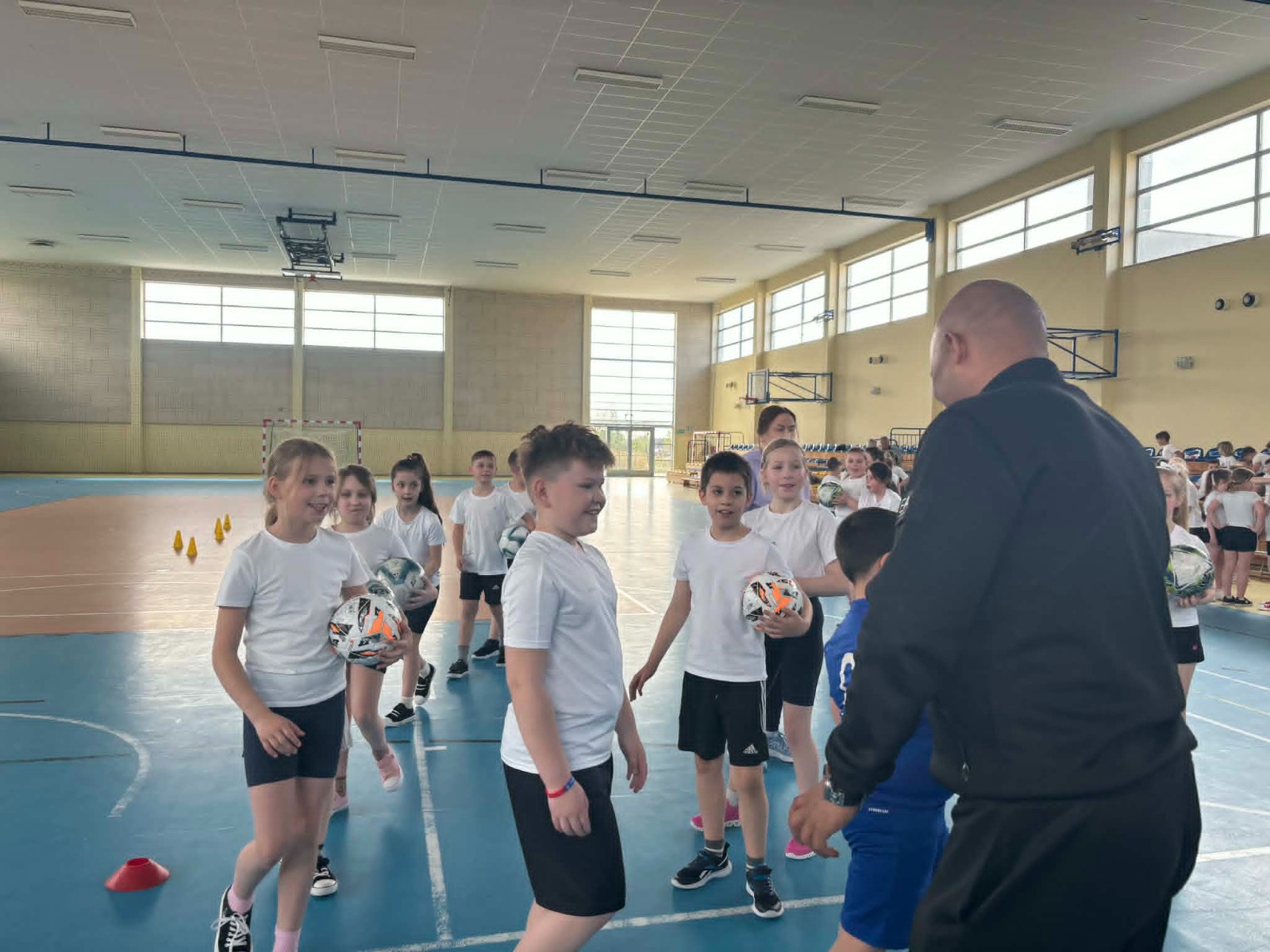 Po części teoretycznej Pan Edi przeprowadził z każdą grupą krótką lekcję piłki nożnej. Zajęcia cieszyły się ogromnym zainteresowaniem oraz zaangażowaniem dzieci, które z entuzjazmem uczestniczyły w ćwiczeniach.