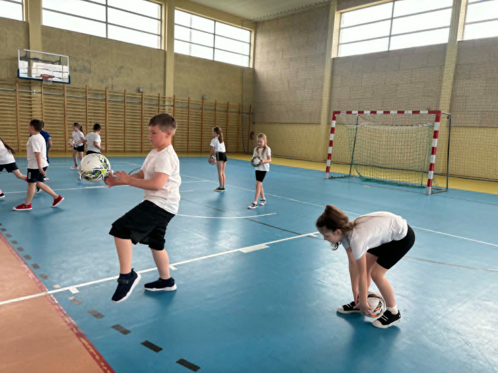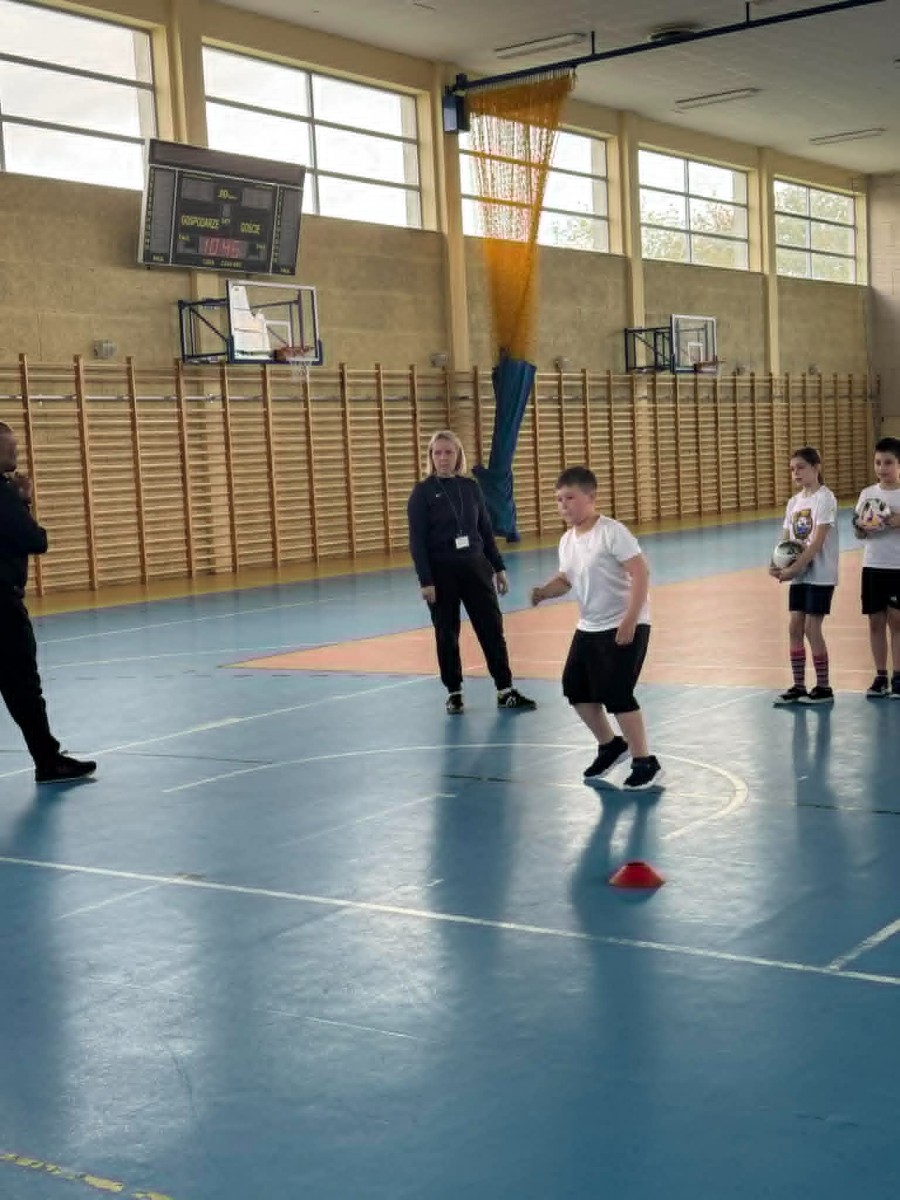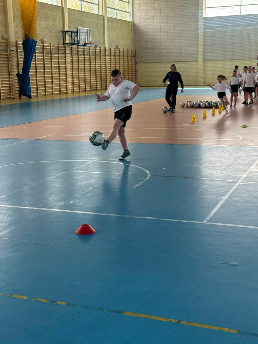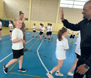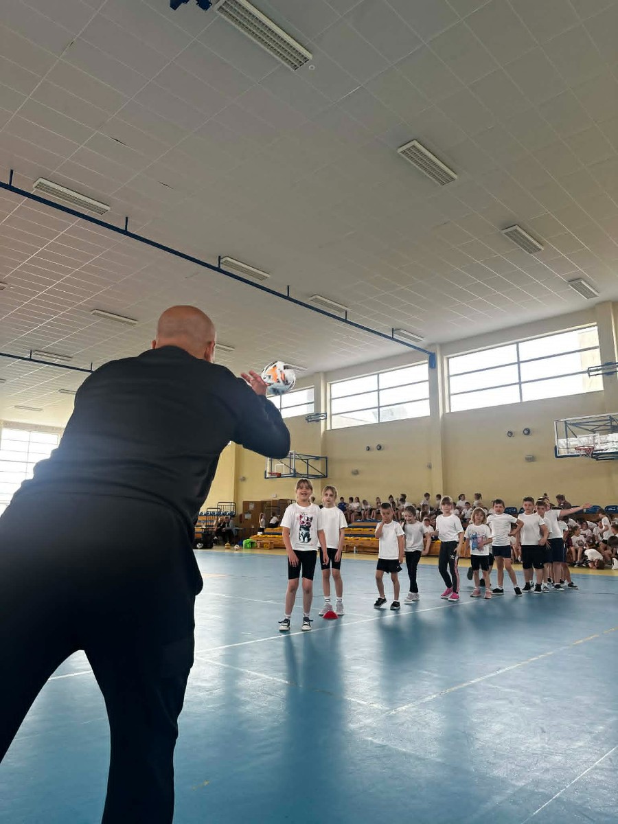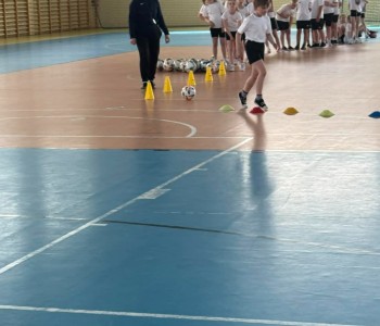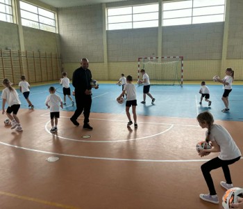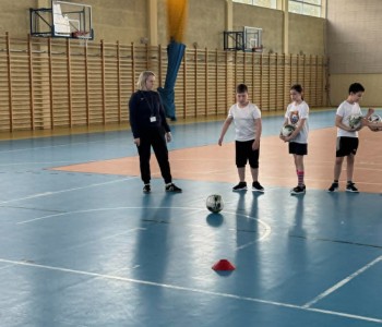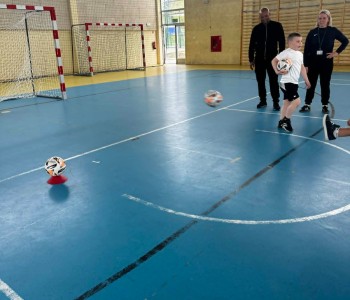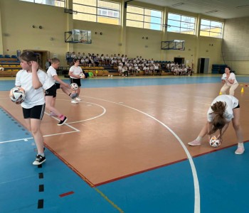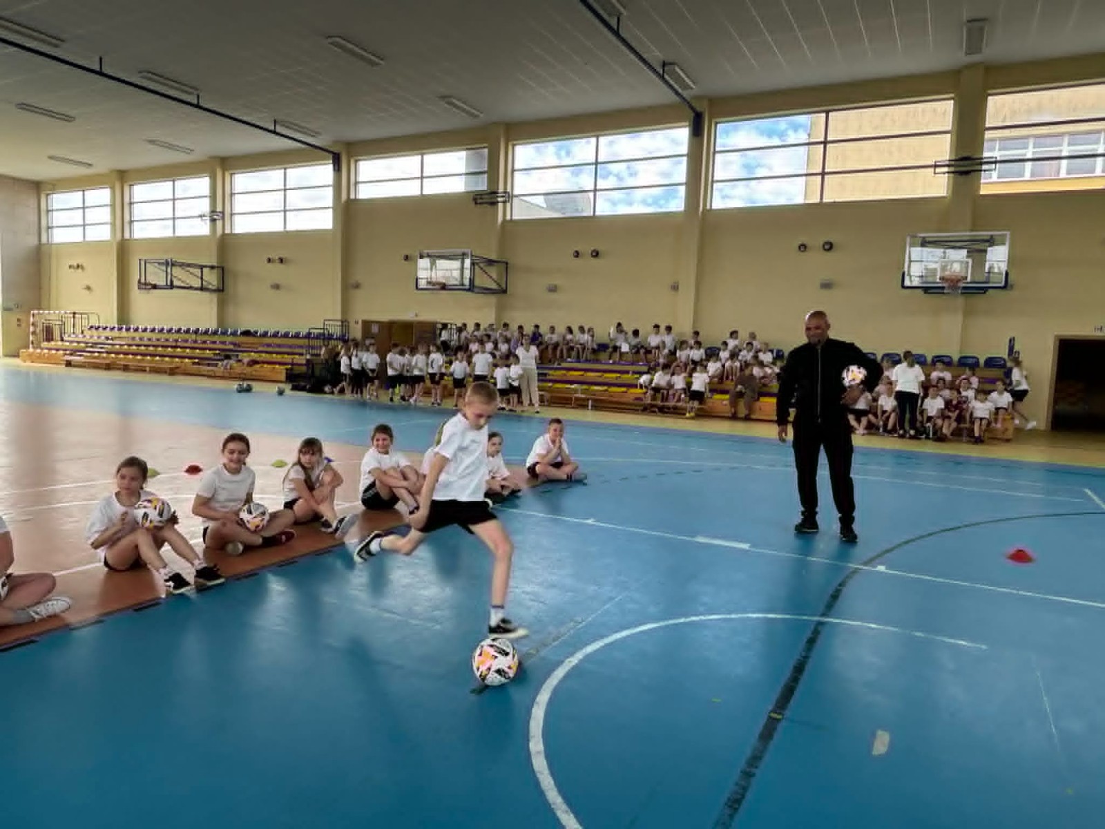 Po części teoretycznej Pan Edi przeprowadził z każdą grupą krótką lekcję piłki nożnej. Zajęcia cieszyły się ogromnym zainteresowaniem oraz zaangażowaniem dzieci, które z entuzjazmem uczestniczyły w ćwiczeniach.