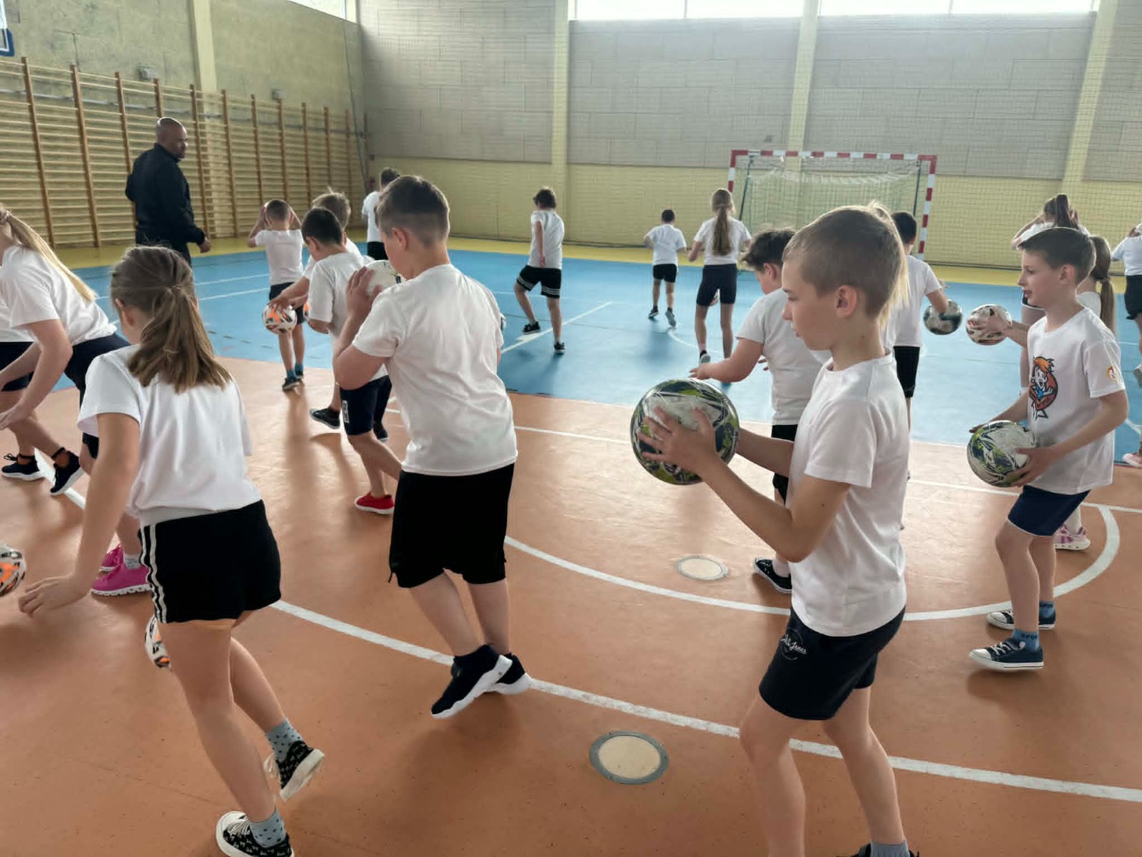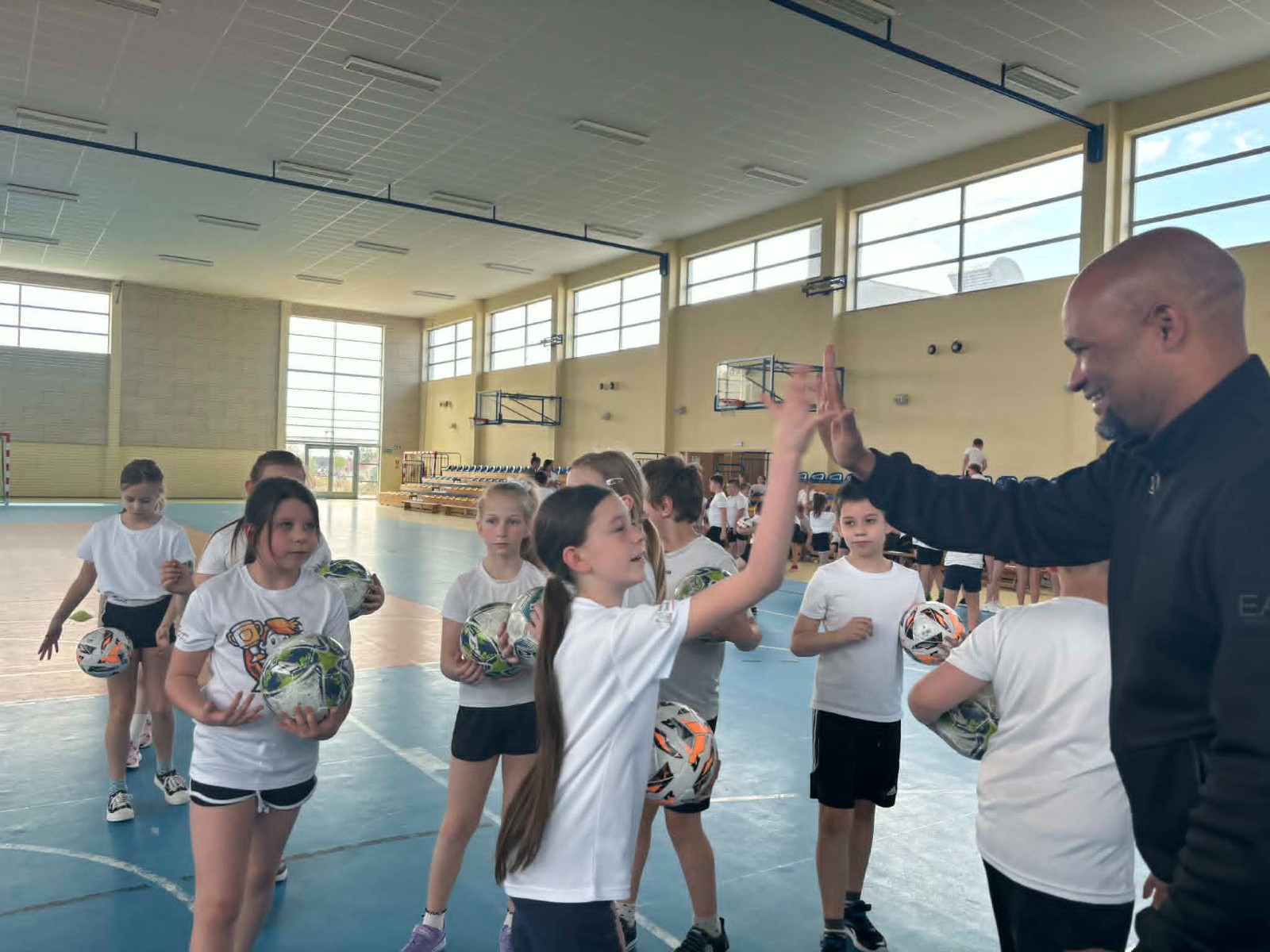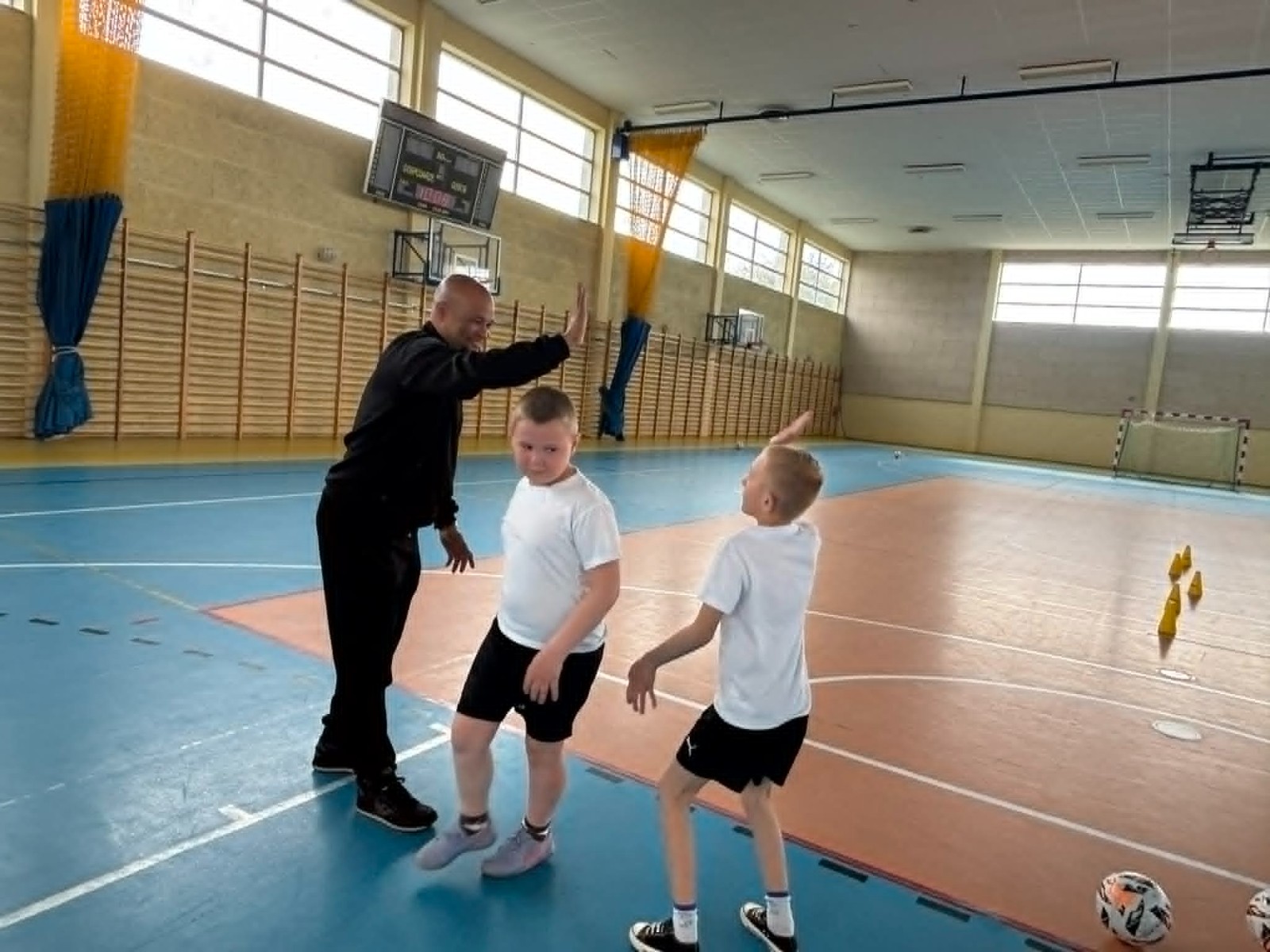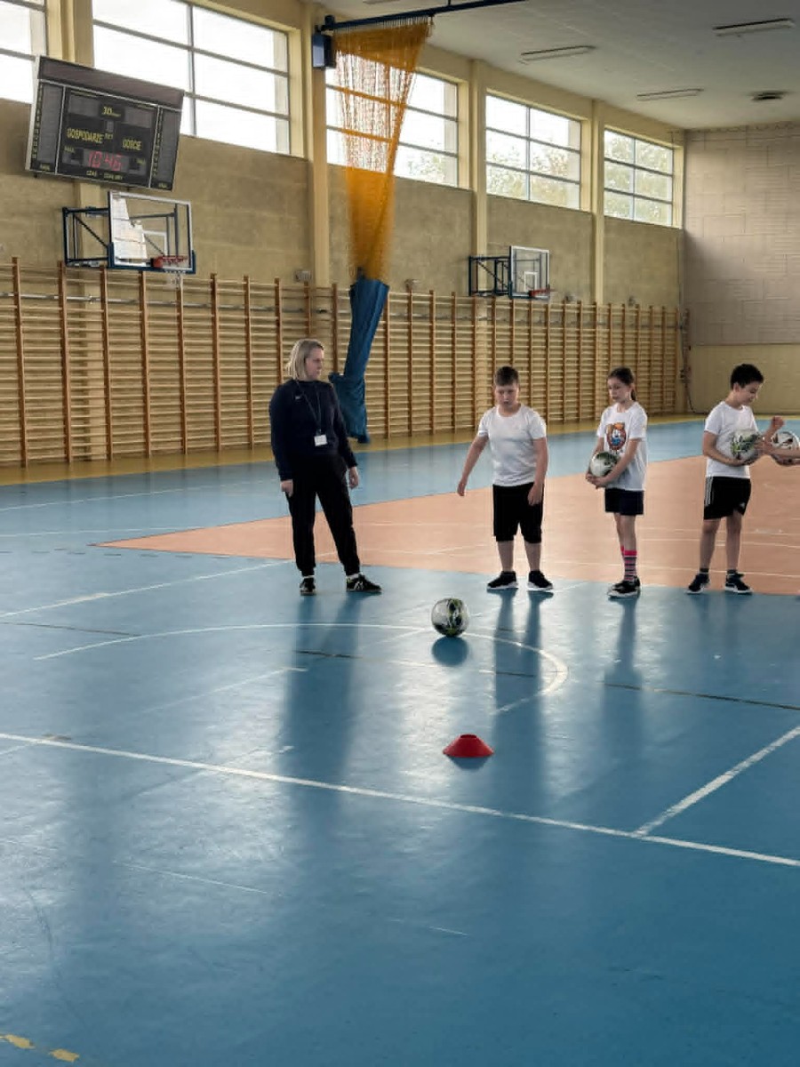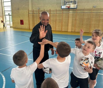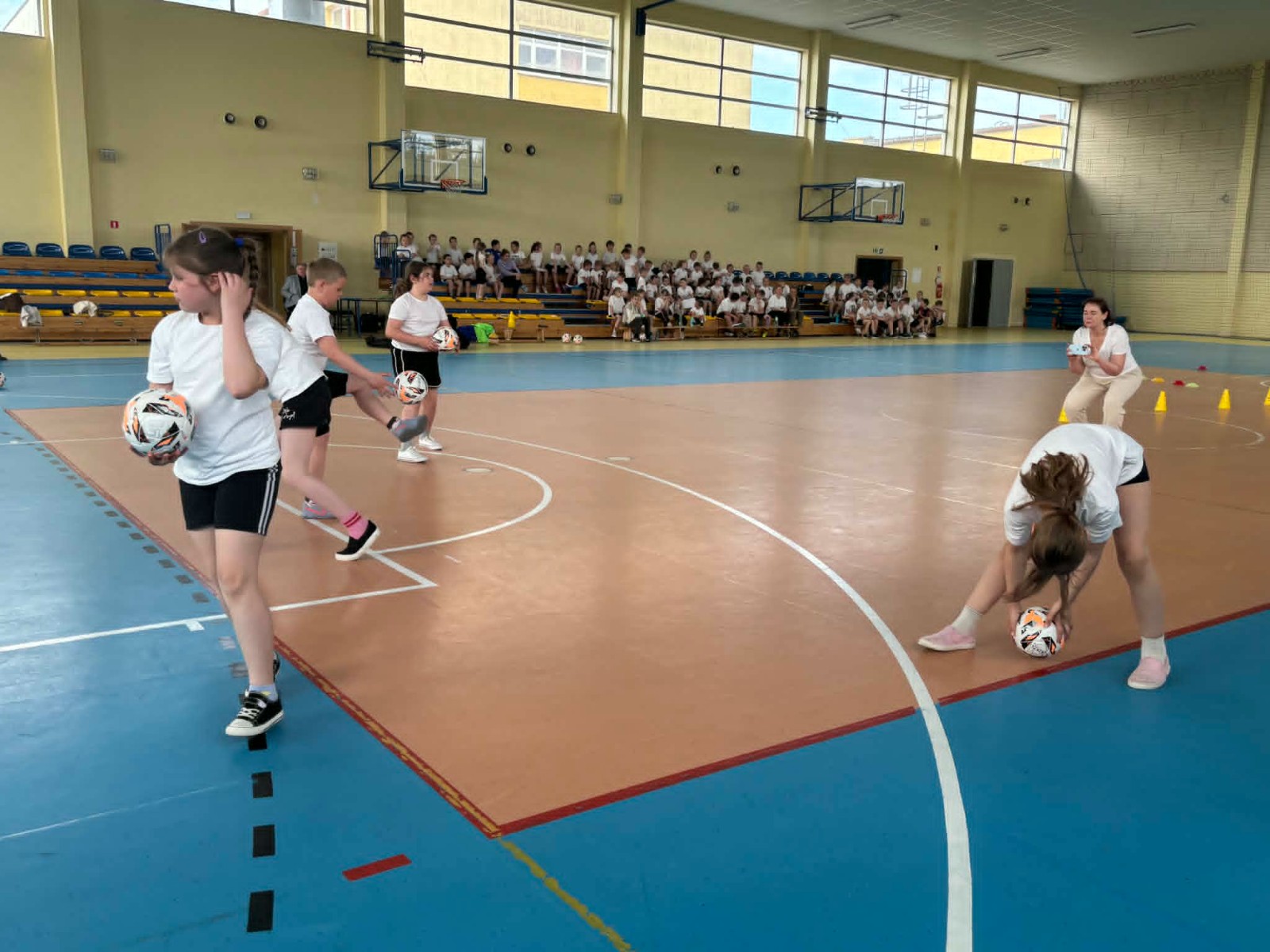 Po części teoretycznej Pan Edi przeprowadził z każdą grupą krótką lekcję piłki nożnej. Zajęcia cieszyły się ogromnym zainteresowaniem oraz zaangażowaniem dzieci, które z entuzjazmem uczestniczyły w ćwiczeniach.