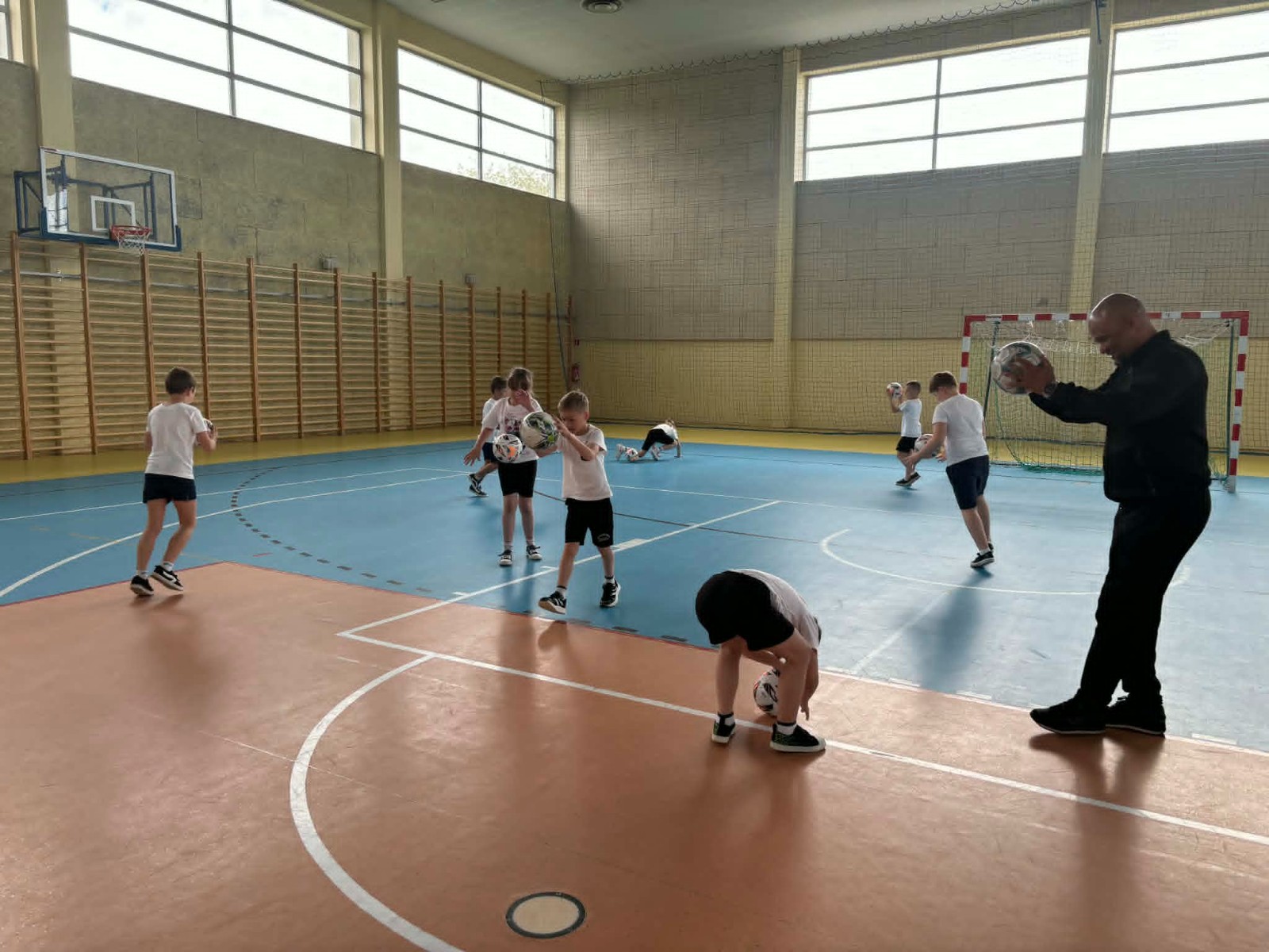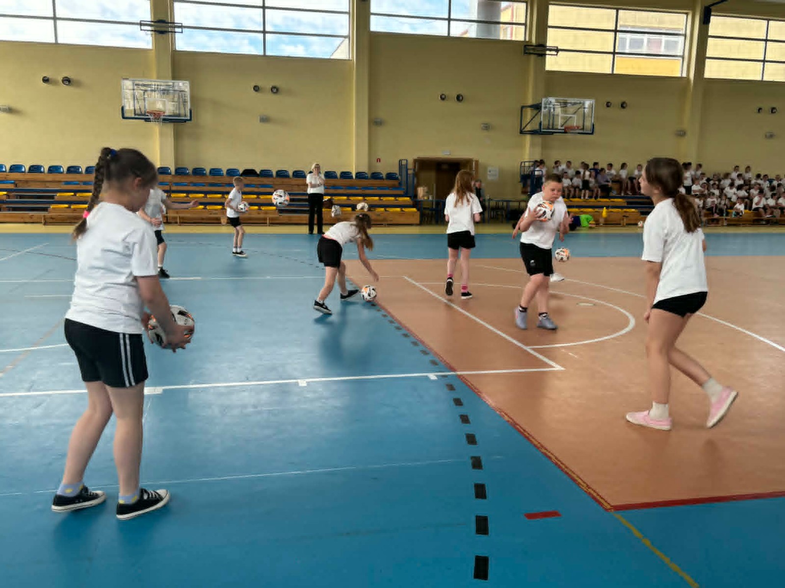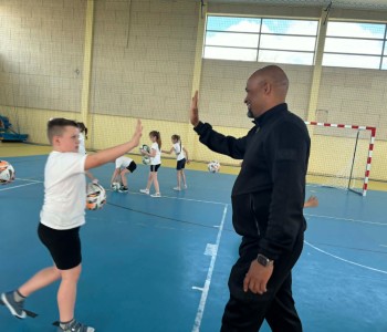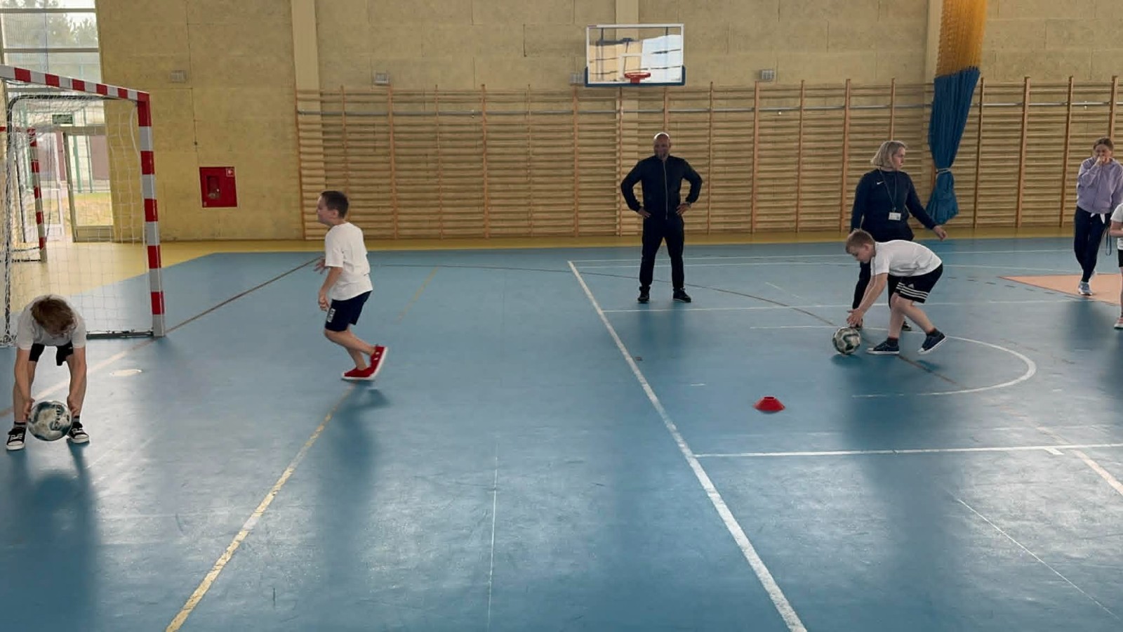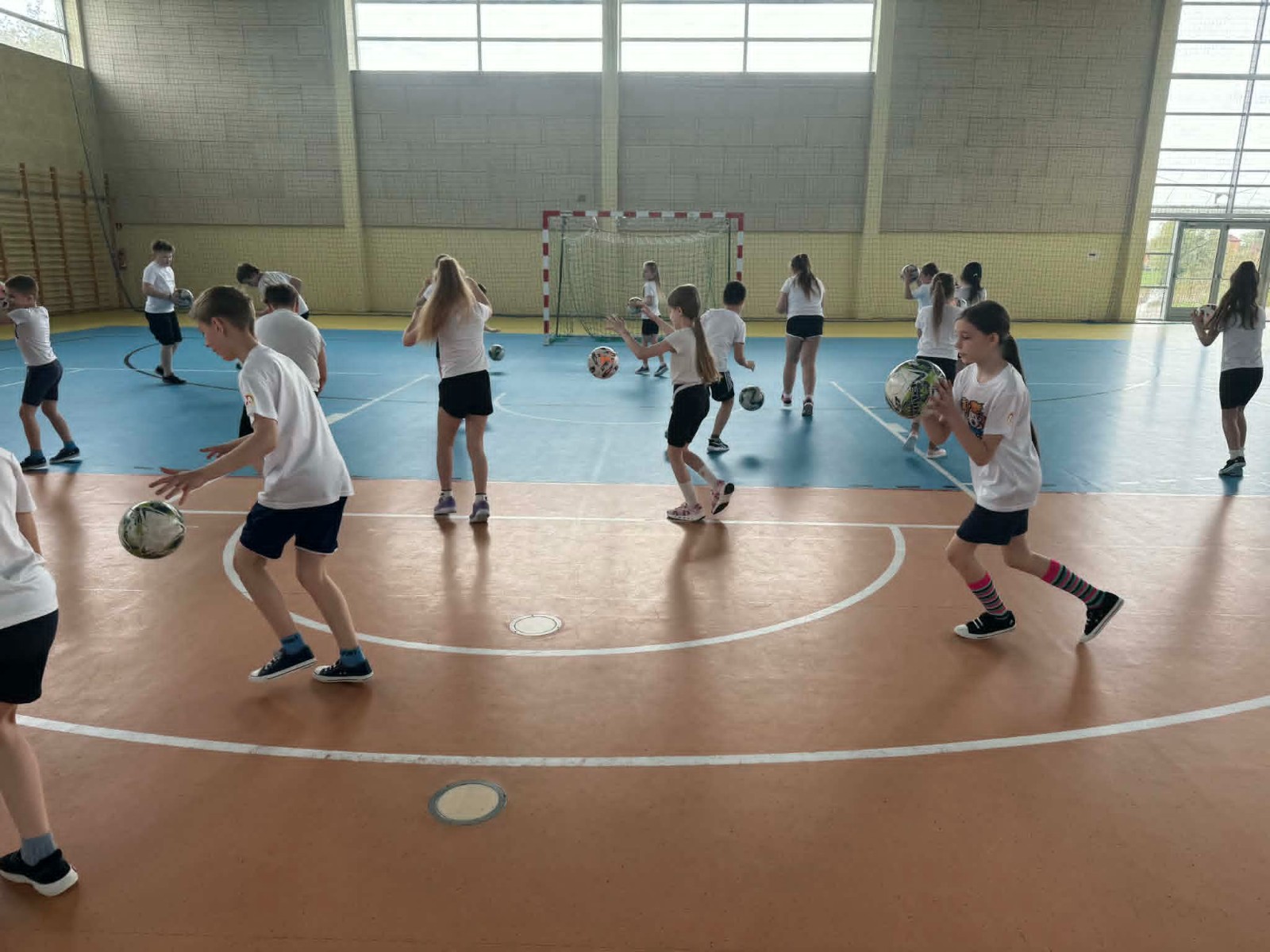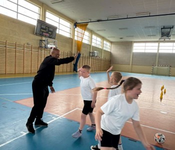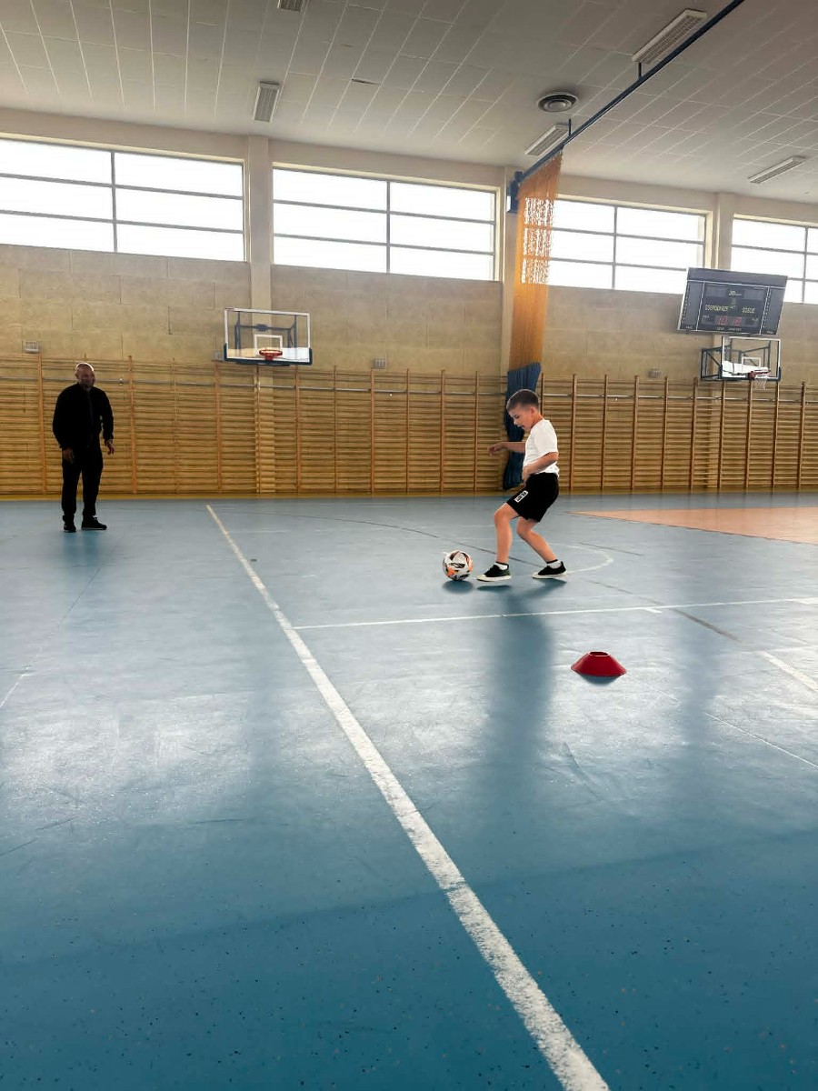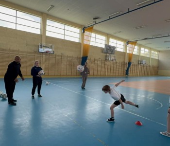 Po części teoretycznej Pan Edi przeprowadził z każdą grupą krótką lekcję piłki nożnej. Zajęcia cieszyły się ogromnym zainteresowaniem oraz zaangażowaniem dzieci, które z entuzjazmem uczestniczyły w ćwiczeniach.