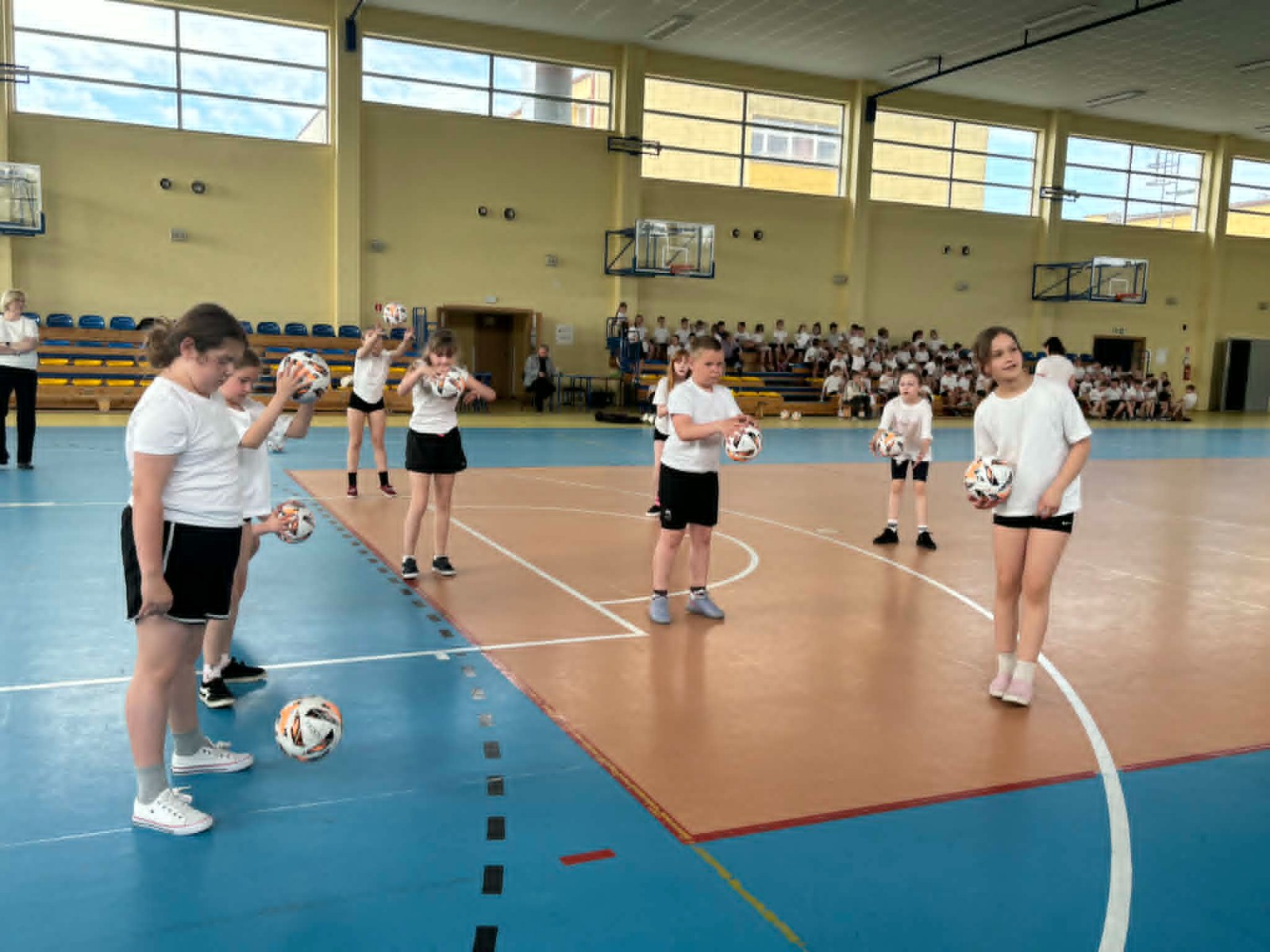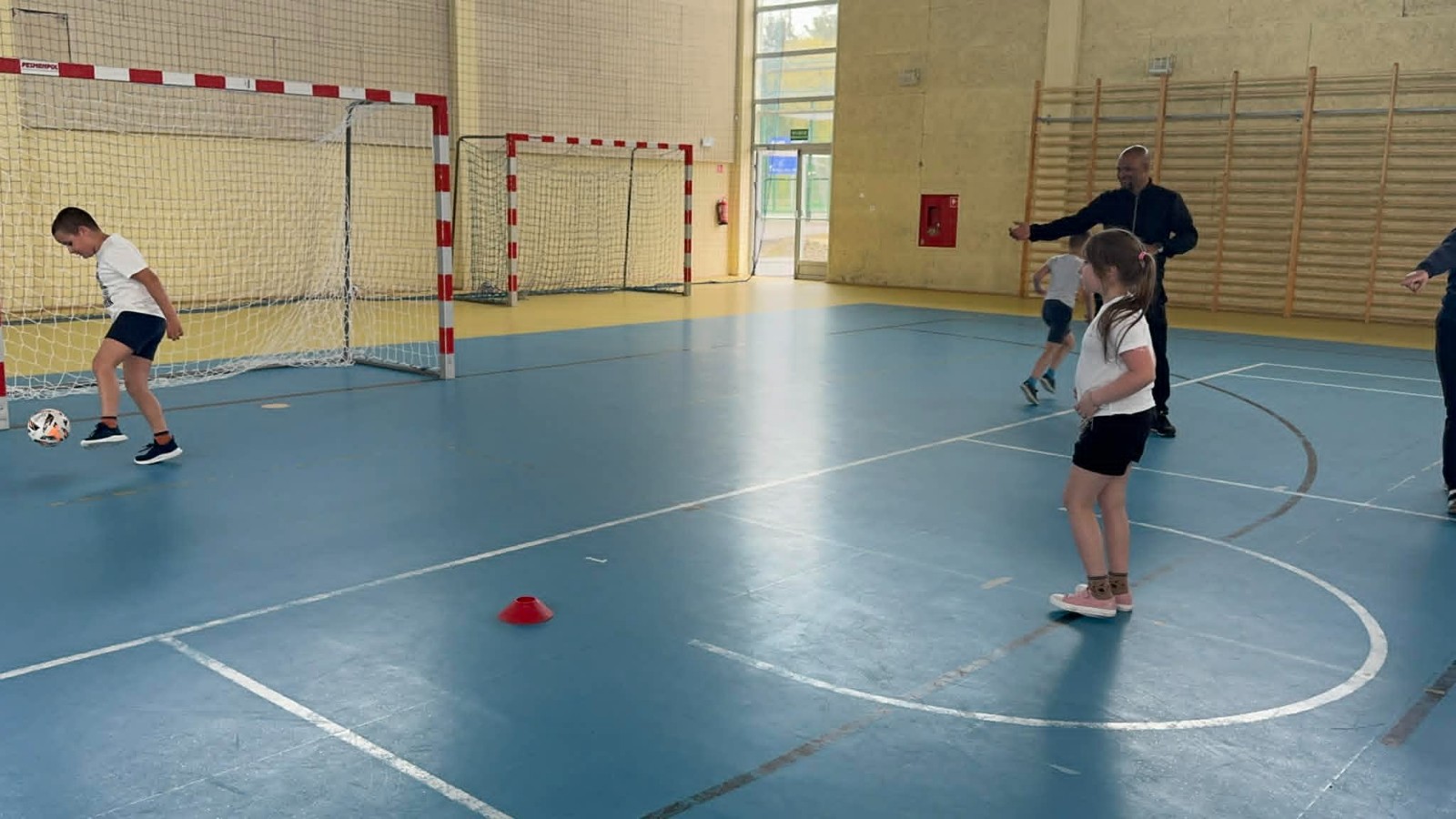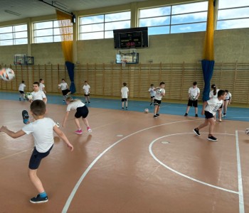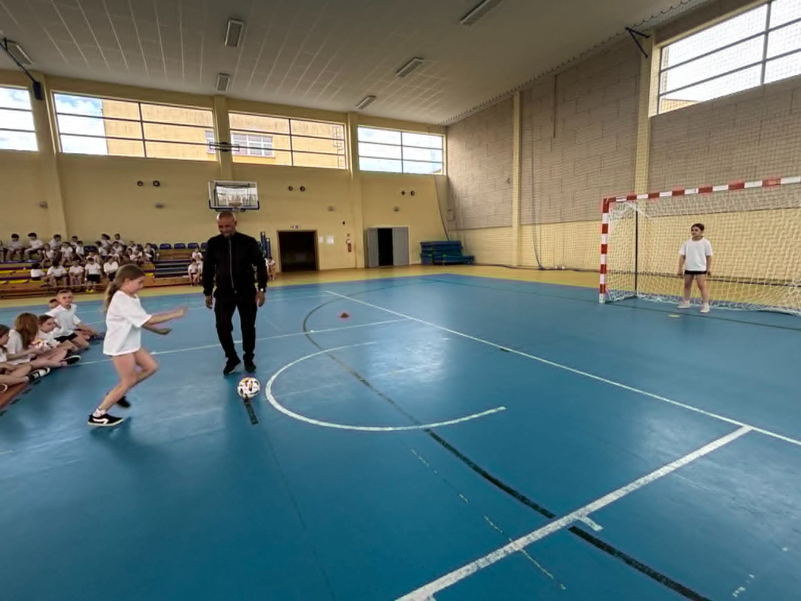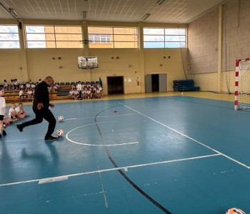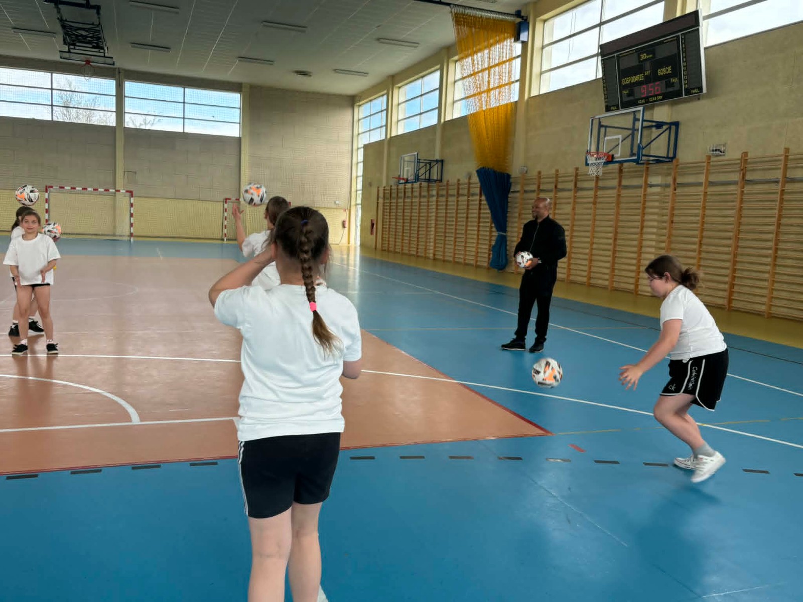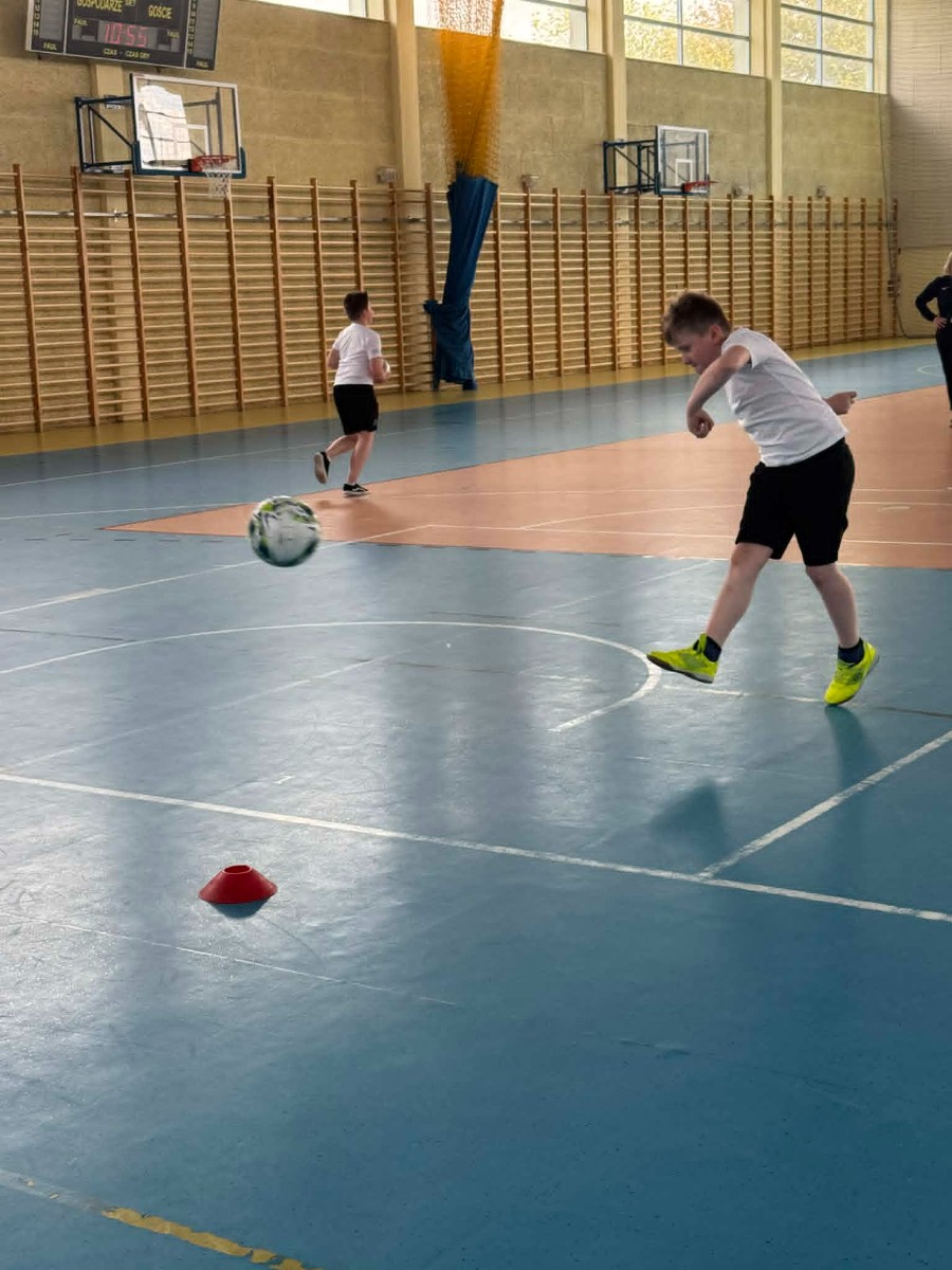 Po części teoretycznej Pan Edi przeprowadził z każdą grupą krótką lekcję piłki nożnej. Zajęcia cieszyły się ogromnym zainteresowaniem oraz zaangażowaniem dzieci, które z entuzjazmem uczestniczyły w ćwiczeniach.