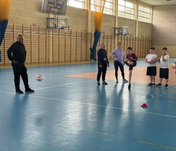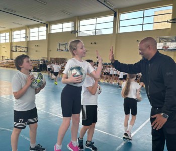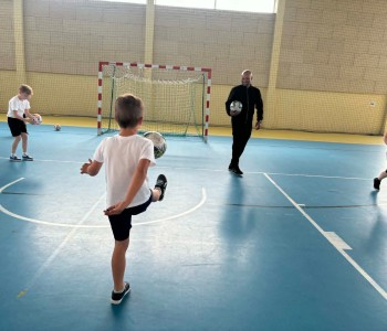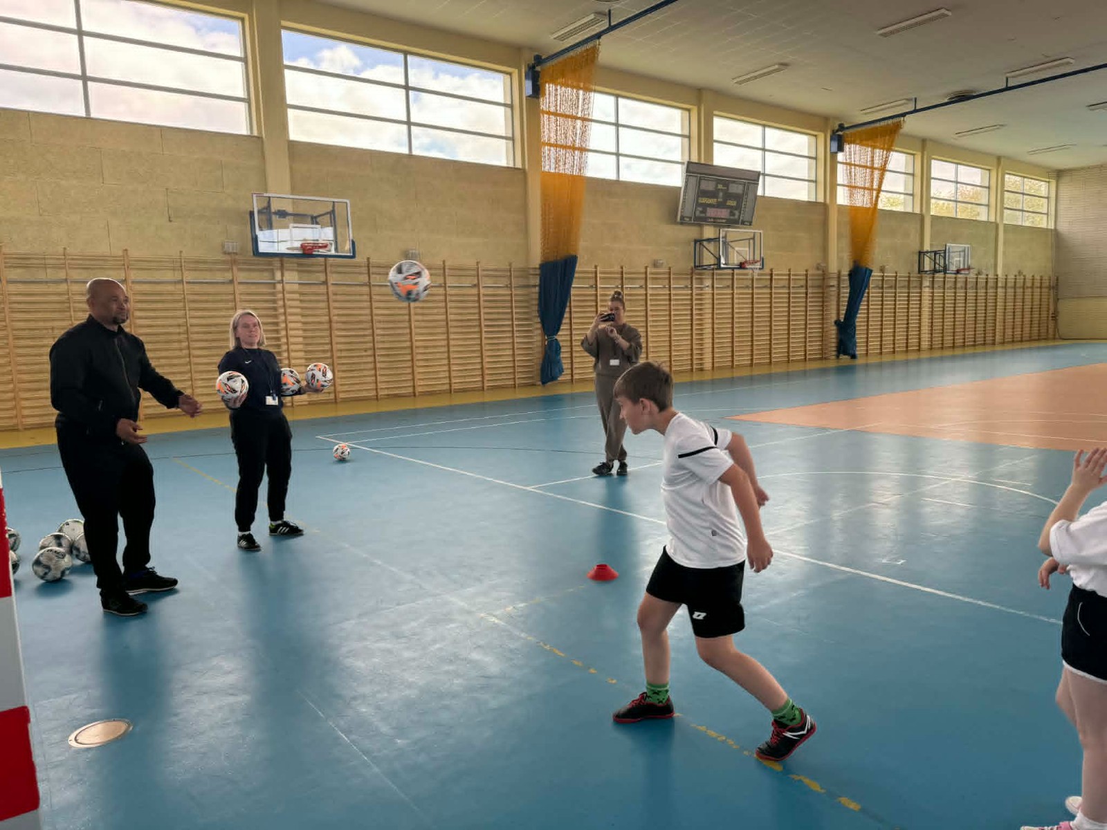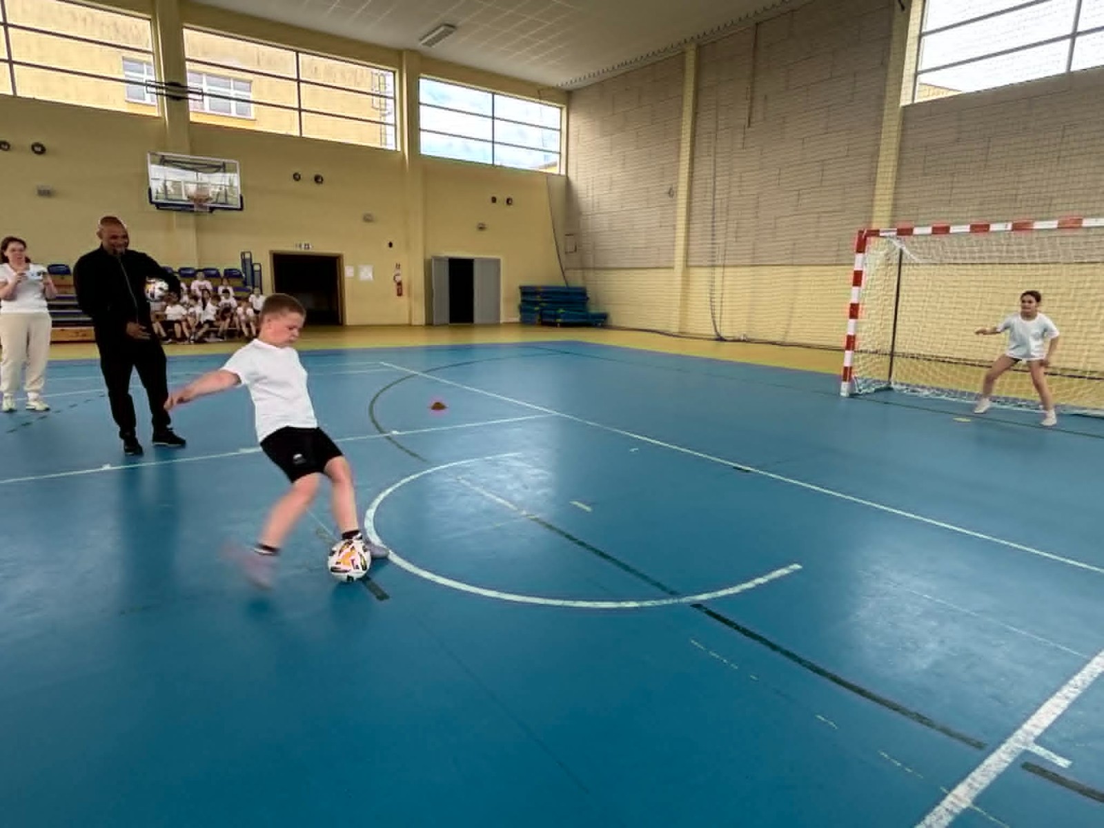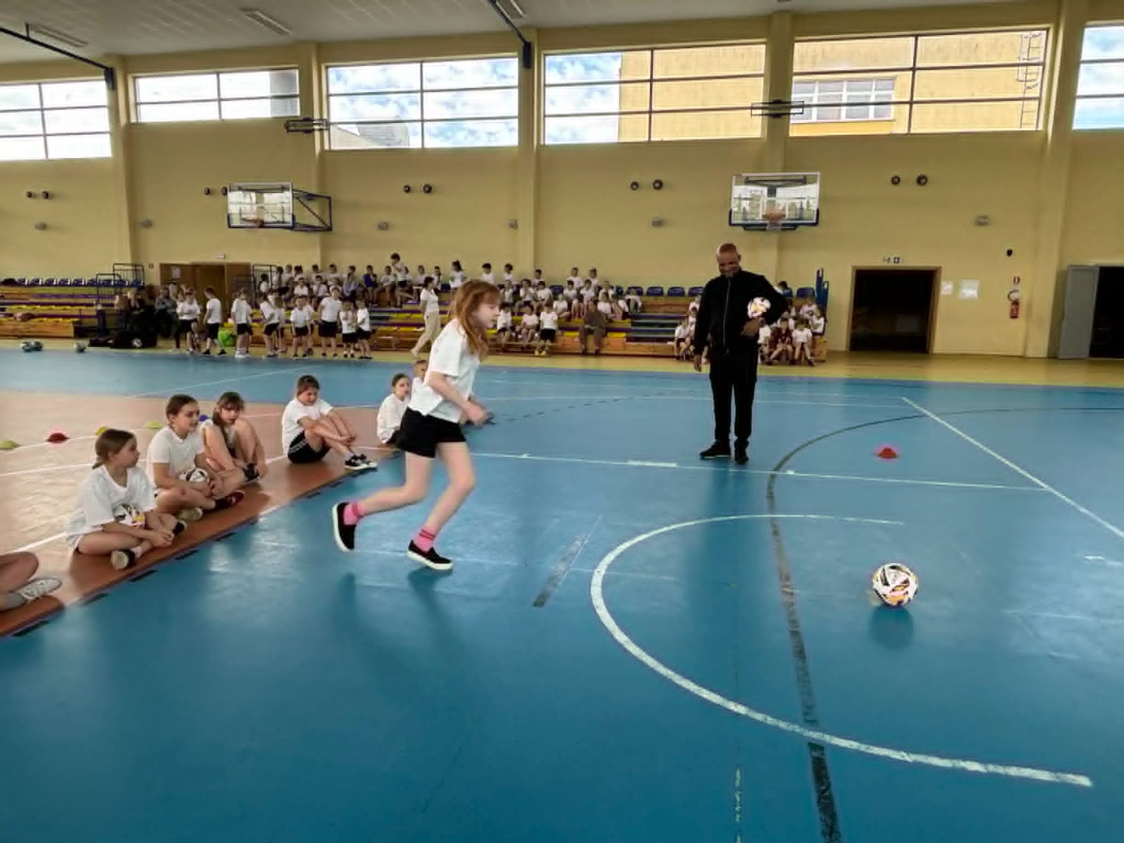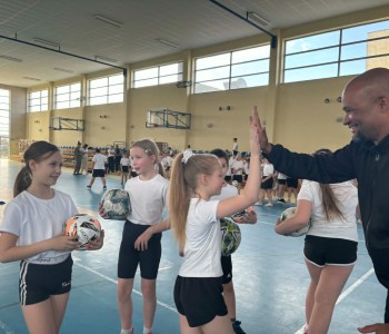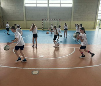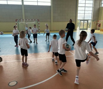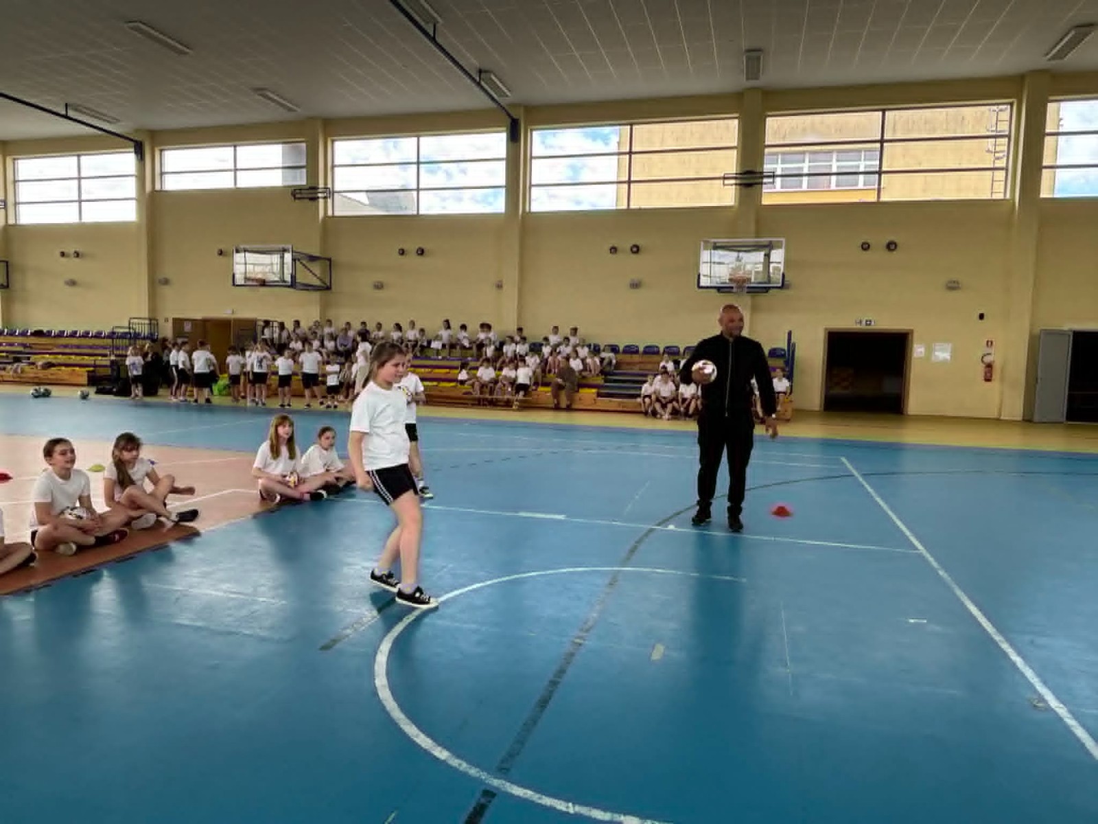 Po części teoretycznej Pan Edi przeprowadził z każdą grupą krótką lekcję piłki nożnej. Zajęcia cieszyły się ogromnym zainteresowaniem oraz zaangażowaniem dzieci, które z entuzjazmem uczestniczyły w ćwiczeniach.