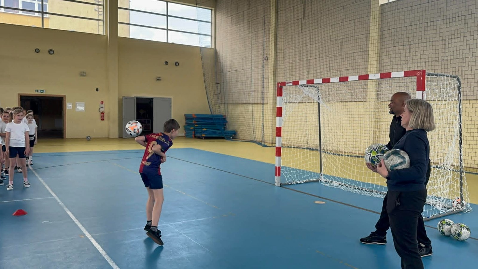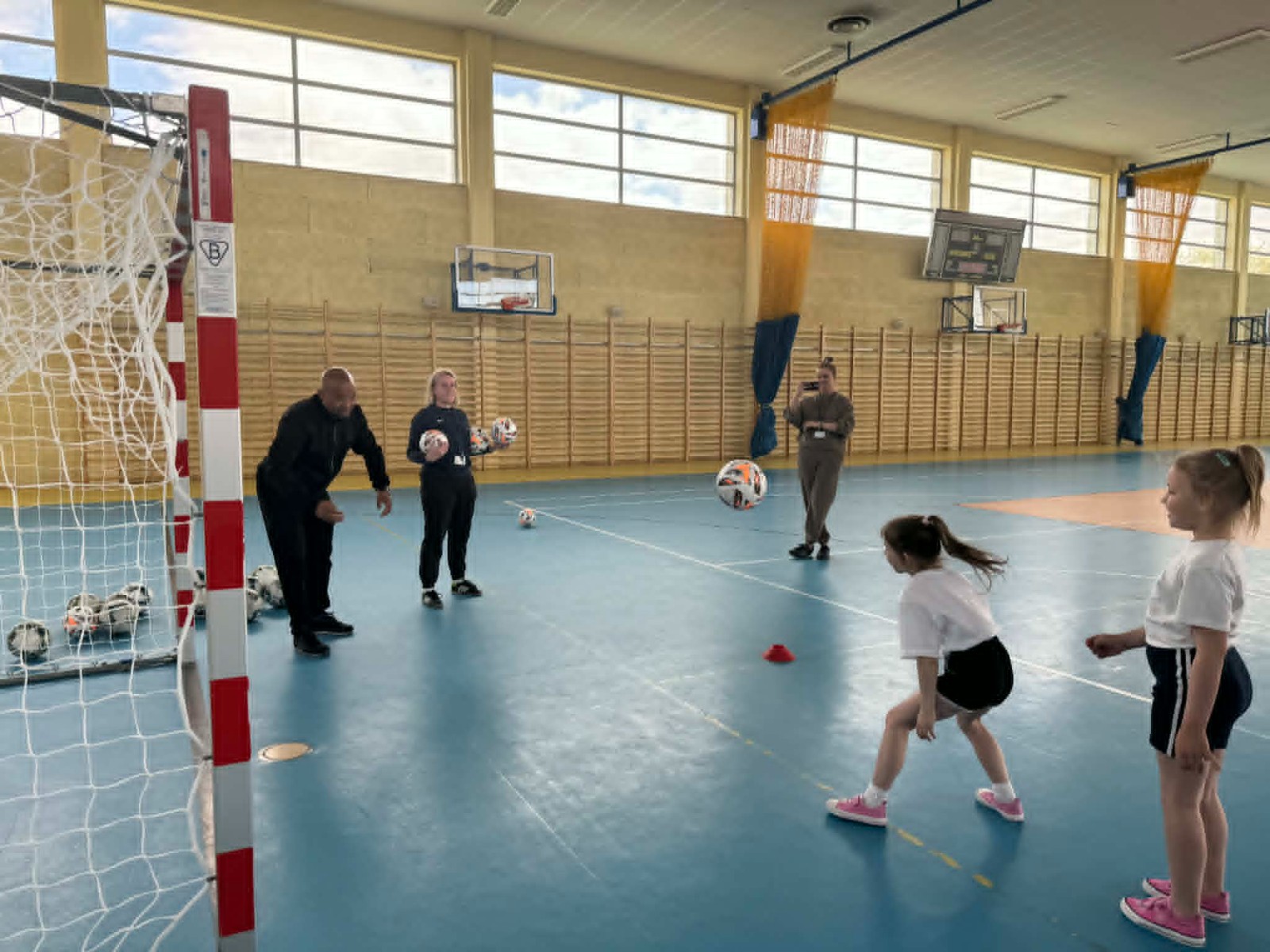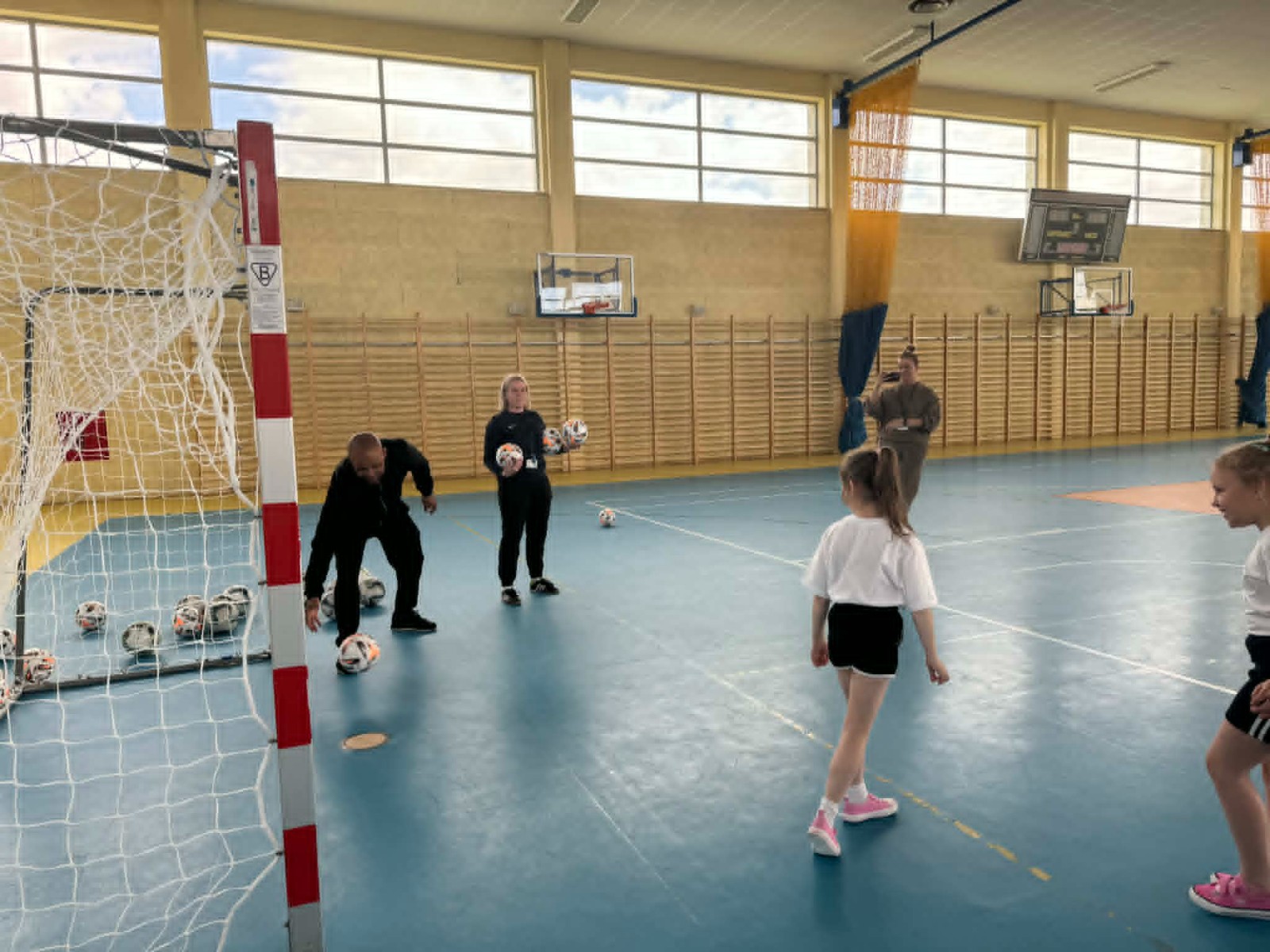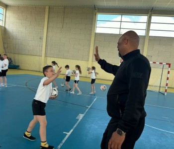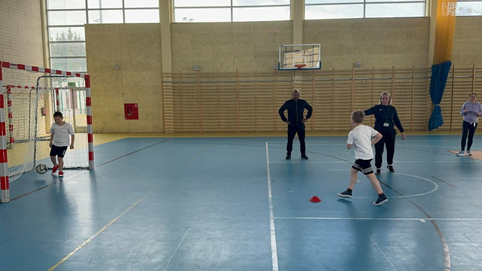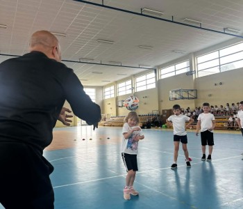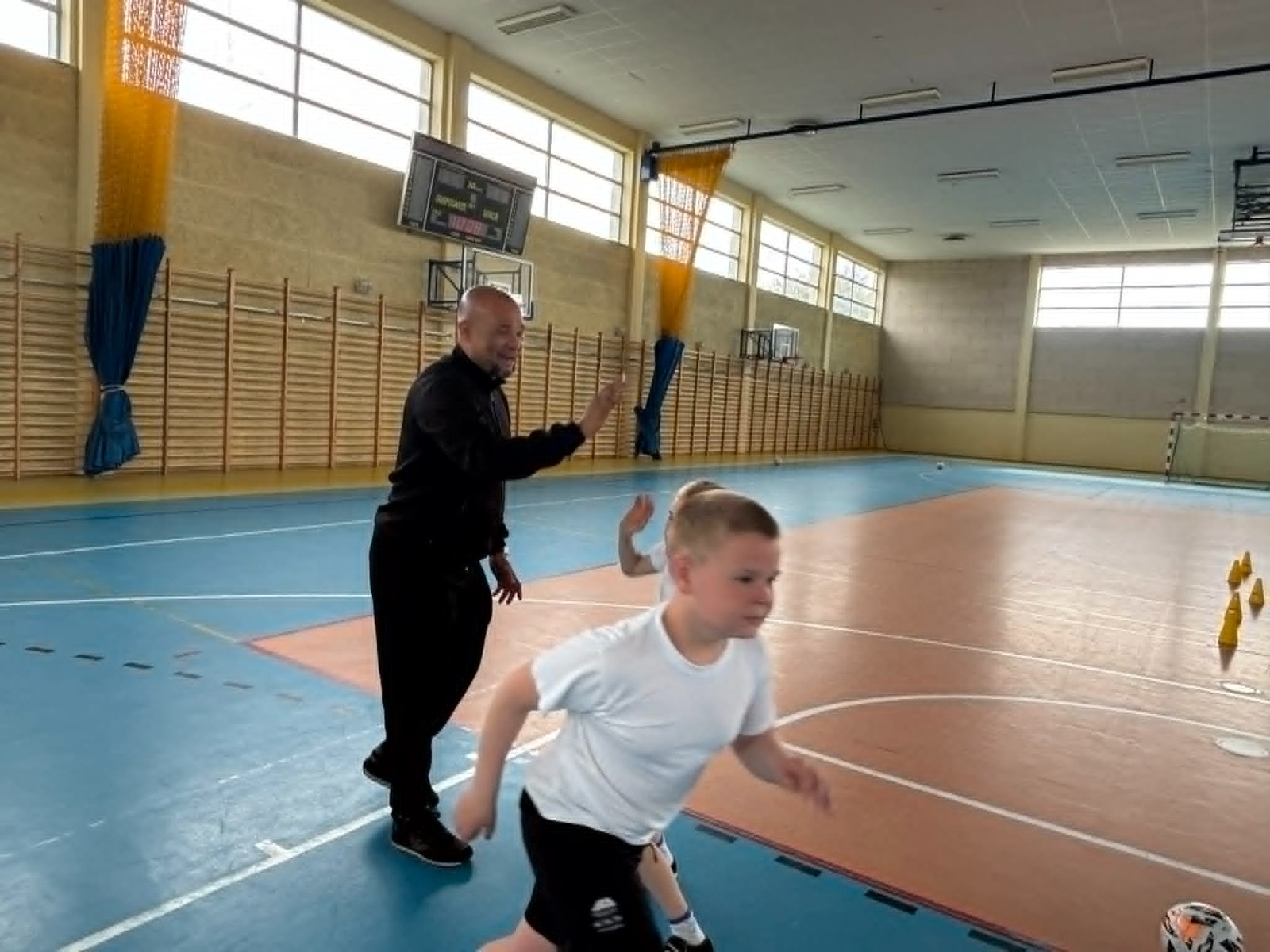 Po części teoretycznej Pan Edi przeprowadził z każdą grupą krótką lekcję piłki nożnej. Zajęcia cieszyły się ogromnym zainteresowaniem oraz zaangażowaniem dzieci, które z entuzjazmem uczestniczyły w ćwiczeniach.