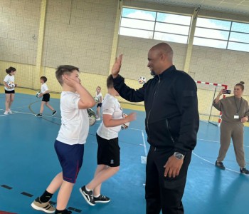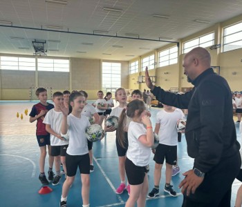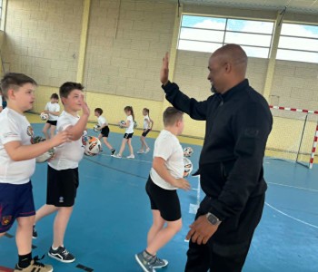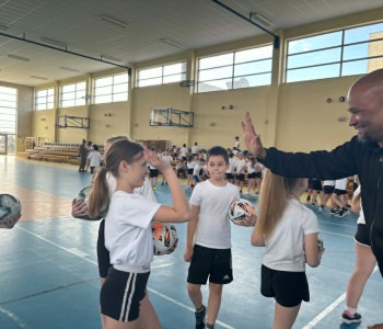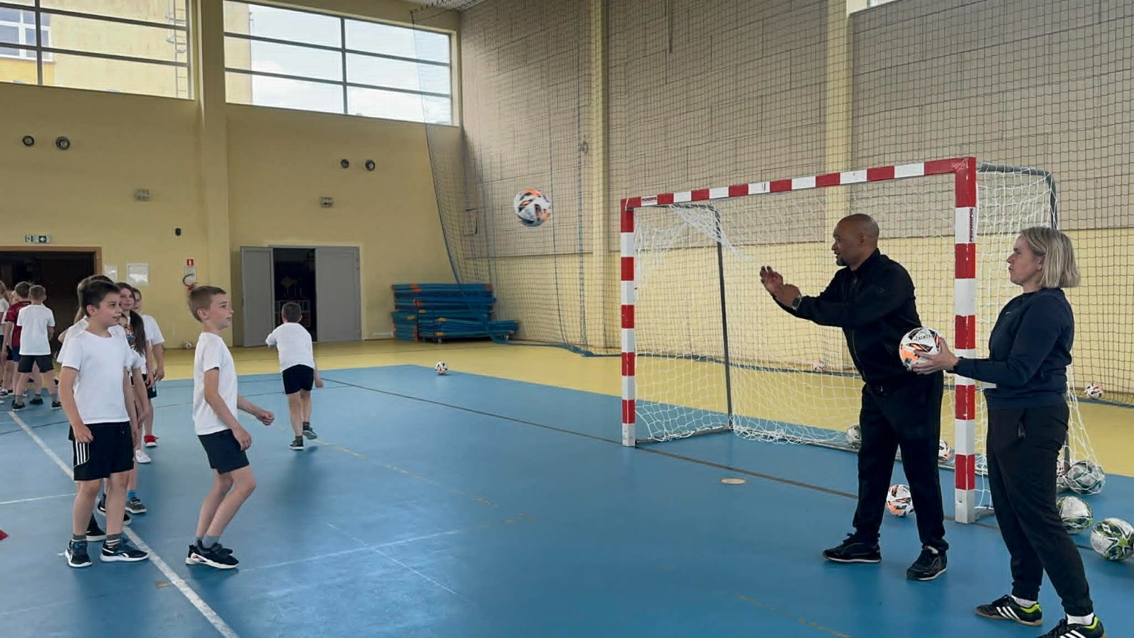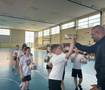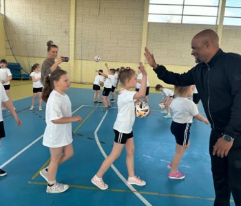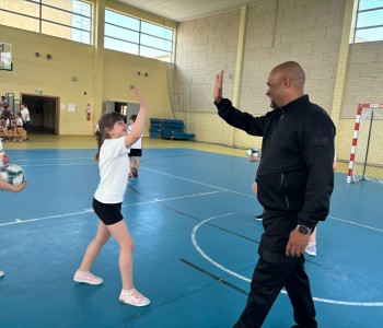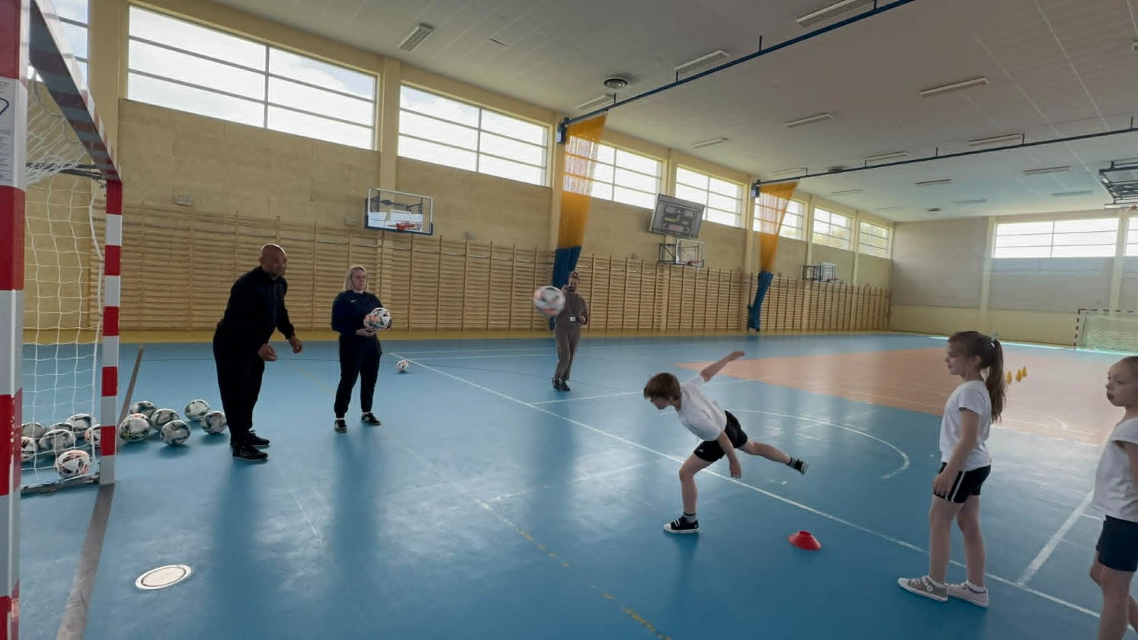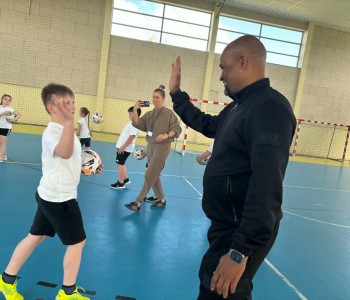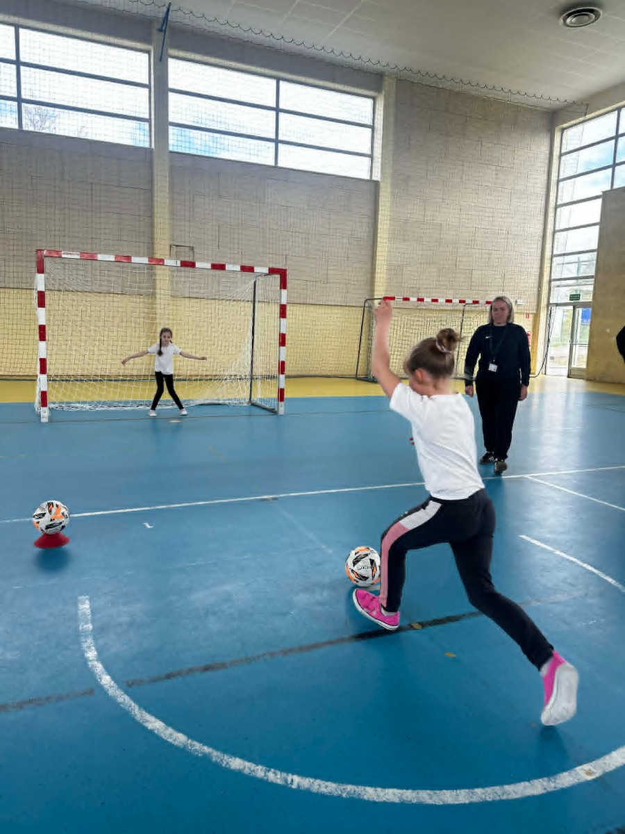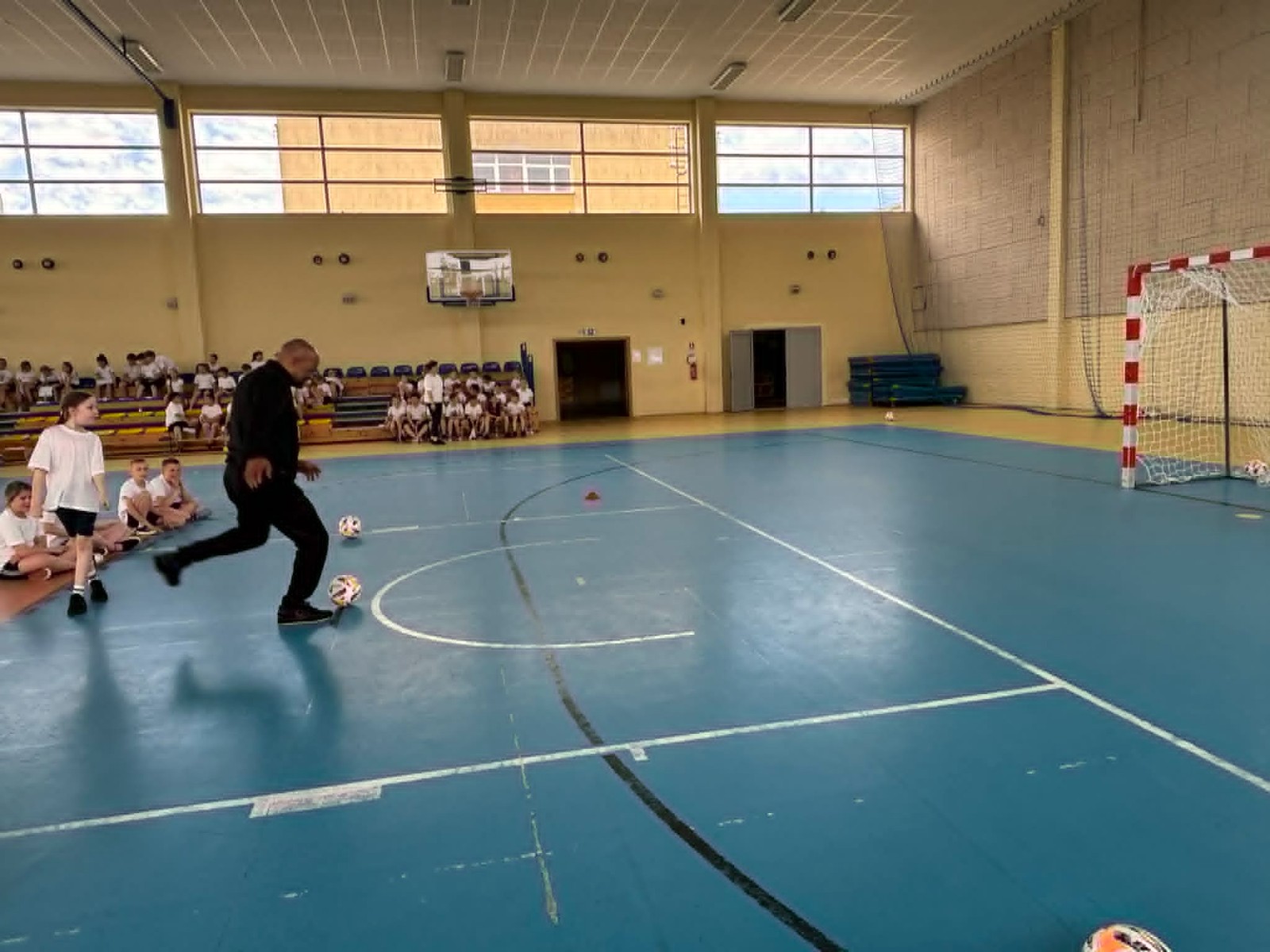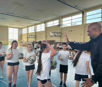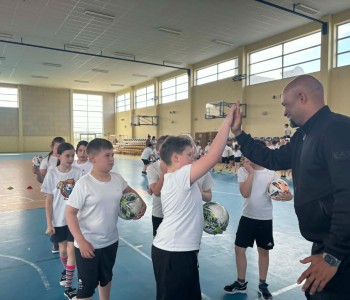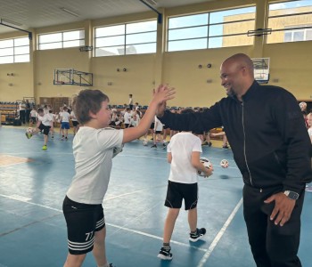 Po części teoretycznej Pan Edi przeprowadził z każdą grupą krótką lekcję piłki nożnej. Zajęcia cieszyły się ogromnym zainteresowaniem oraz zaangażowaniem dzieci, które z entuzjazmem uczestniczyły w ćwiczeniach.