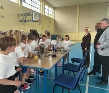 Dnia 27 kwietnia 2026 roku w hali sportowej Szkoły Podstawowej w Margoninie odbyła się „Lekcja z Mistrzem” realizowana w ramach programu „Mały Mistrz”.
