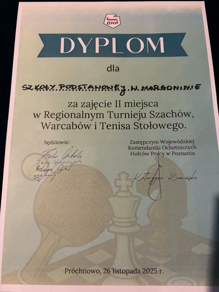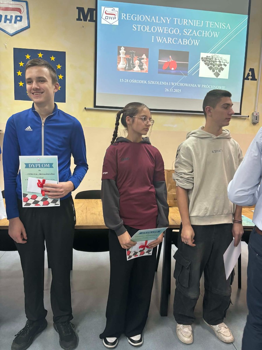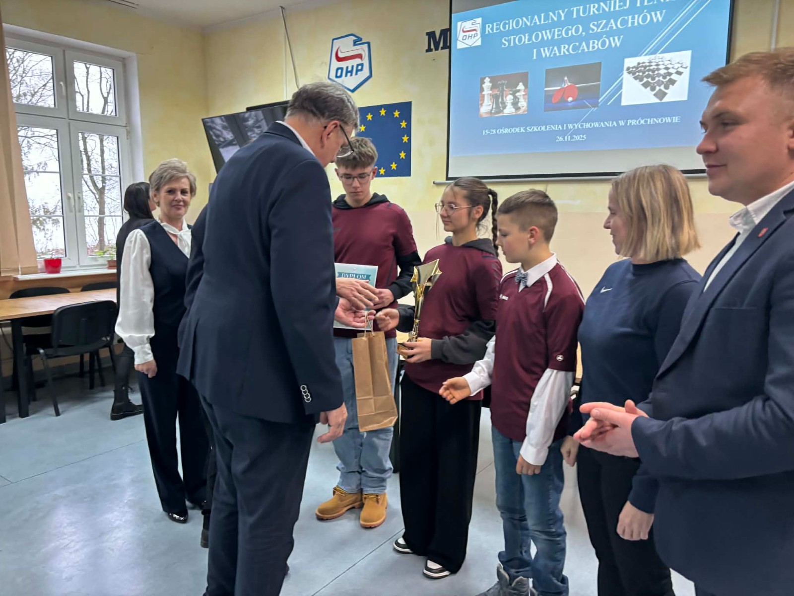 26 listopada 2025 roku w Ośrodku Szkolenia i Wychowania w Próchnowie odbył się Regionalny Turniej Tenisa Stołowego, Warcabów i Szachów.